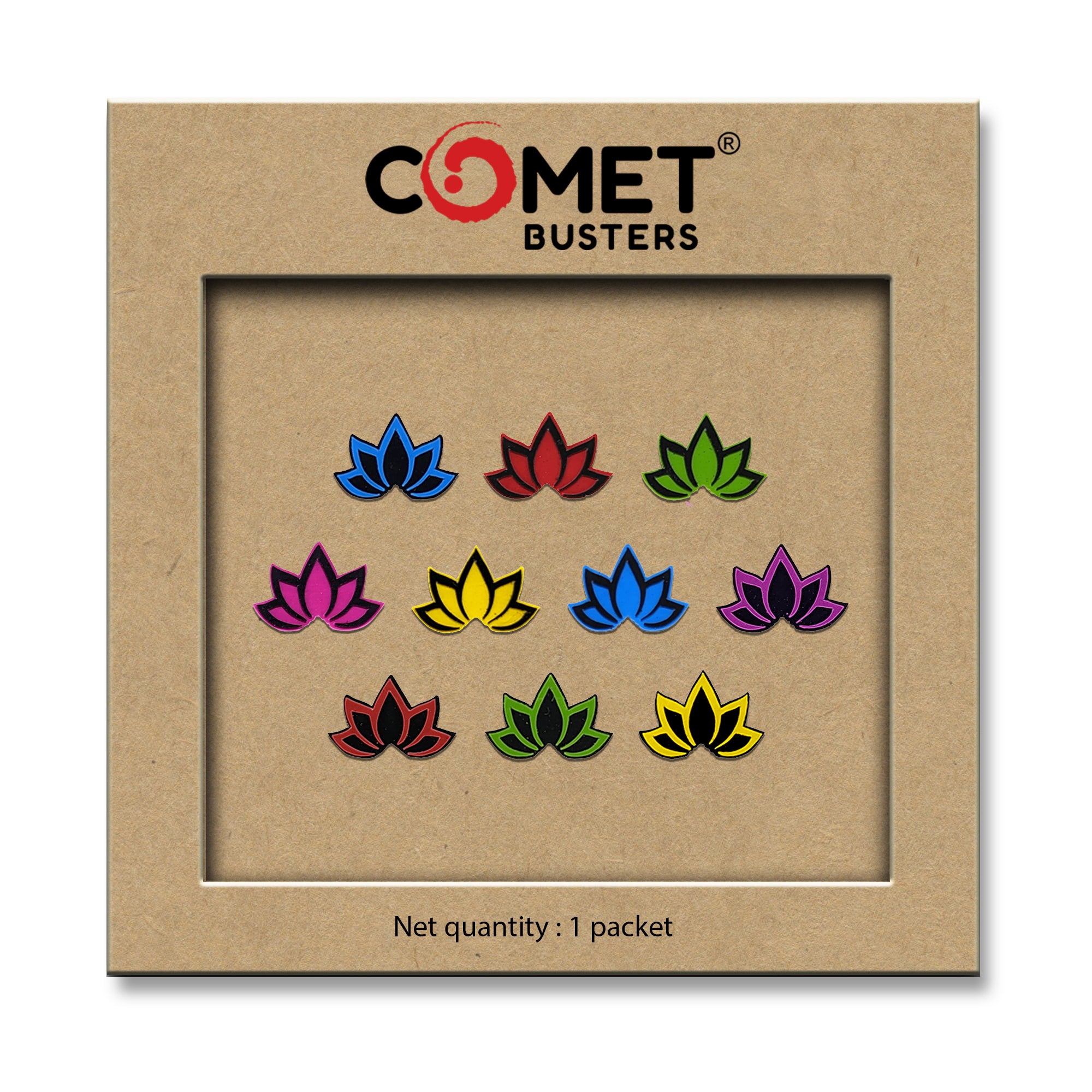 Comet Busters® Multicolor Floral, Lotus – PVC – Handcrafted, Reusable & Skin-Friendly Bindis for Casual Wear (10mm) – Forehead Bindi Stickers for Women & Girls – BIN1958