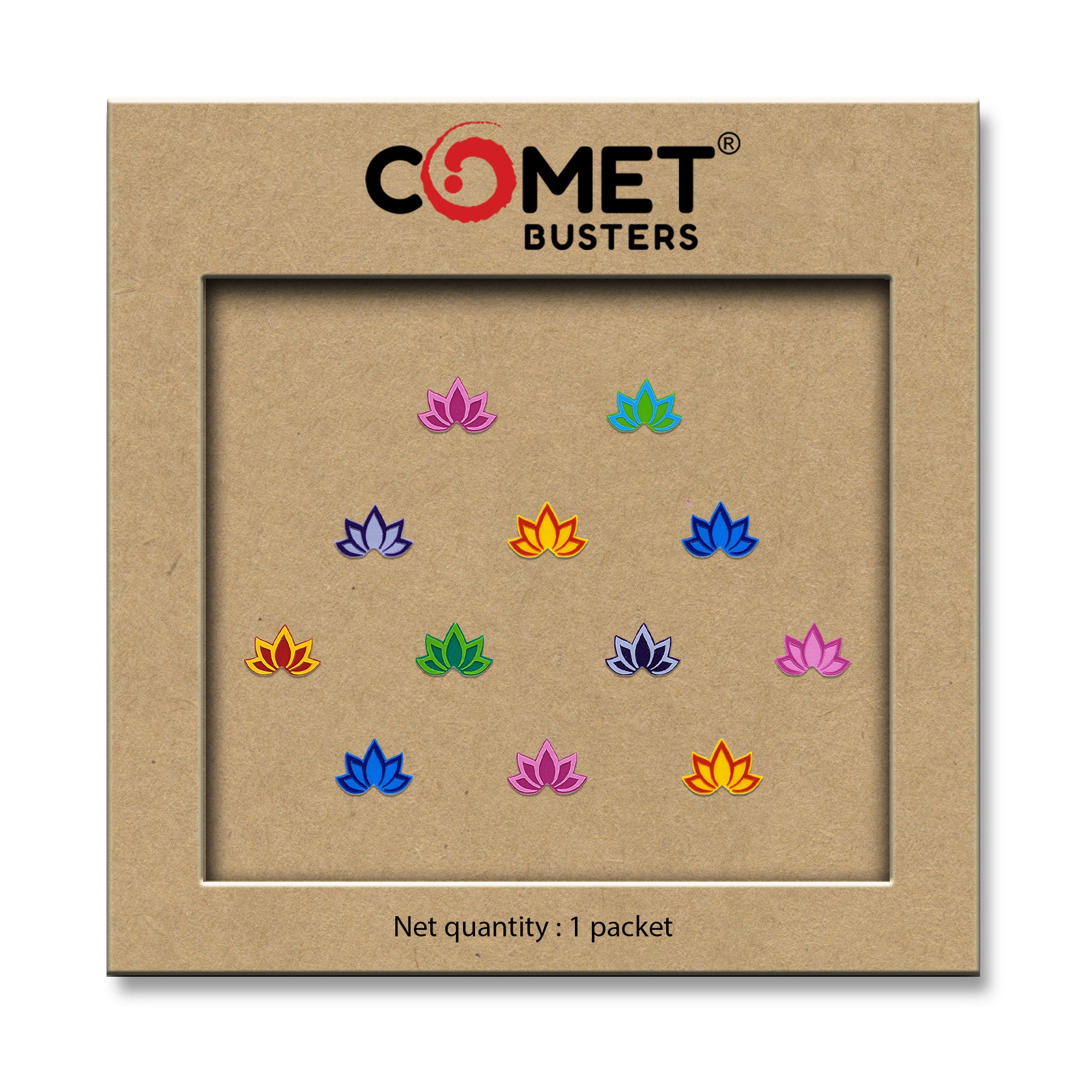Comet Busters® Multicolor Floral, Lotus – PVC – Handcrafted, Reusable & Skin-Friendly Bindis for Casual Wear (4mm) – Forehead Bindi Stickers for Women & Girls – BIN2249