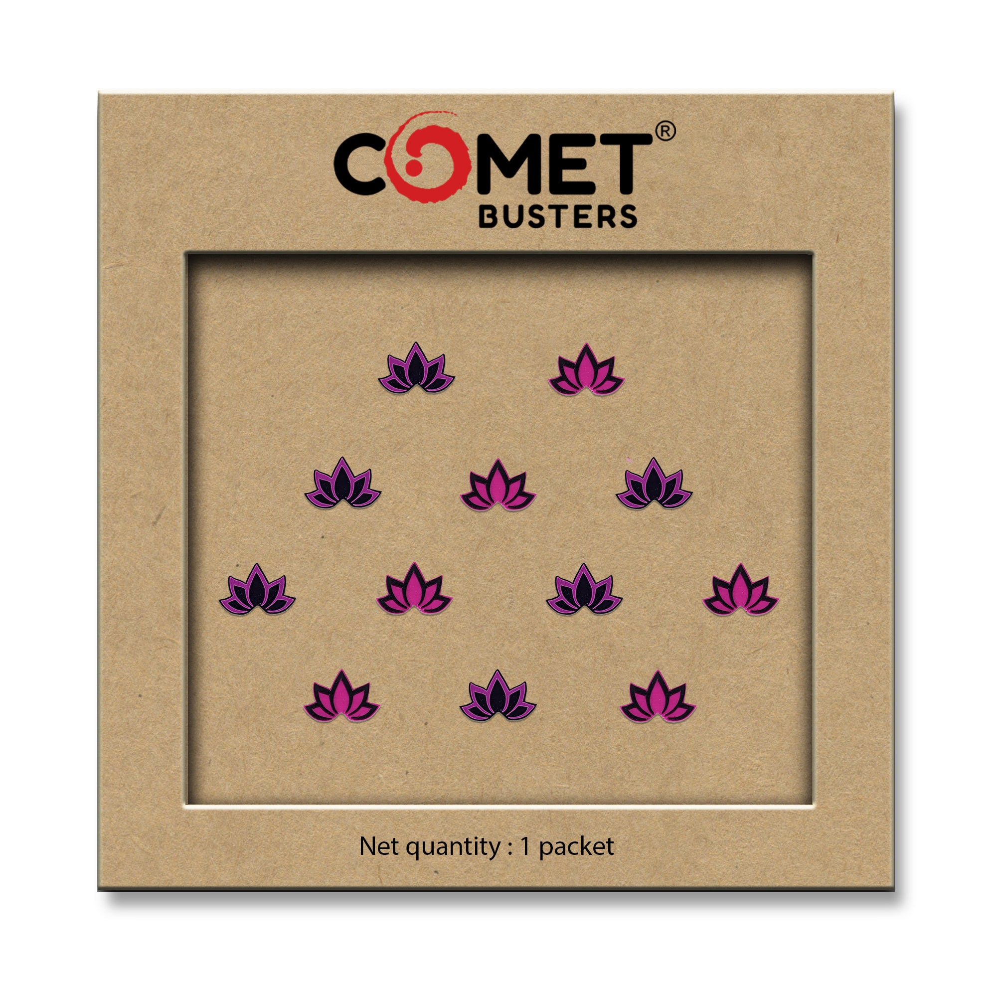 Comet Busters® Pink, Purple, Black, Multicolor Floral, Lotus – PVC – Handcrafted, Reusable & Skin-Friendly Bindis for Casual Wear (4mm) – Forehead Bindi Stickers for Women & Girls – BIN2250