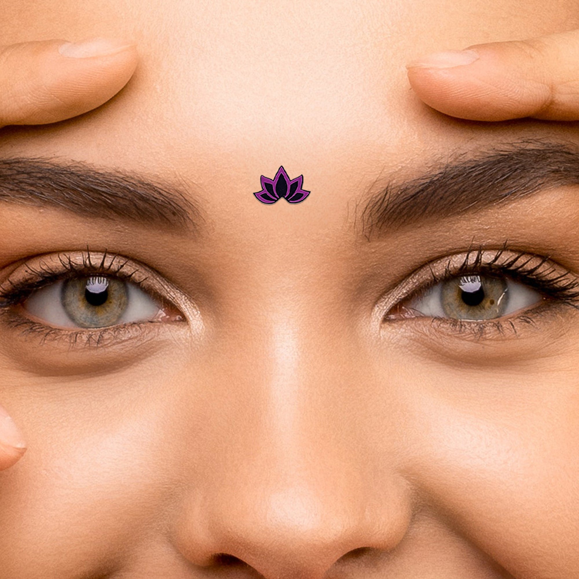 • To apply, gently remove the bindi from its backing and place it between the eyebrows.