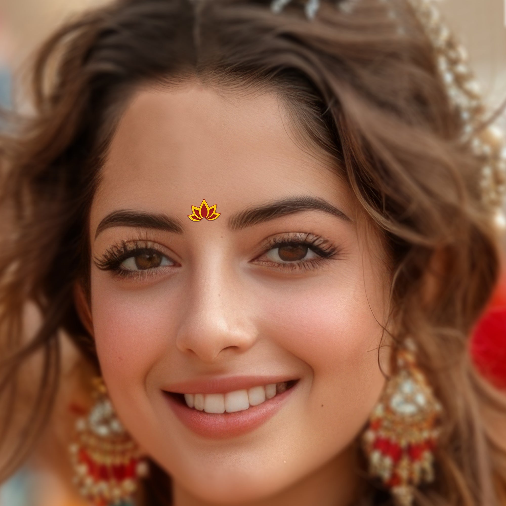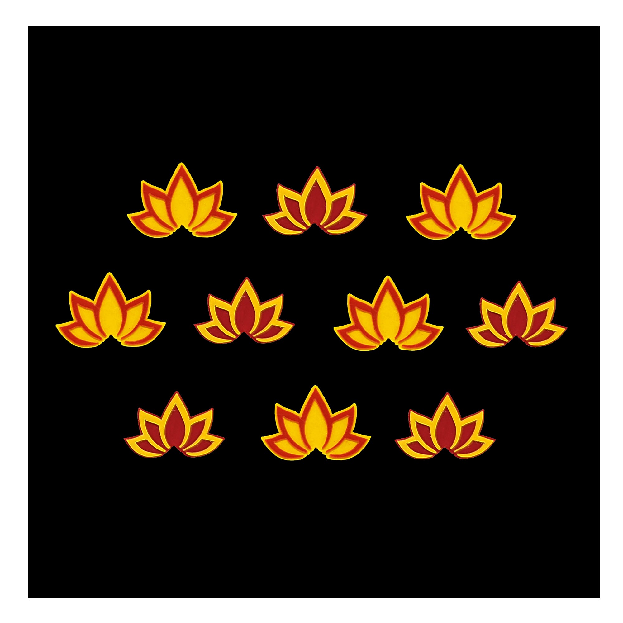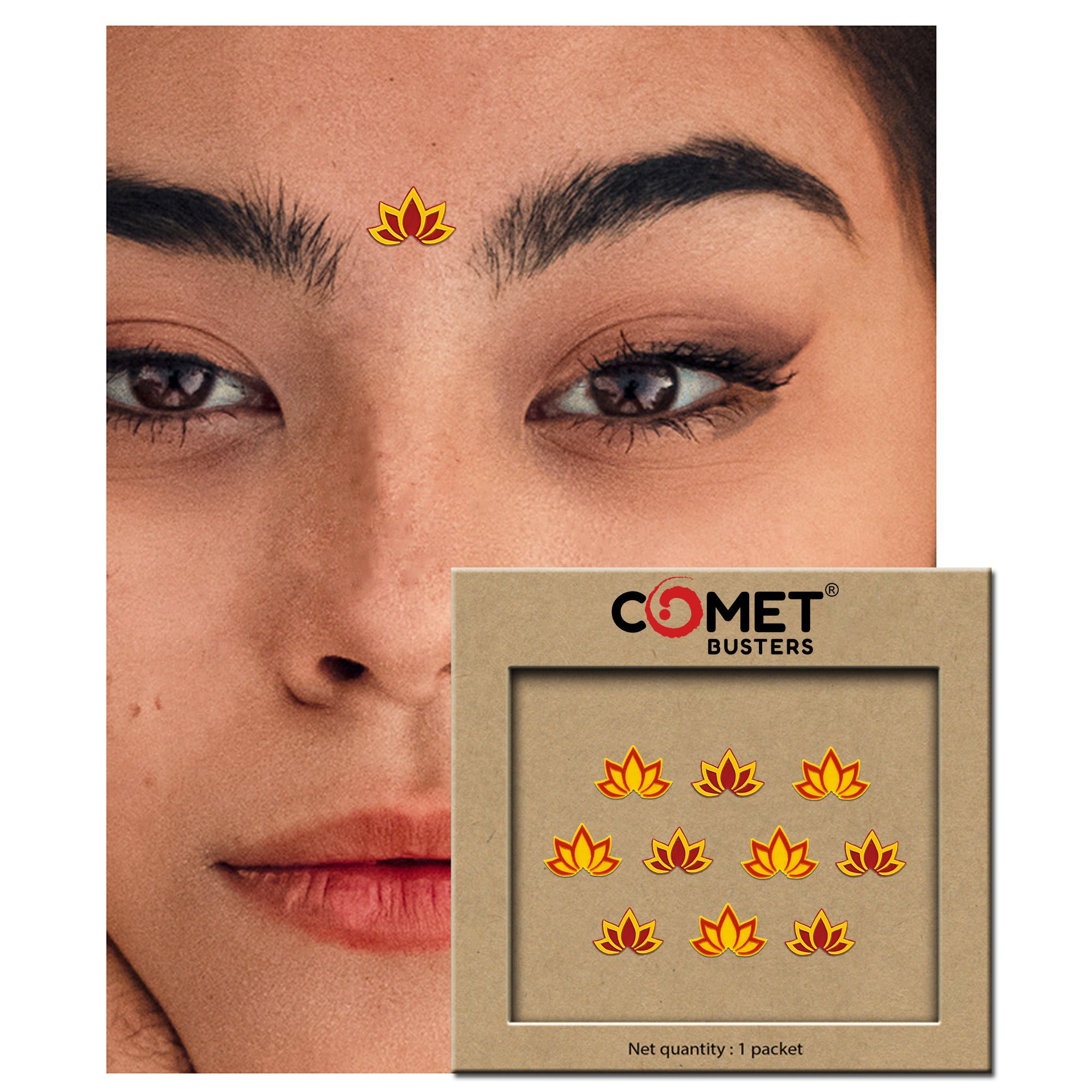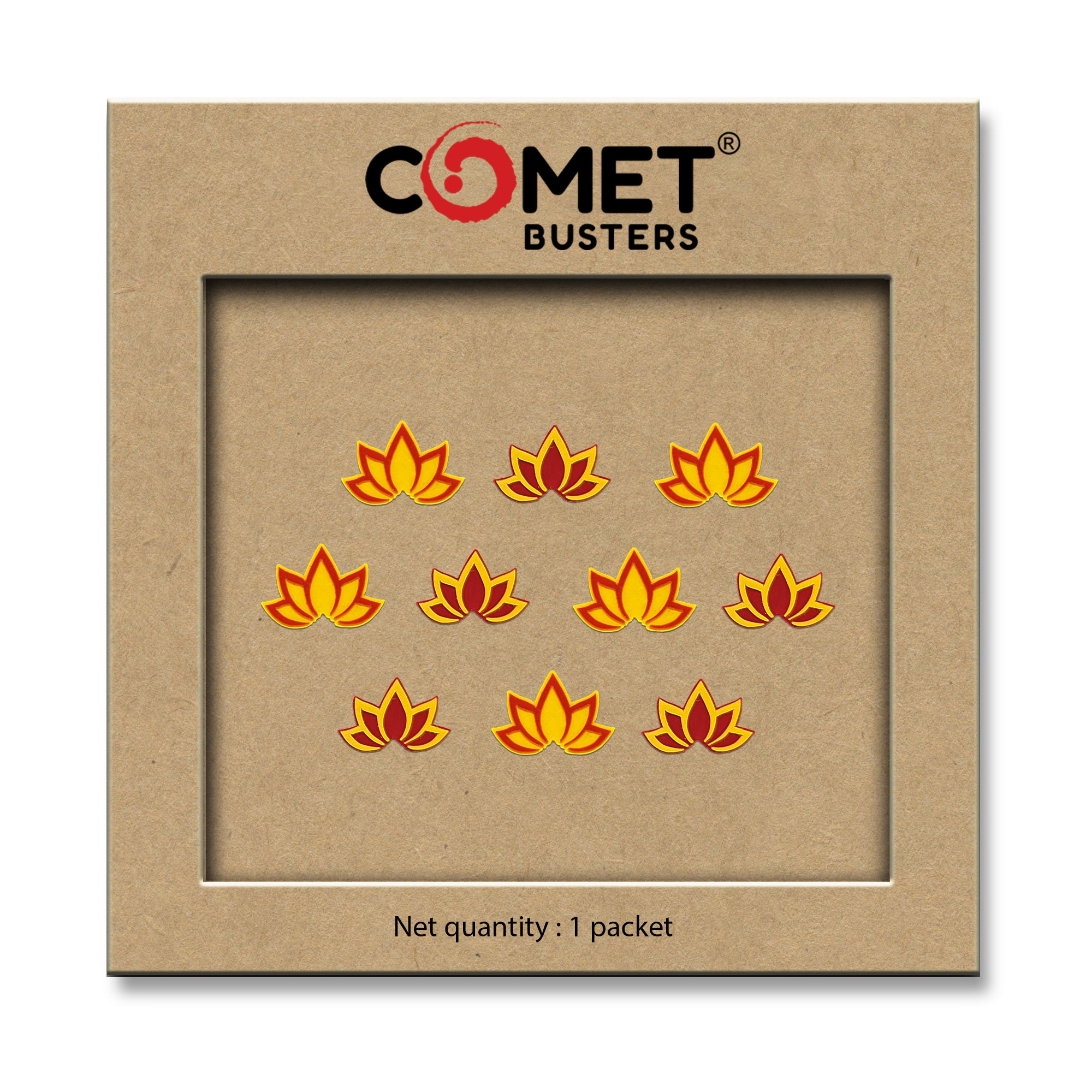 Comet Busters® Yellow, Red, Multicolor Floral, Lotus – PVC – Handcrafted, Reusable & Skin-Friendly Bindis for Casual Wear (10mm) – Forehead Bindi Stickers for Women & Girls – BIN1944
