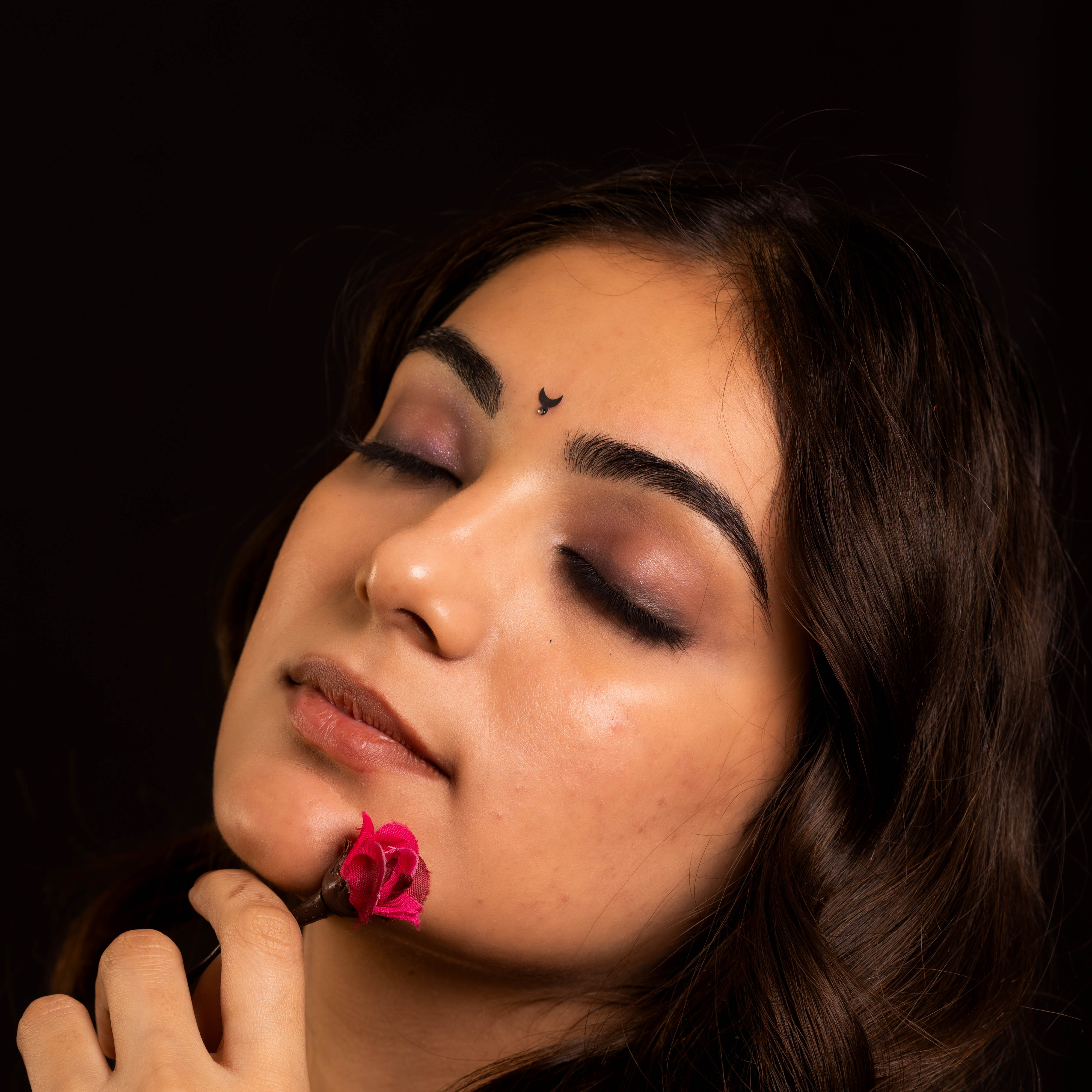 • To apply, gently remove the bindi from its backing and place it between the eyebrows.