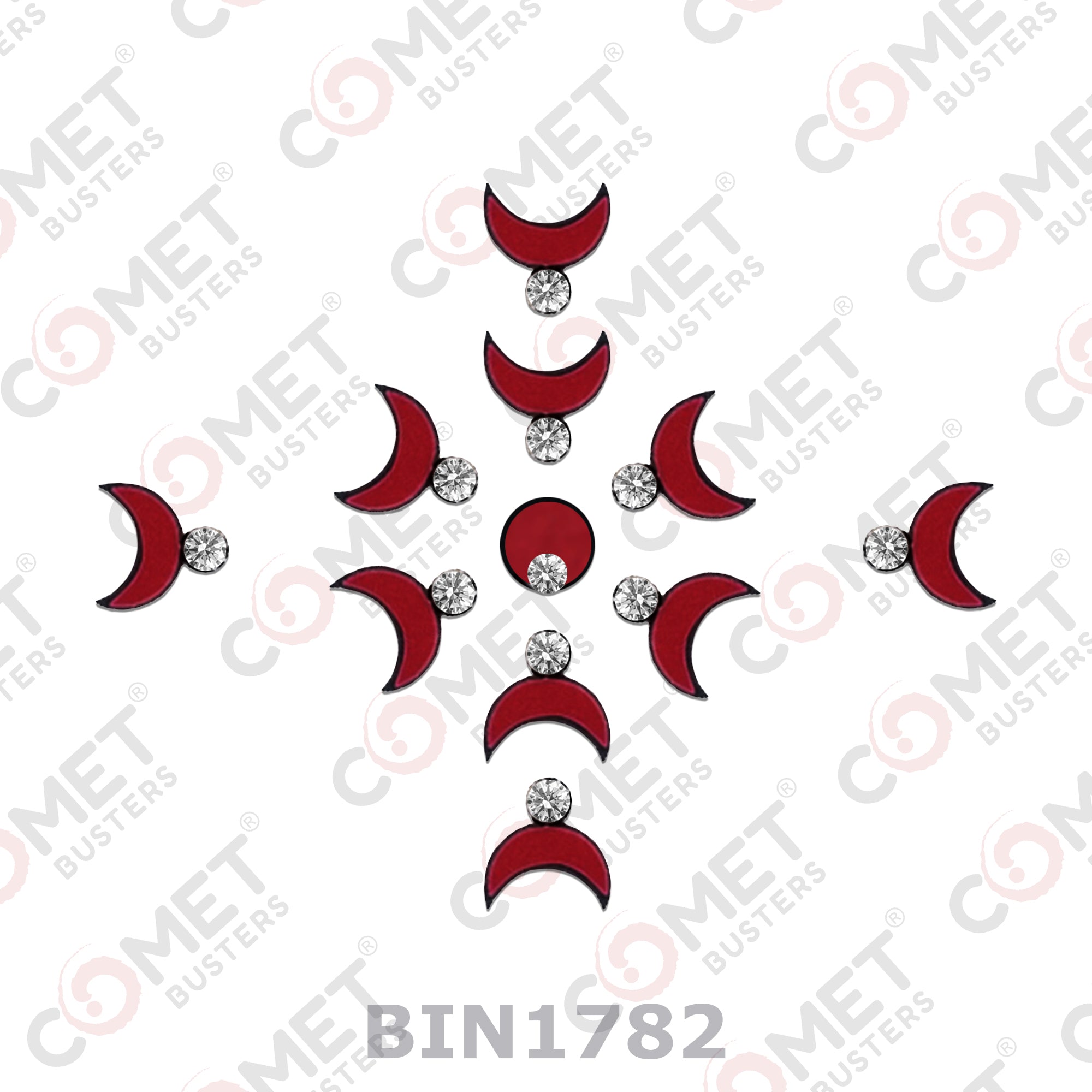Comet Busters® Red Moon– PVC, Diamond – Handcrafted, Reusable & Skin-Friendly Bindis for Casual Wear (7mm) – Forehead Bindi Stickers for Women & Girls – BIN1782