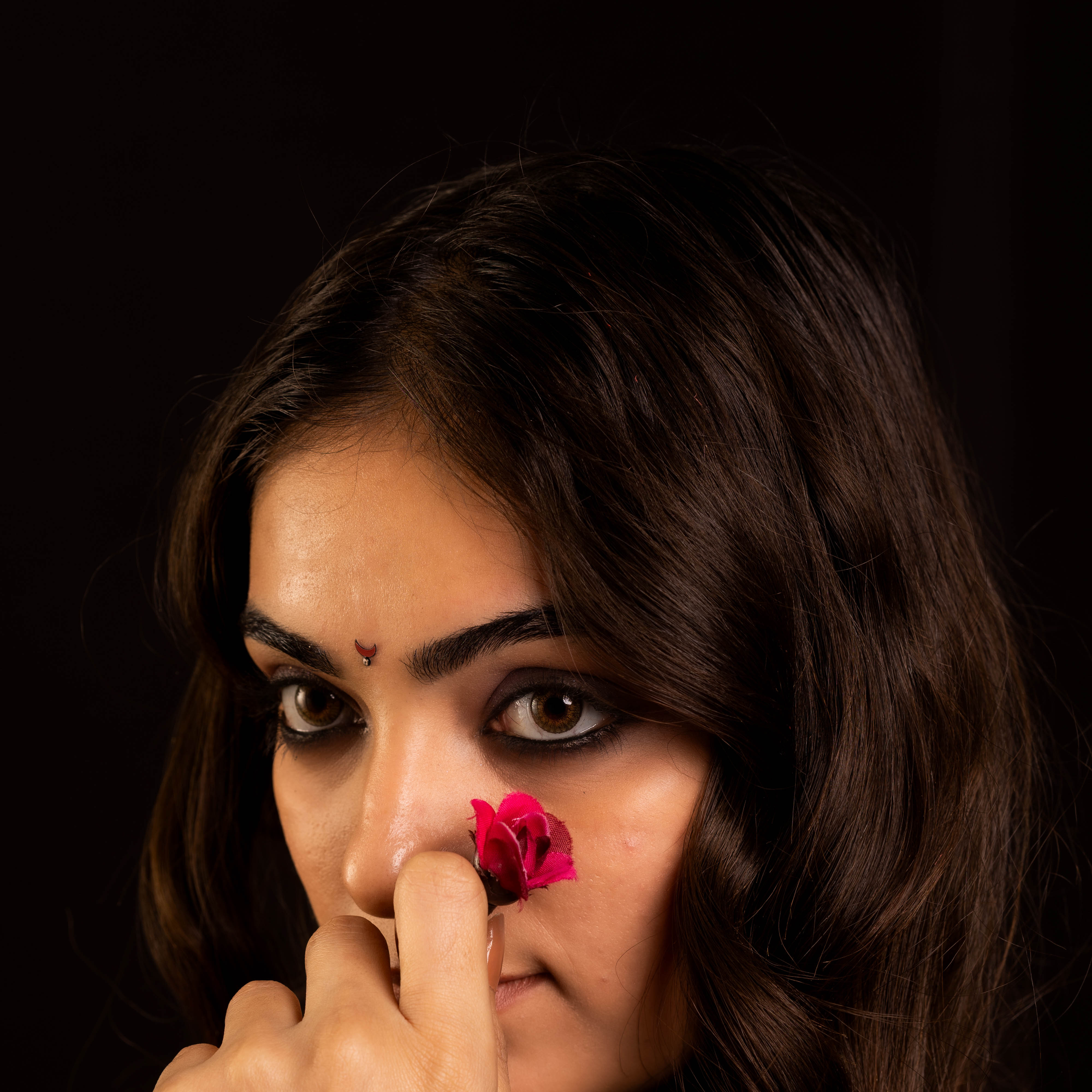 • To apply, gently remove the bindi from its backing and place it between the eyebrows.