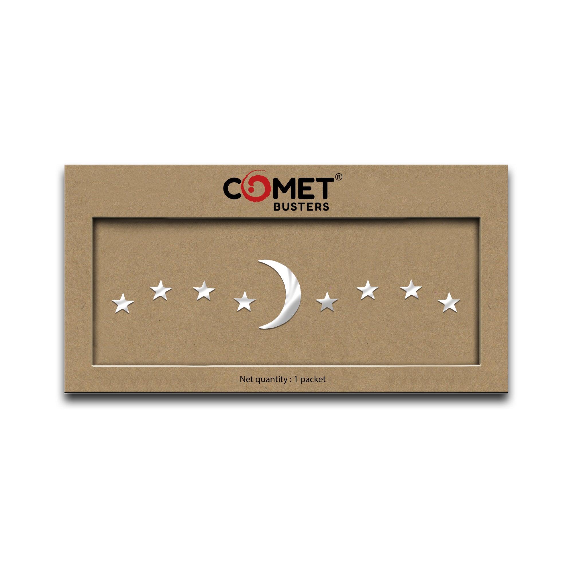 Comet Busters® Silver Star, Moon – PVC – Handcrafted, Reusable & Skin-Friendly Bindis for Party Wear (Free Sizemm) – Forehead Bindi Stickers for Women & Girls – BIN2296