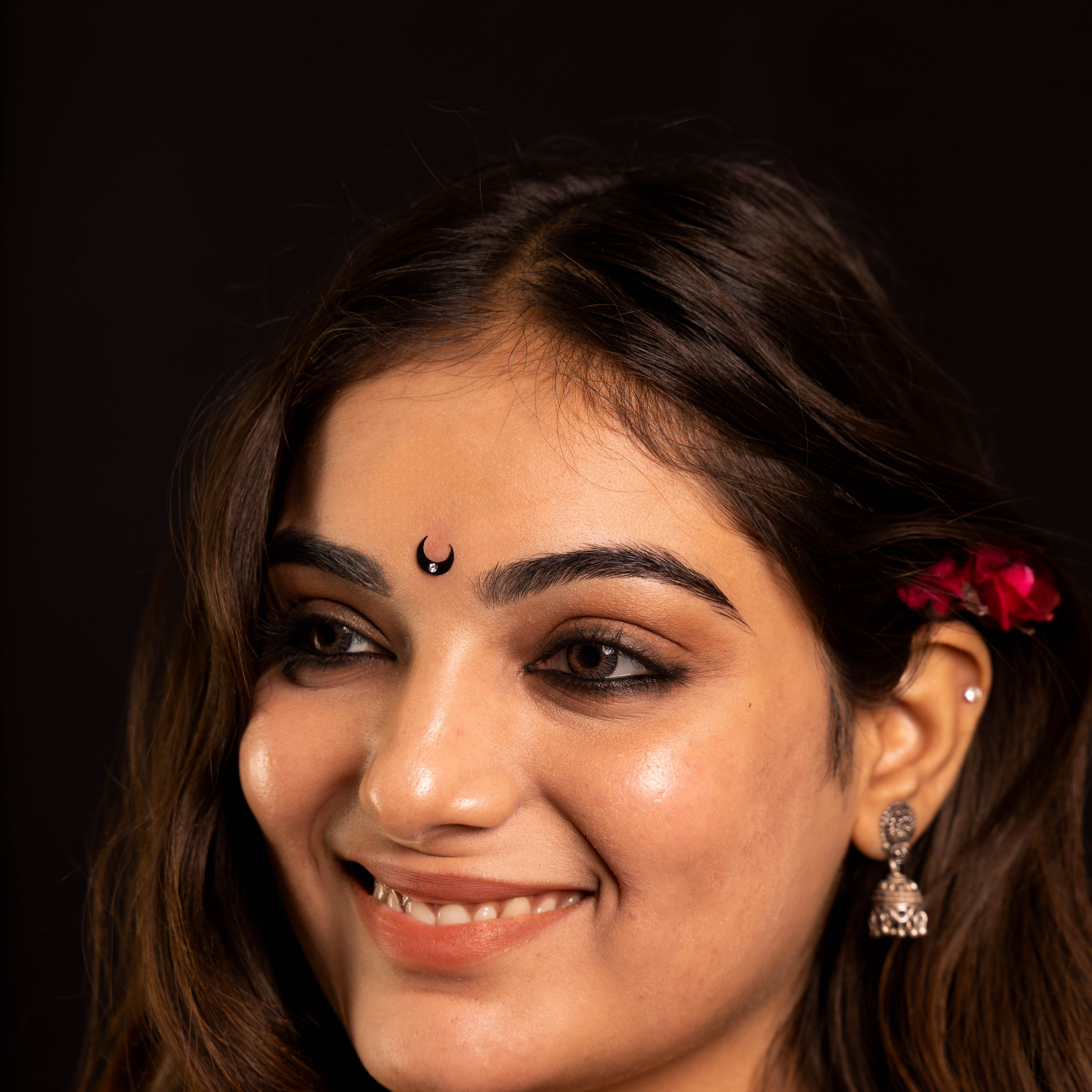 • To apply, gently remove the bindi from its backing and place it between the eyebrows.