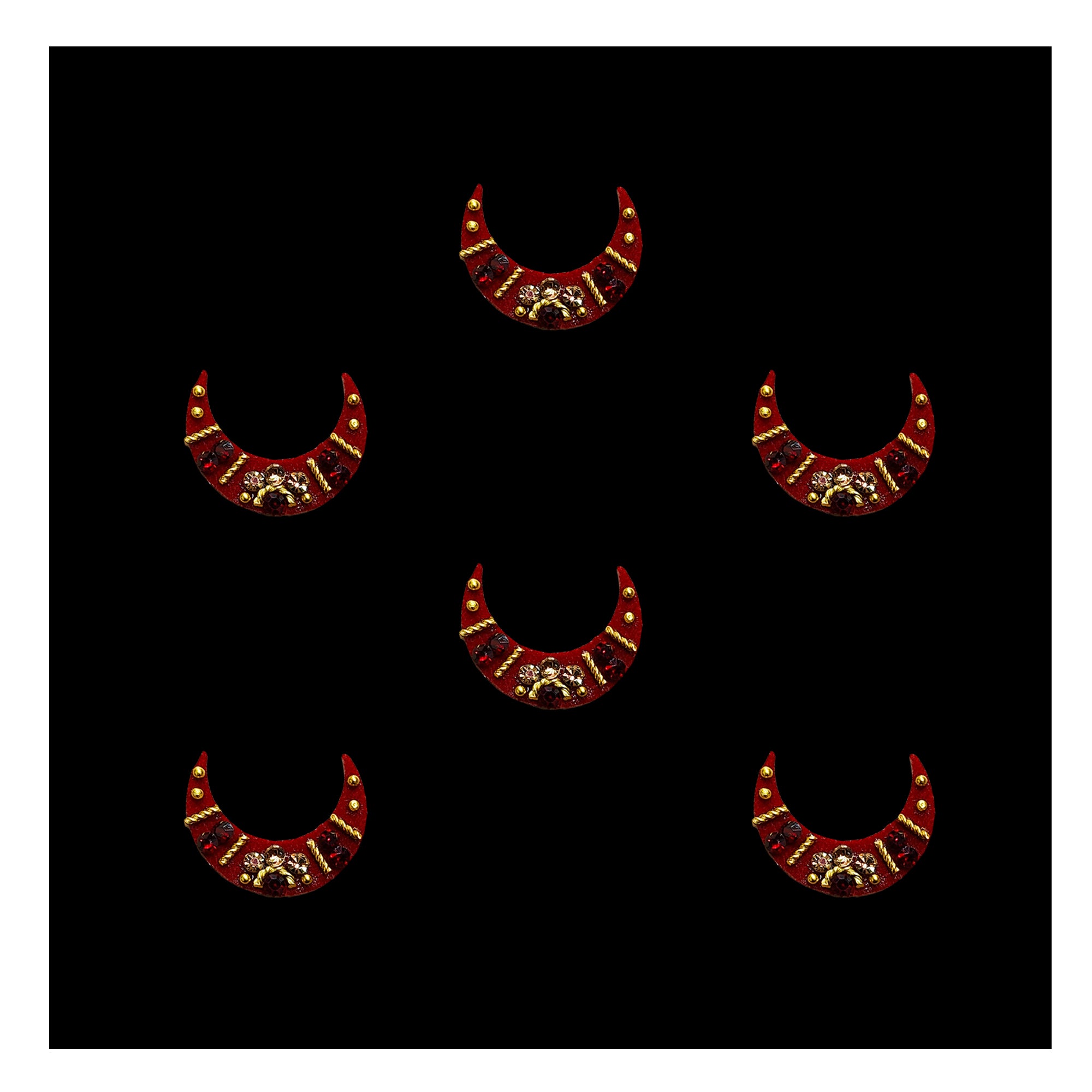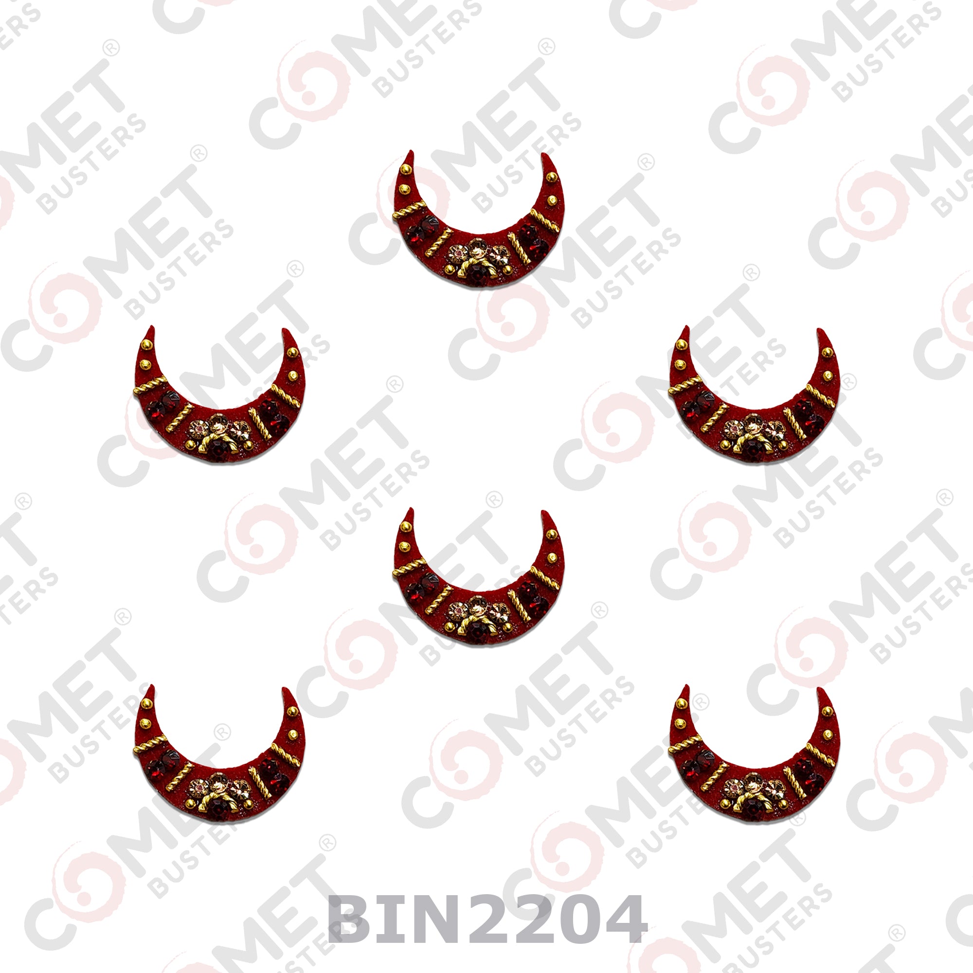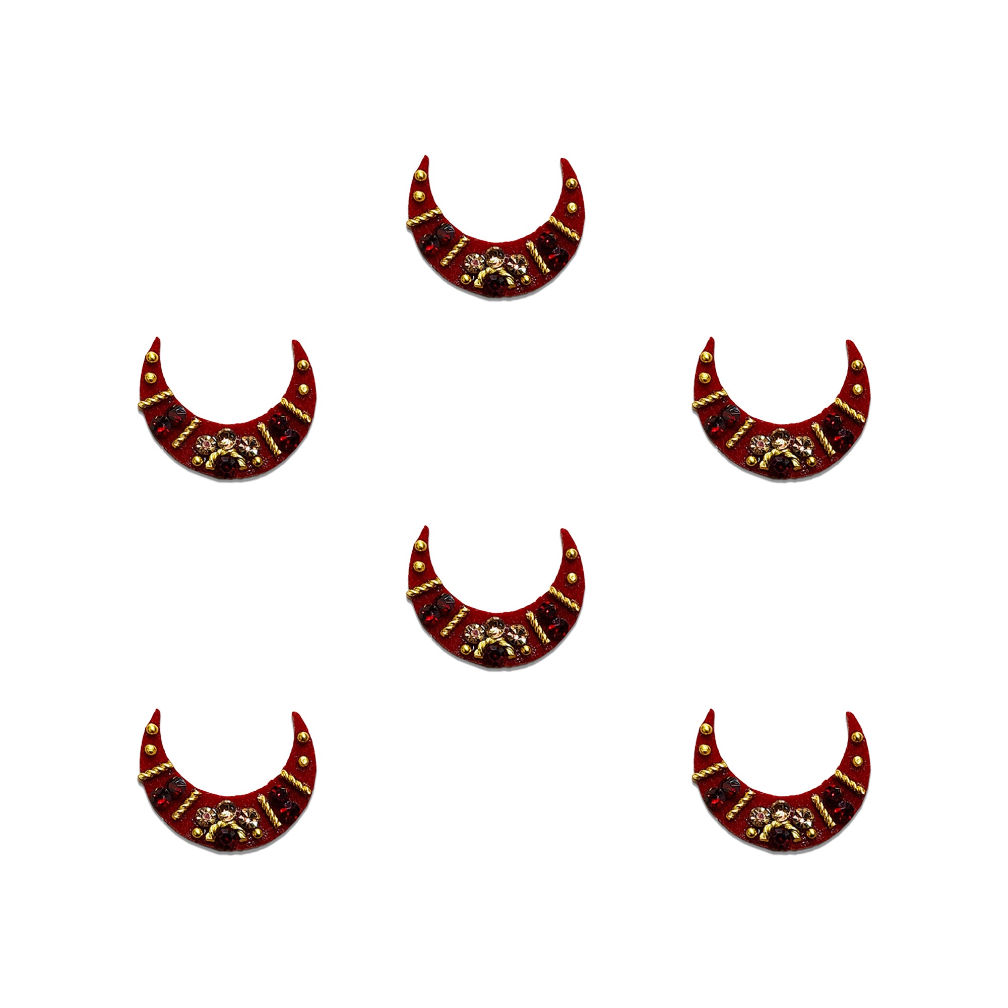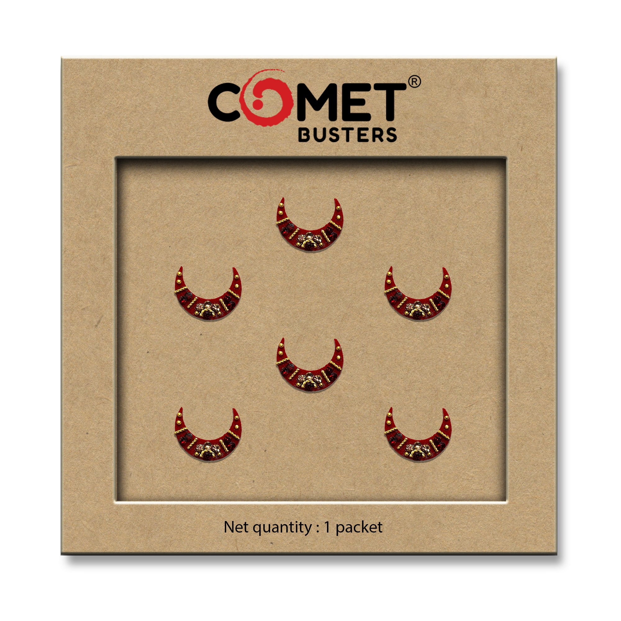 Comet Busters® Maroon Moon – Velvet, Diamond, Shiny Beads – Handcrafted, Reusable & Skin-Friendly Bindis for Party Wear (10mm) – Forehead Bindi Stickers for Women & Girls – BIN2204