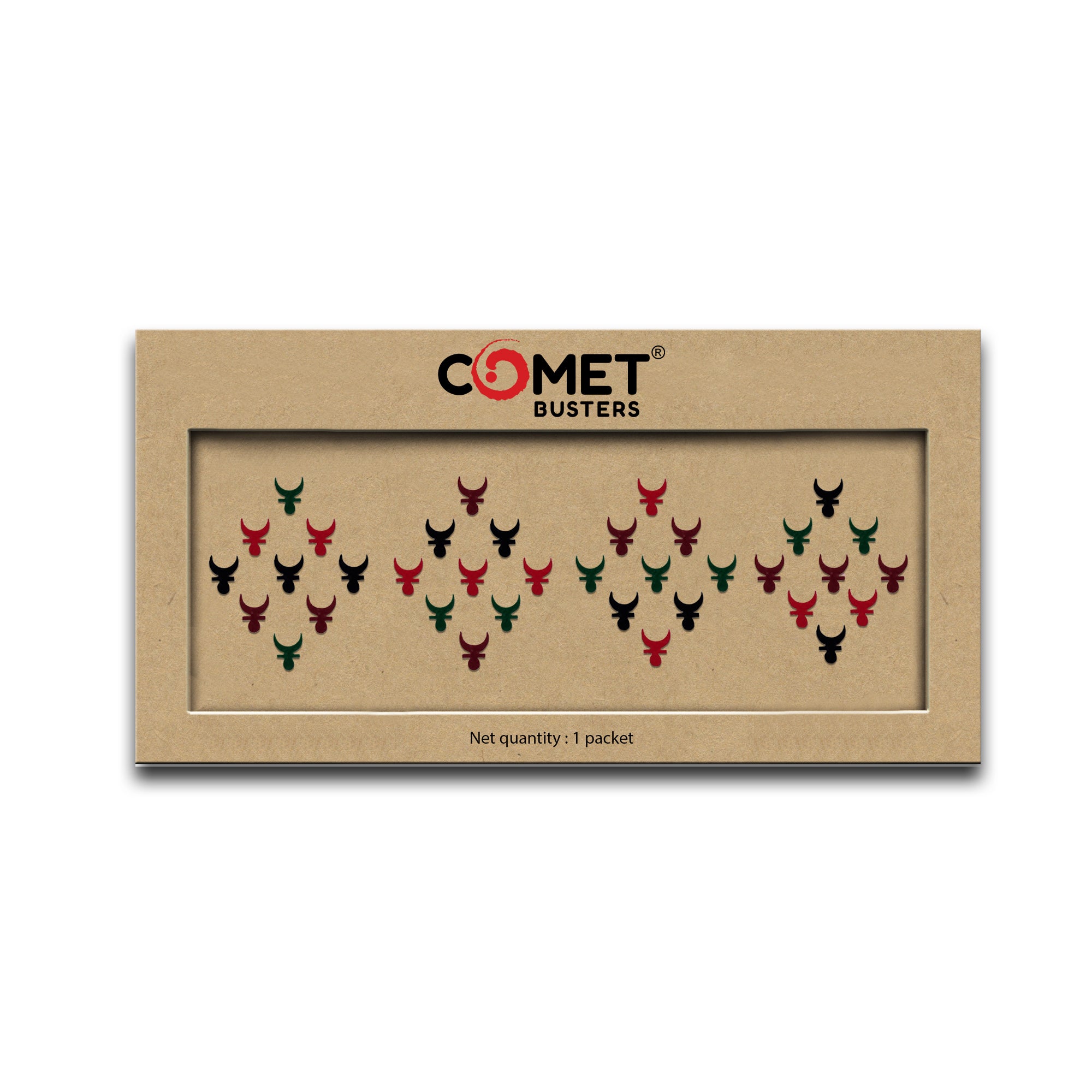 Comet Busters® Maroon, Black, Red, Multicolor Moon – PVC – Handcrafted, Reusable & Skin-Friendly Bindis for Casual Wear (8mm) – Forehead Bindi Stickers for Women & Girls – BIN1775