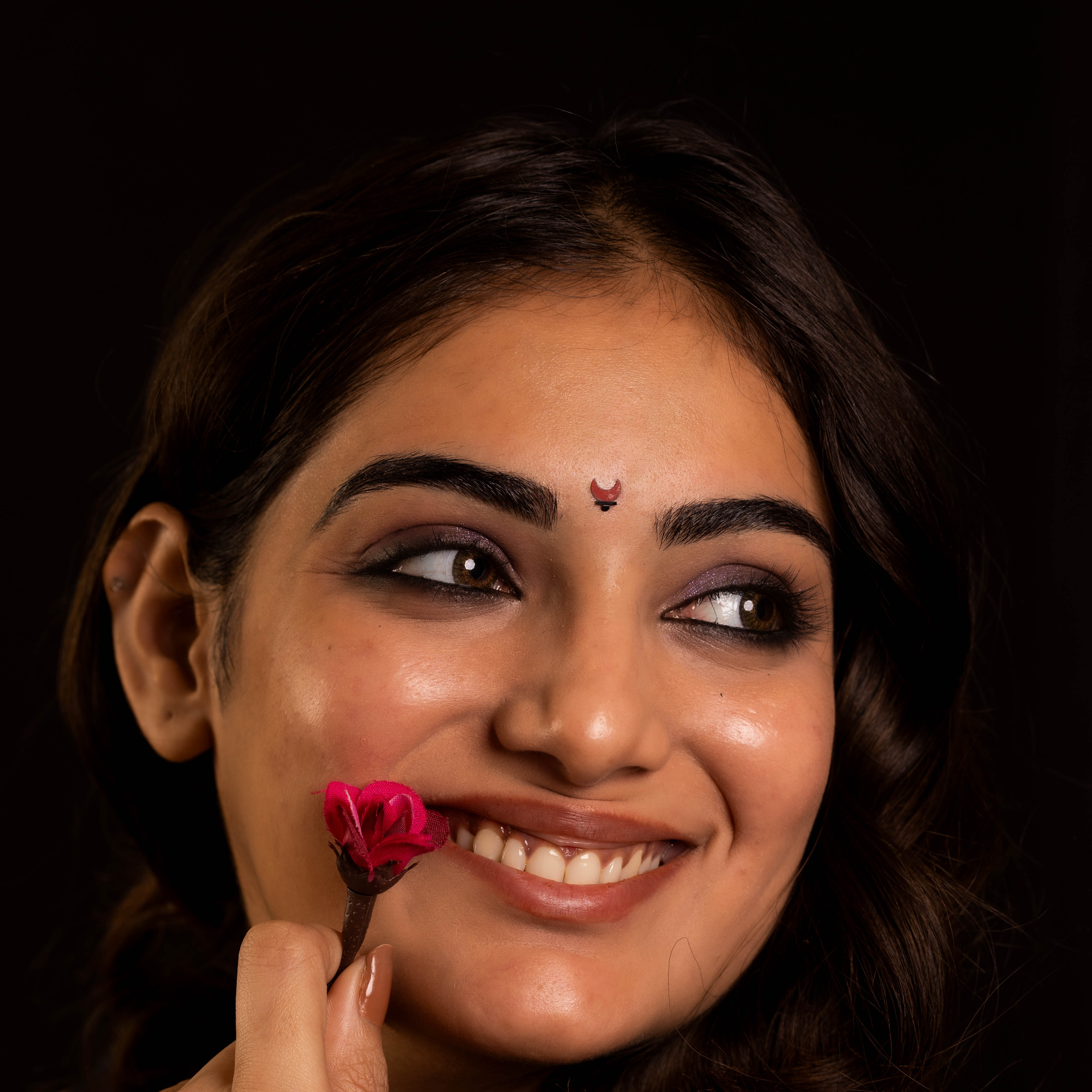 • To apply, gently remove the bindi from its backing and place it between the eyebrows.