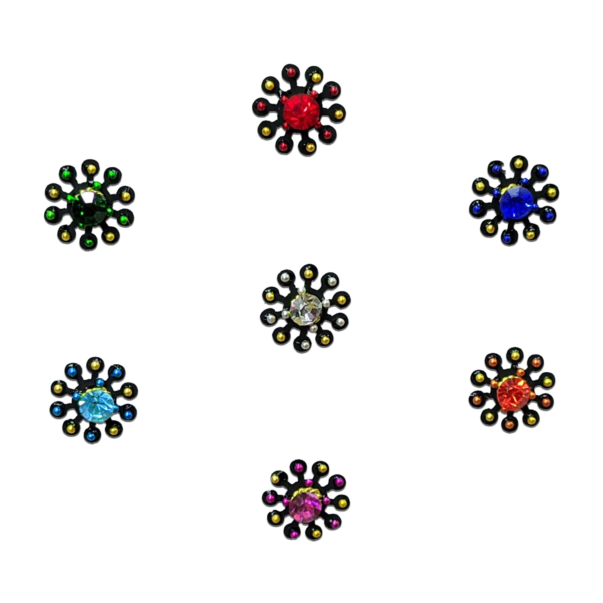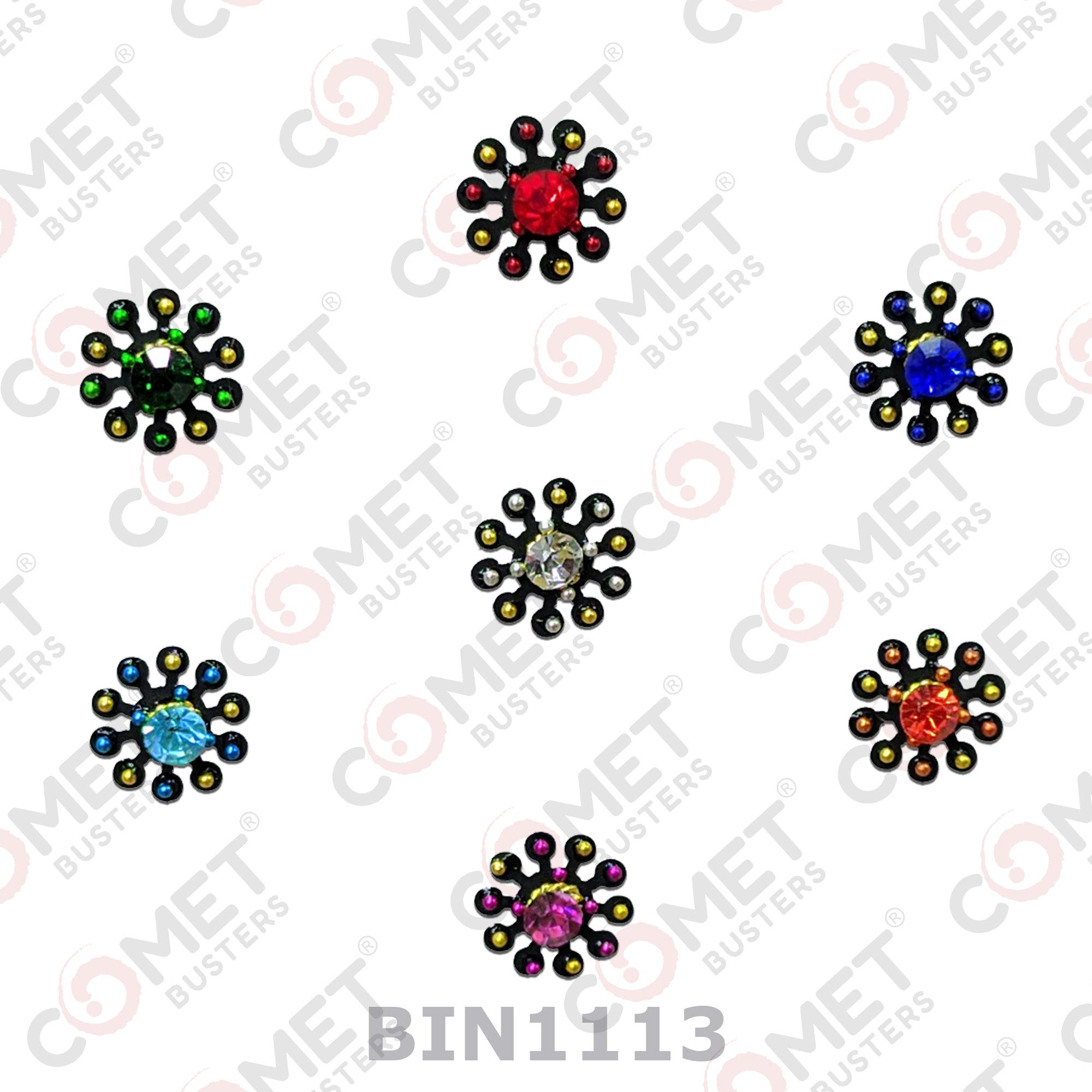 Comet Busters Fancy Round Bindis With Colorful Stone and Beads (10mm)(BIN1113)