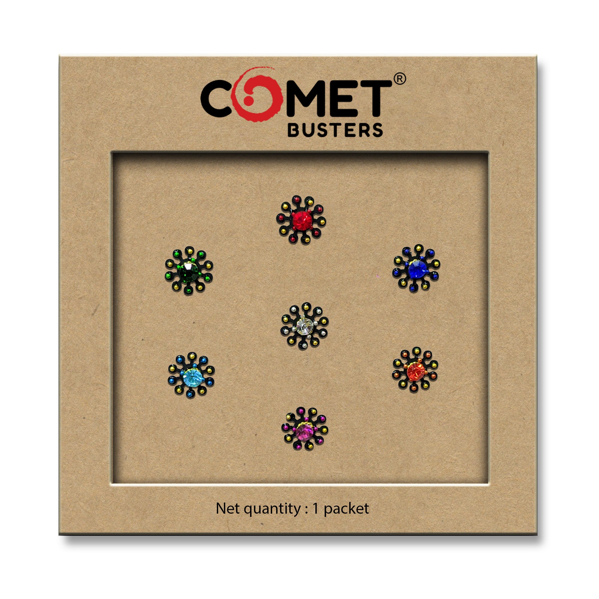 Comet Busters Bindis : We have designed our bindis tapping into centuries of tradition and with attention to detail. Our online bindi store has a beautiful collection of Single, Black color, Maroon Color and multi color body bindis and comprises a range of masterfully created minimalist bindi designs. All bindi designs are handcrafted with care and attempt to embody the elegance and grace of a woman.