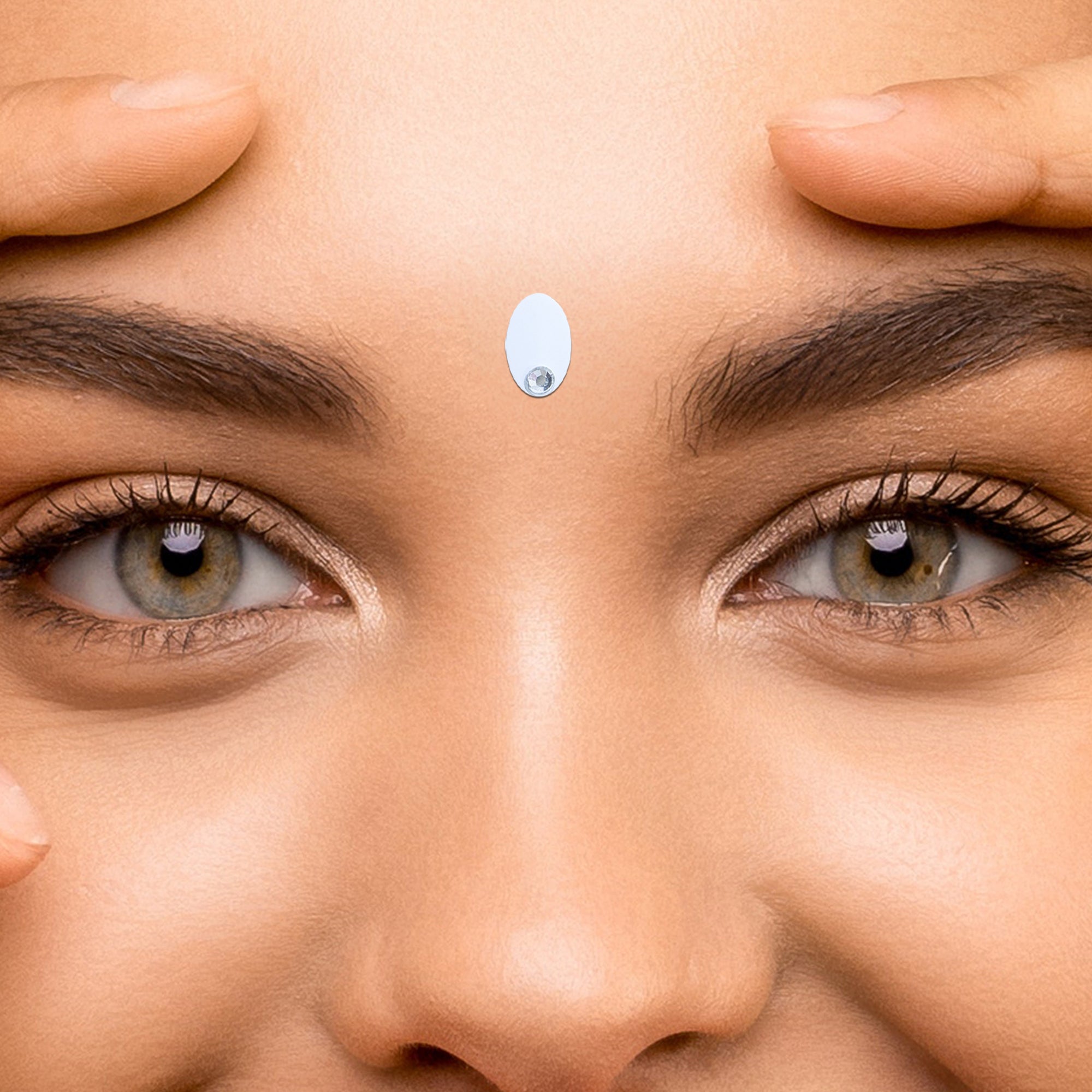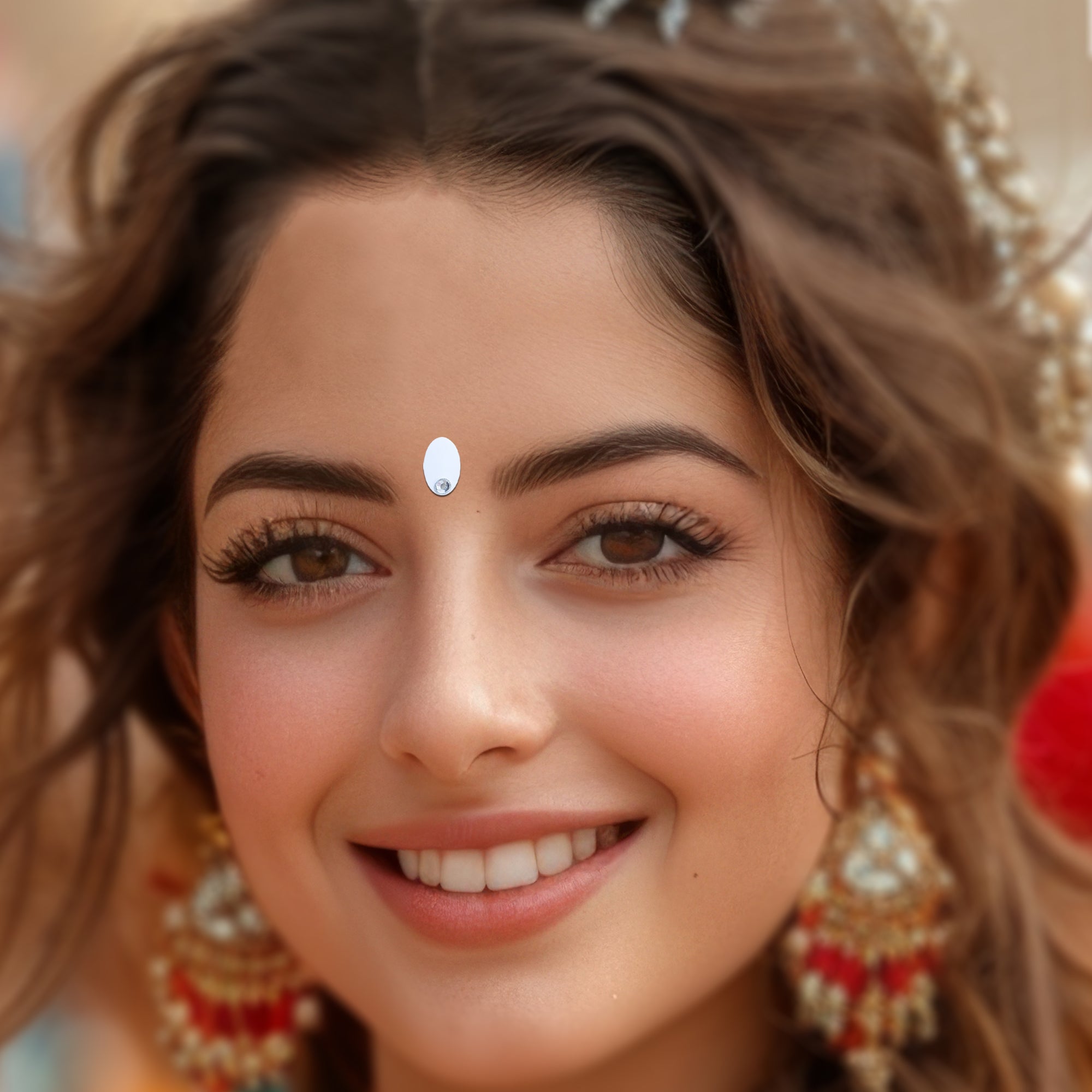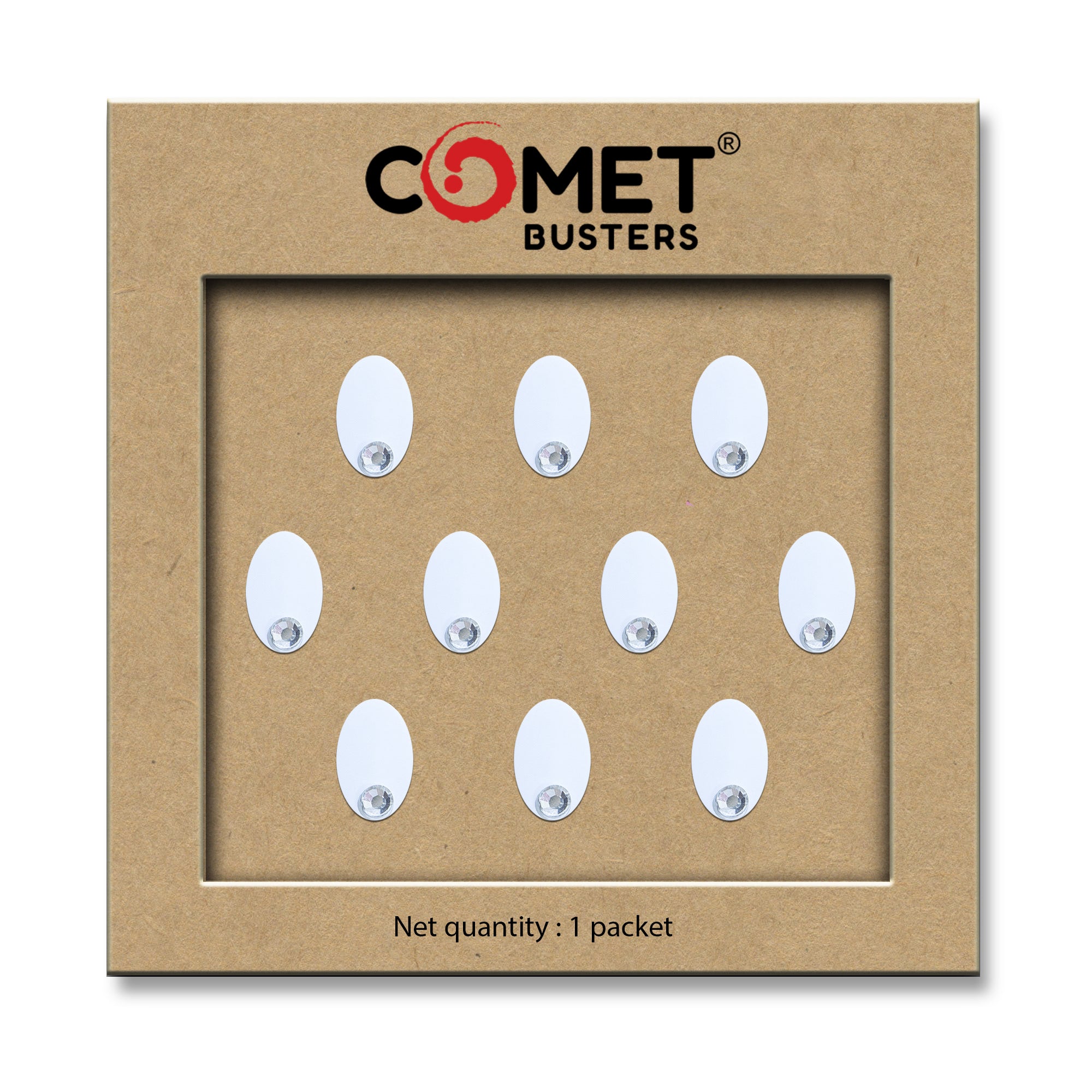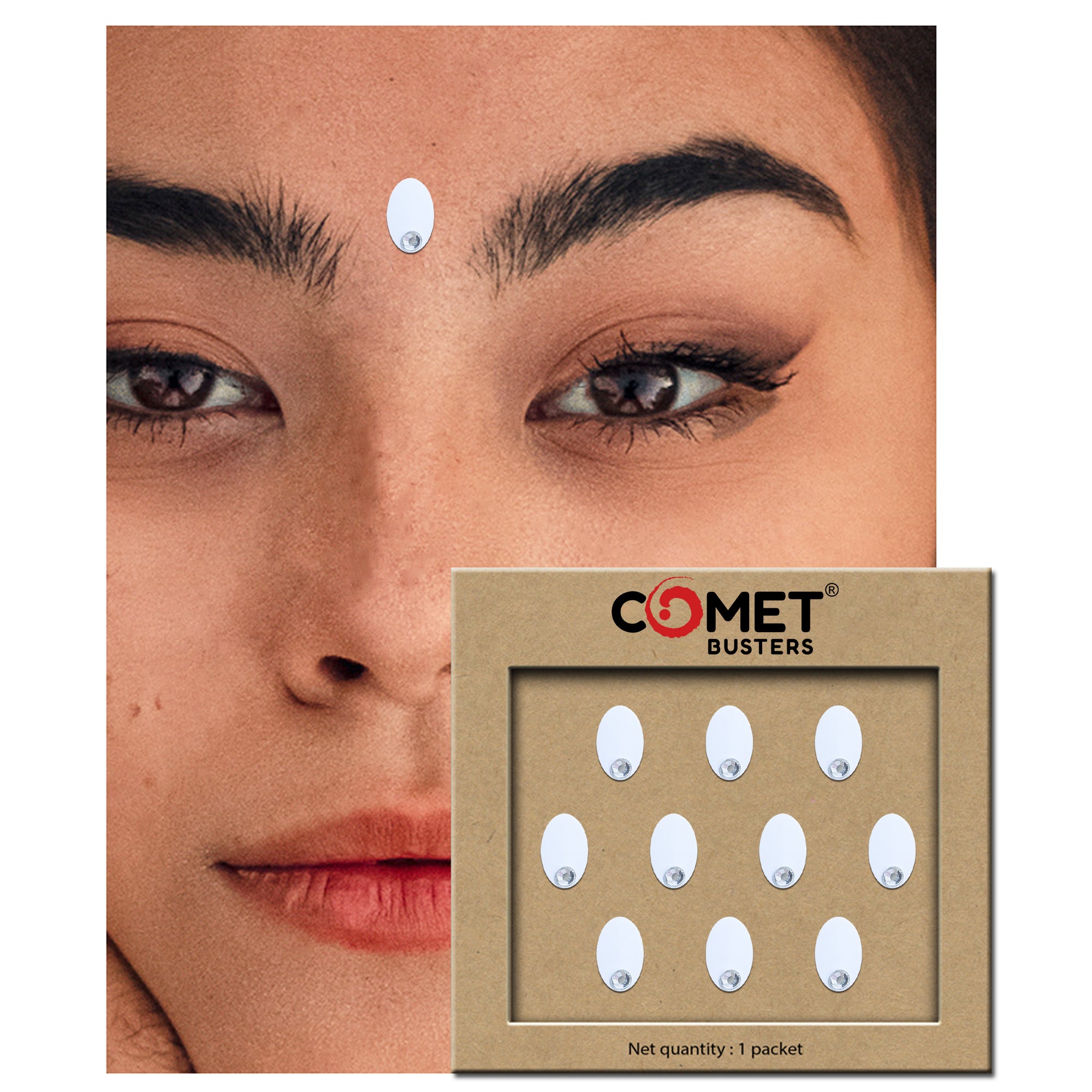 Comet Busters® White Oval – PVC, Diamond – Handcrafted, Reusable & Skin-Friendly Bindis for Casual Wear (10mm) – Forehead Bindi Stickers for Women & Girls – BIN2039