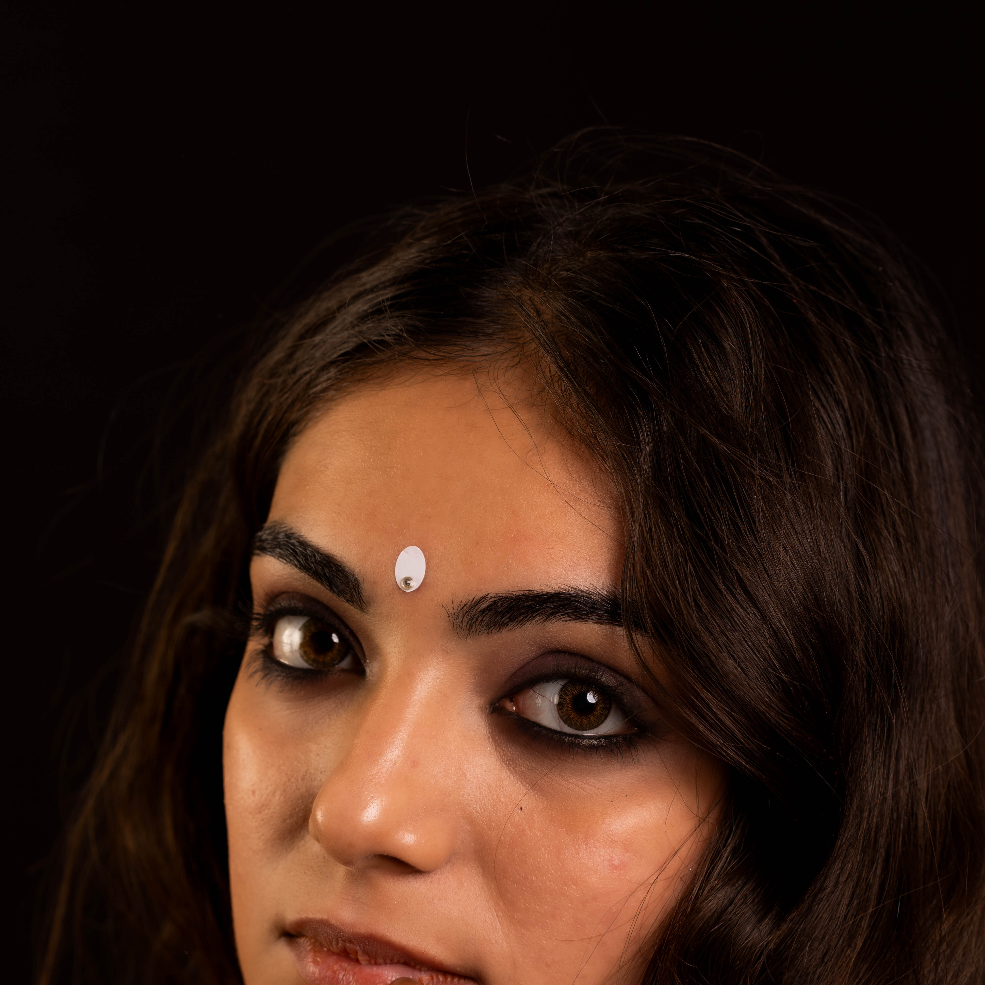 • To apply, gently remove the bindi from its backing and place it between the eyebrows.