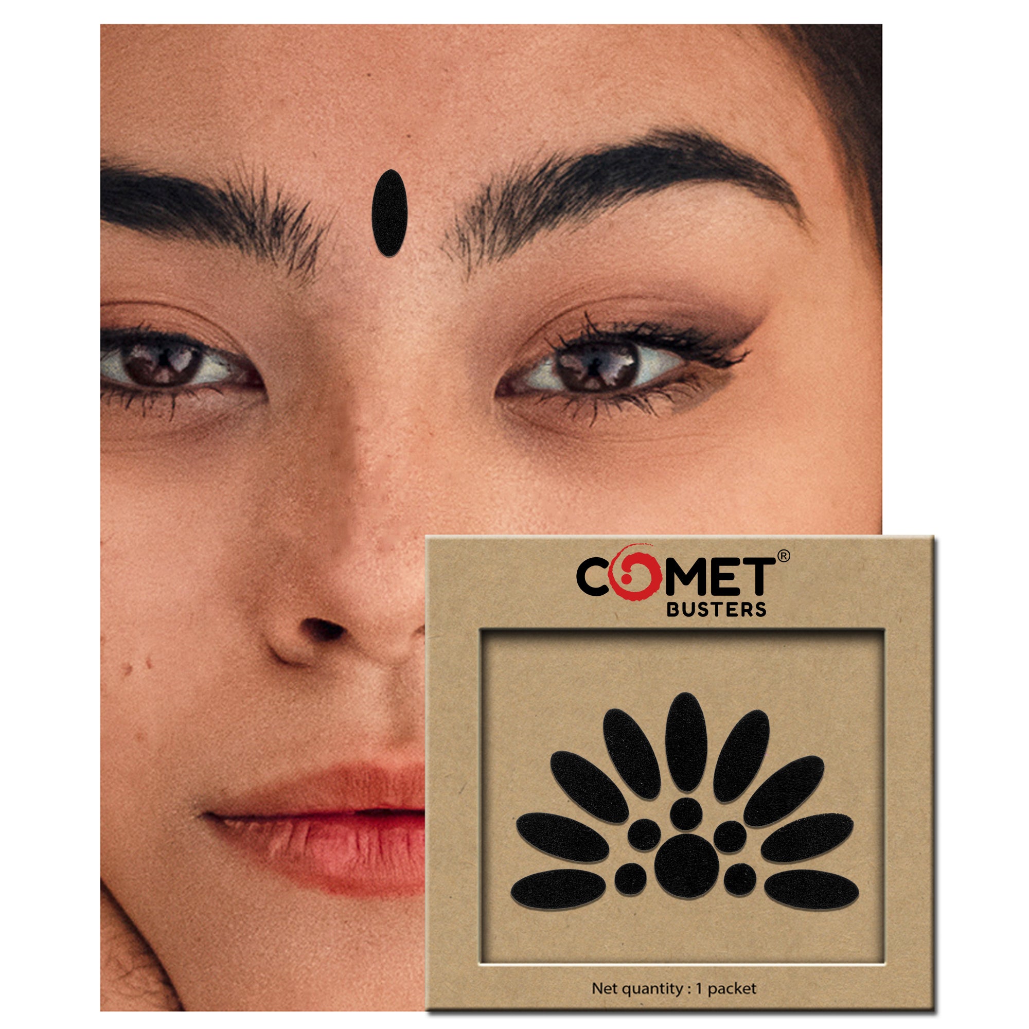 Comet Busters® Black Oval, Round – Velvet – Handcrafted, Reusable & Skin-Friendly Bindis for Casual Wear (15mm) – Forehead Bindi Stickers for Women & Girls – BIN1890