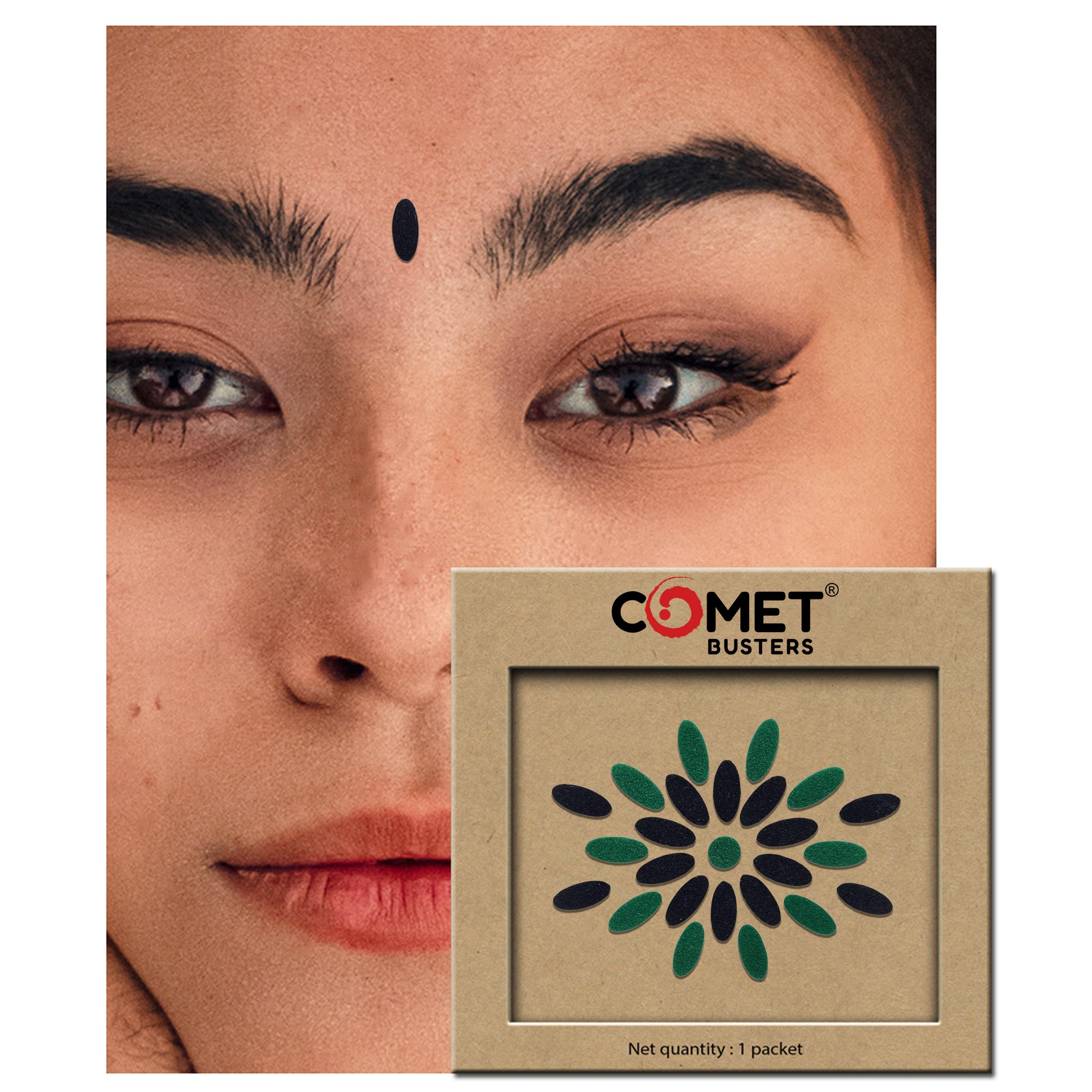 Comet Busters® Green, Black, Multicolor Oval– Velvet – Handcrafted, Reusable & Skin-Friendly Bindis for Casual Wear (9mm) – Forehead Bindi Stickers for Women & Girls – BIN1870