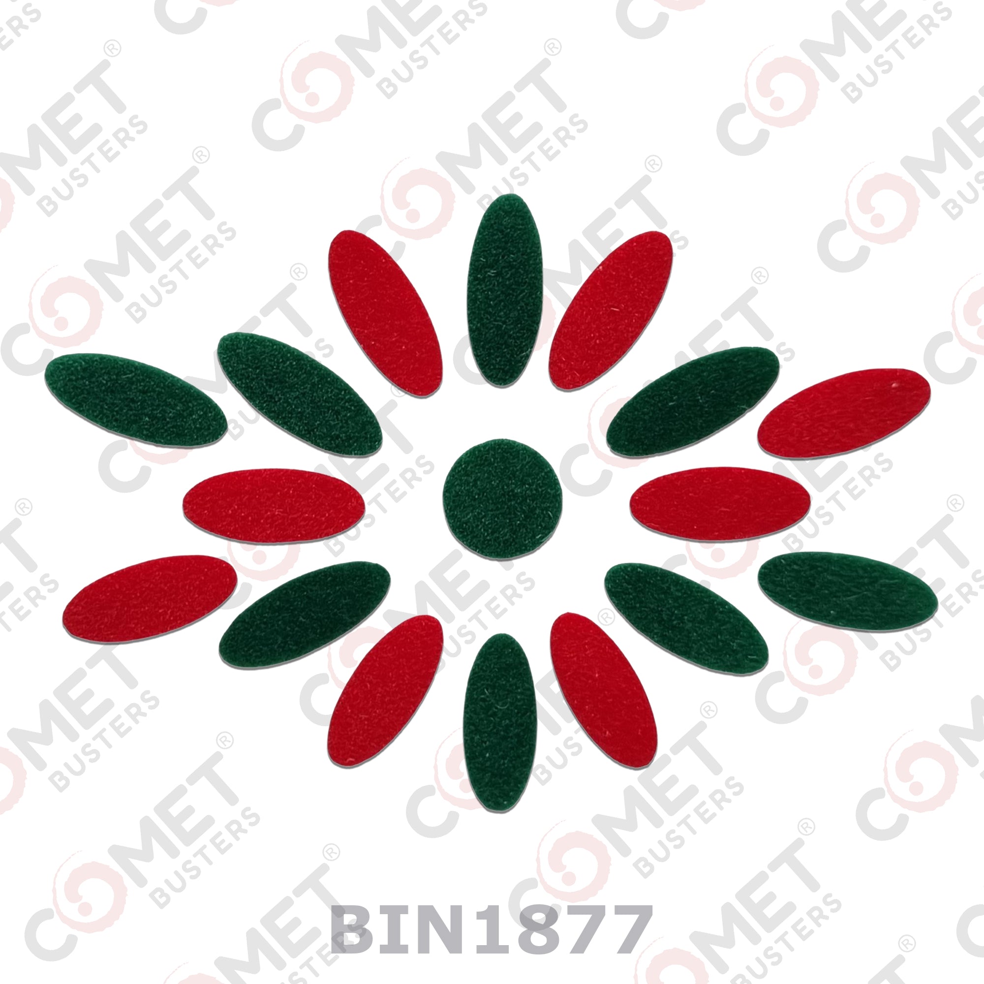 Comet Busters® Red, Green, Multicolor Oval– Velvet – Handcrafted, Reusable & Skin-Friendly Bindis for Casual Wear (11mm) – Forehead Bindi Stickers for Women & Girls – BIN1877