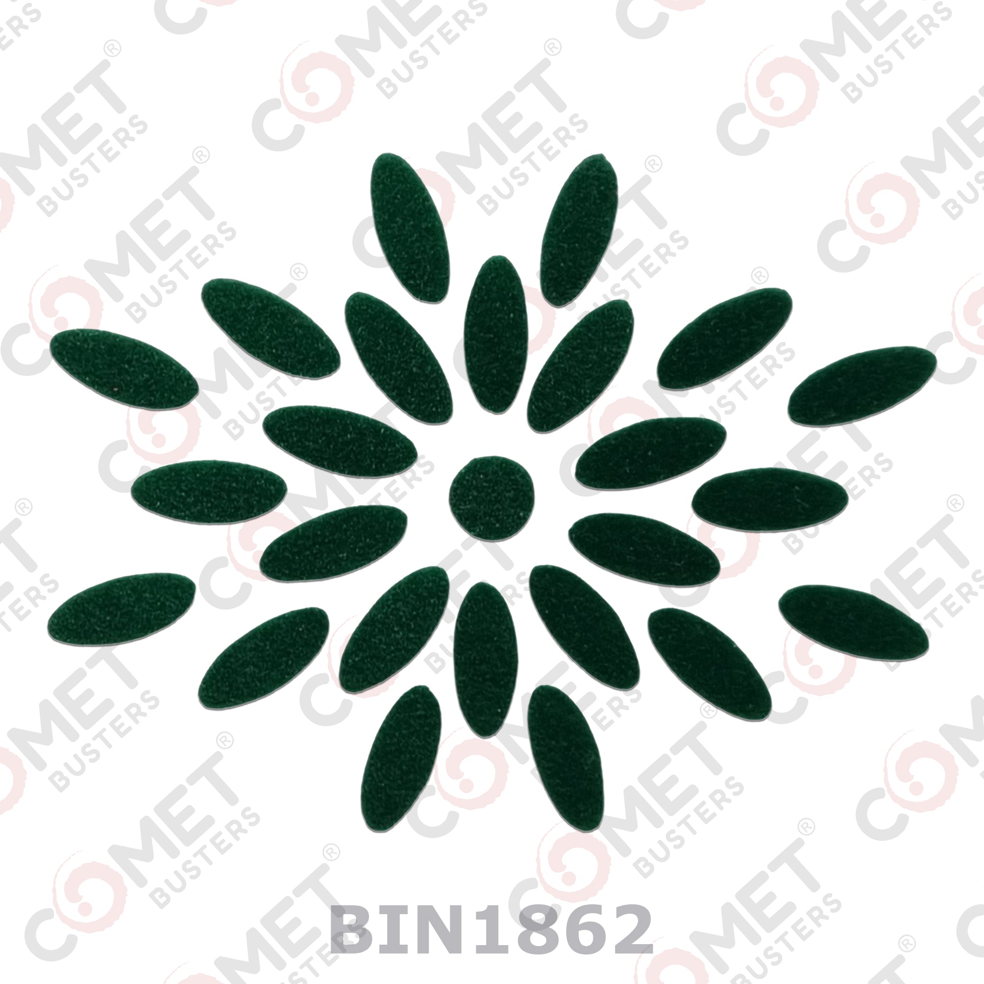 Comet Busters® Green Oval– Velvet – Handcrafted, Reusable & Skin-Friendly Bindis for Casual Wear (9mm) – Forehead Bindi Stickers for Women & Girls – BIN1862