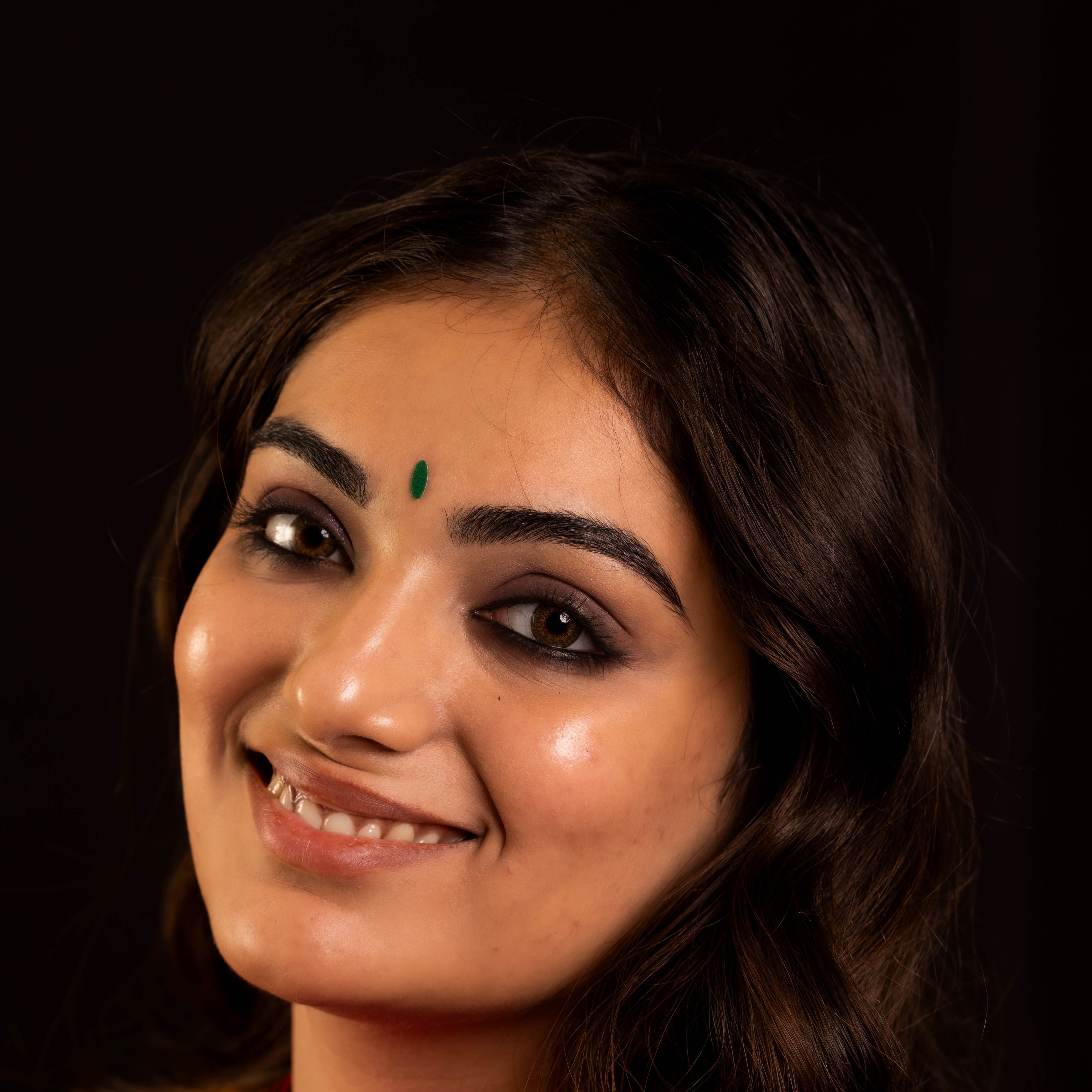 • To apply, gently remove the bindi from its backing and place it between the eyebrows.