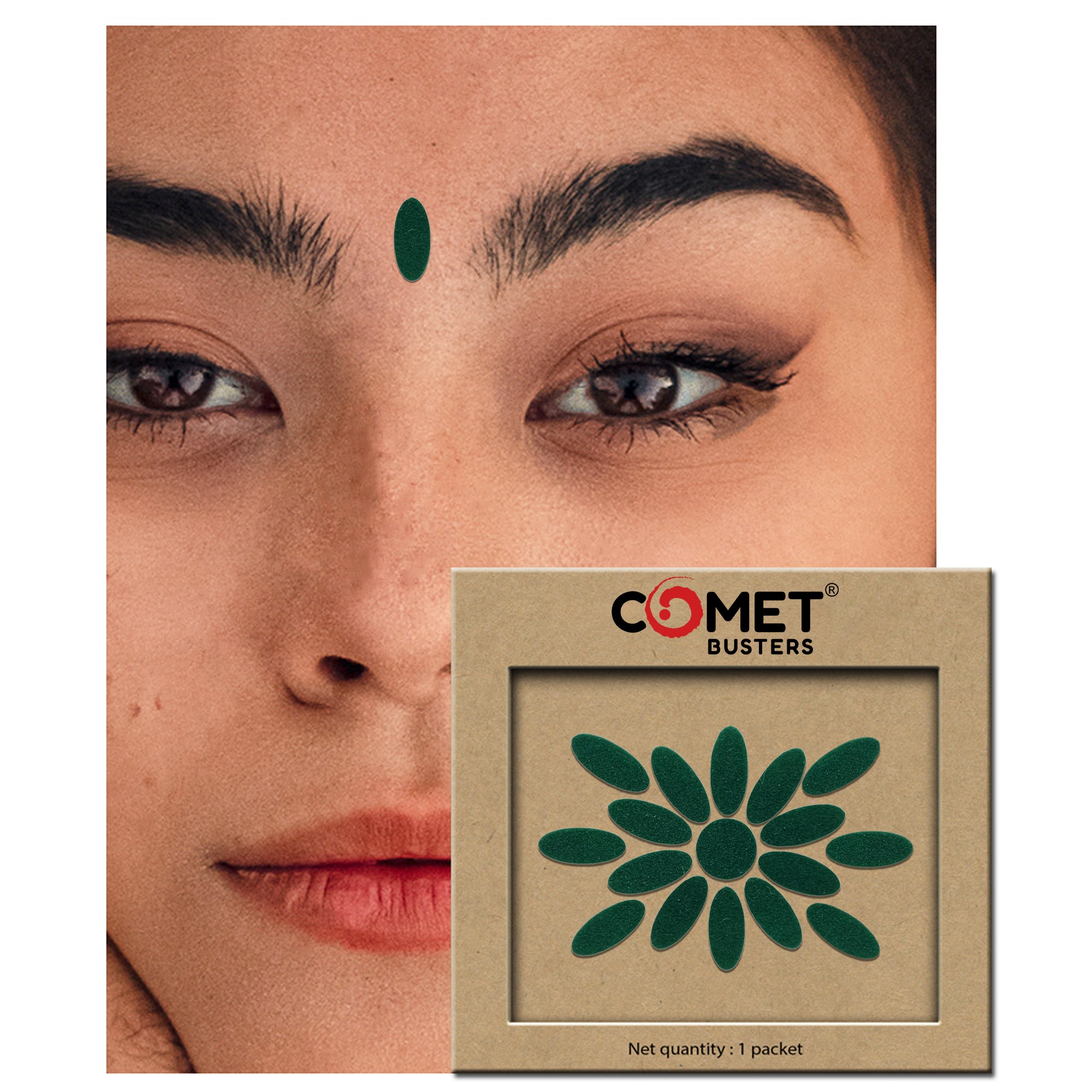 Comet Busters® Green Oval– Velvet – Handcrafted, Reusable & Skin-Friendly Bindis for Casual Wear (13mm) – Forehead Bindi Stickers for Women & Girls – BIN1880