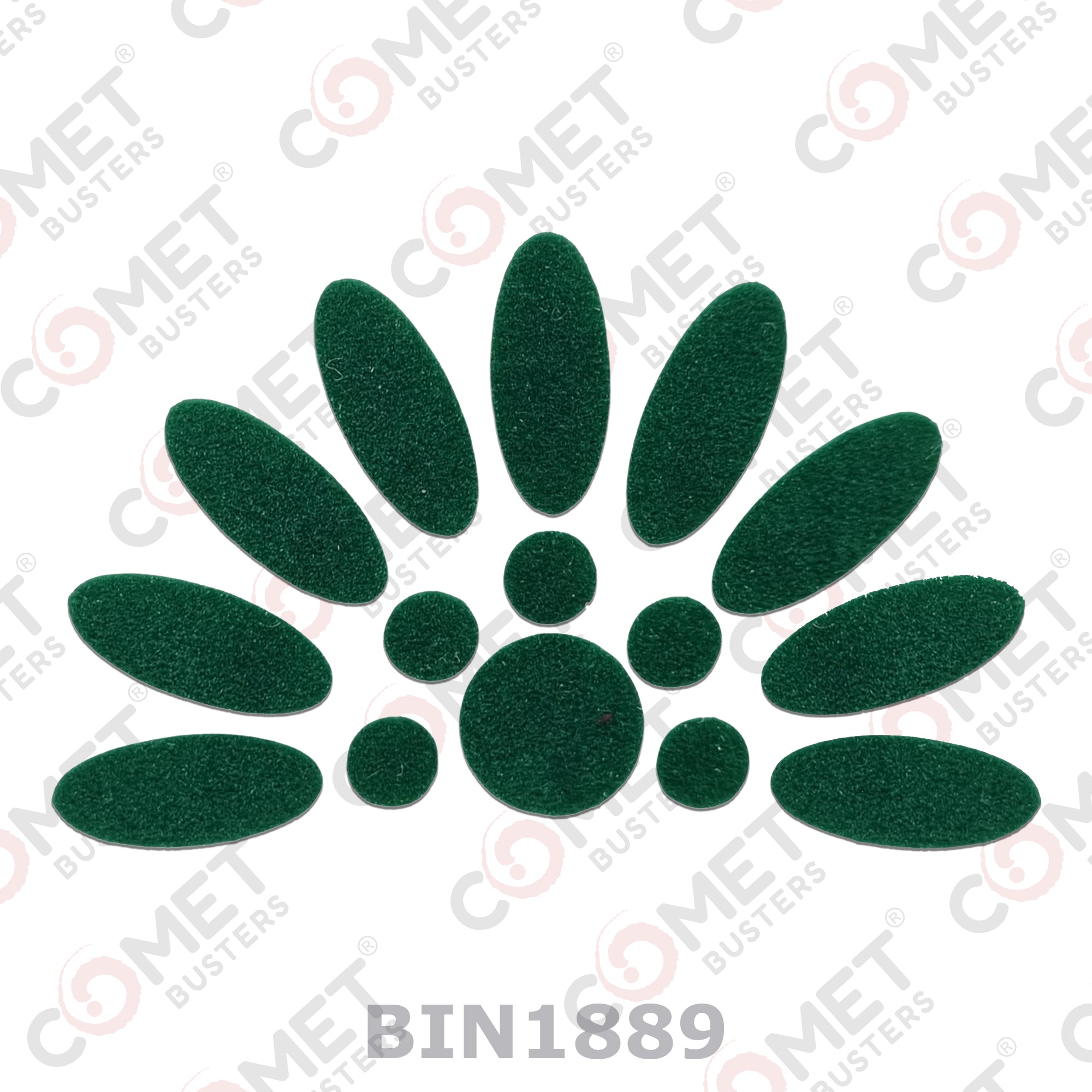 Comet Busters® Green Oval, Round – Velvet – Handcrafted, Reusable & Skin-Friendly Bindis for Casual Wear (15mm) – Forehead Bindi Stickers for Women & Girls – BIN1889