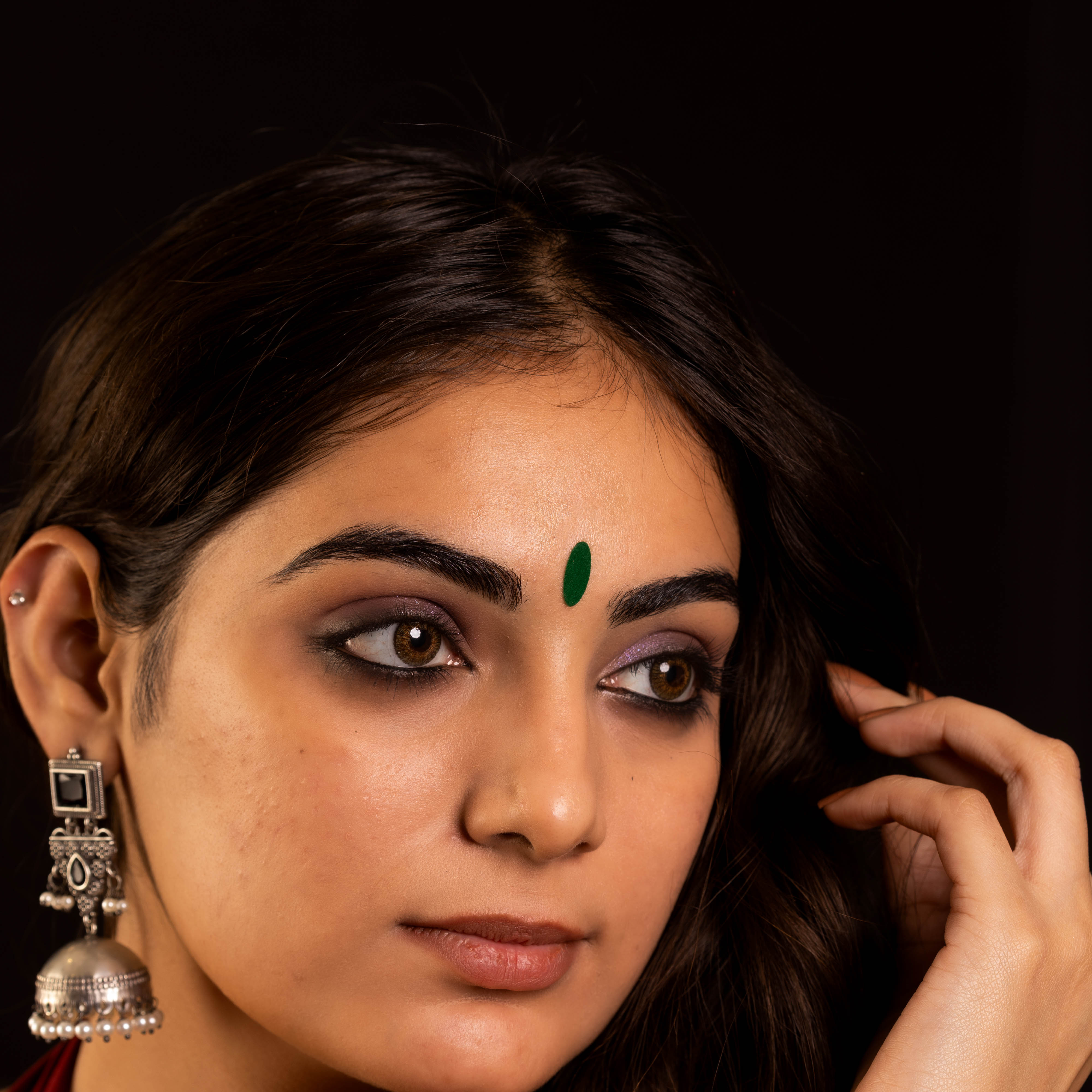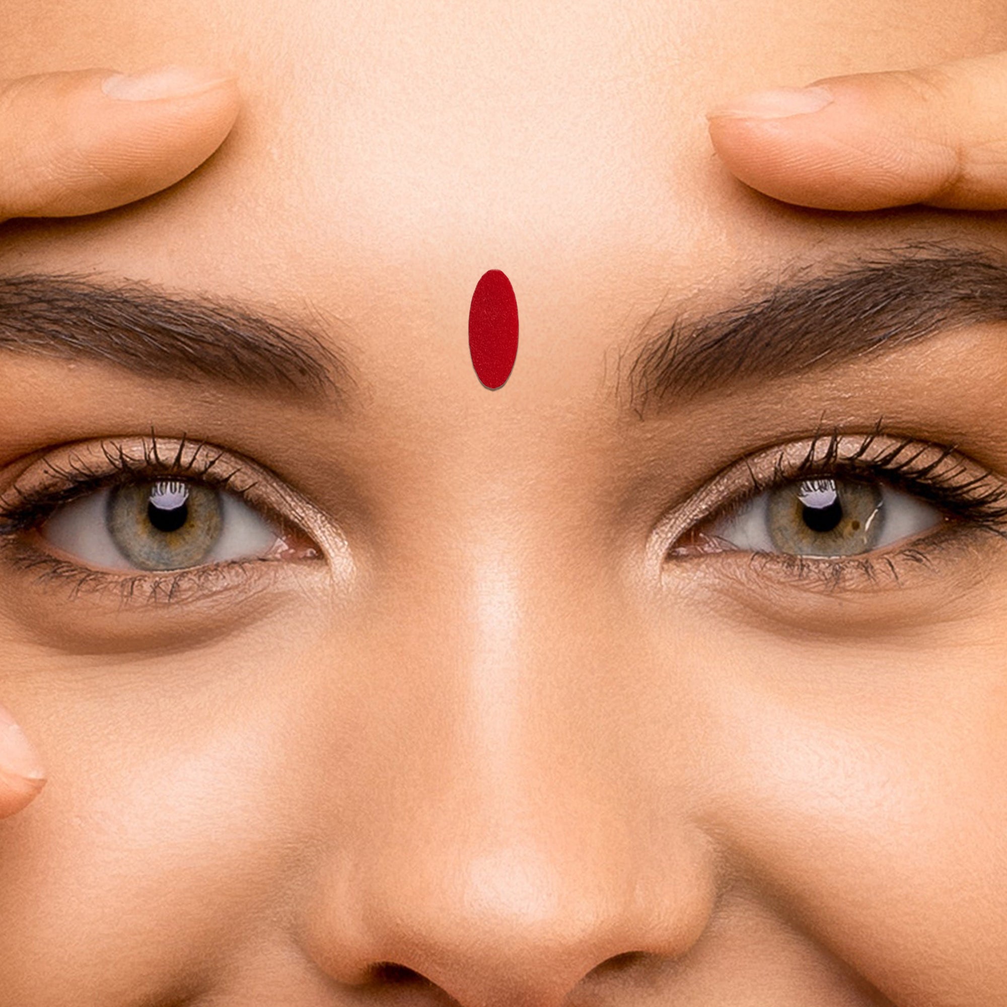 • To apply, gently remove the bindi from its backing and place it between the eyebrows.