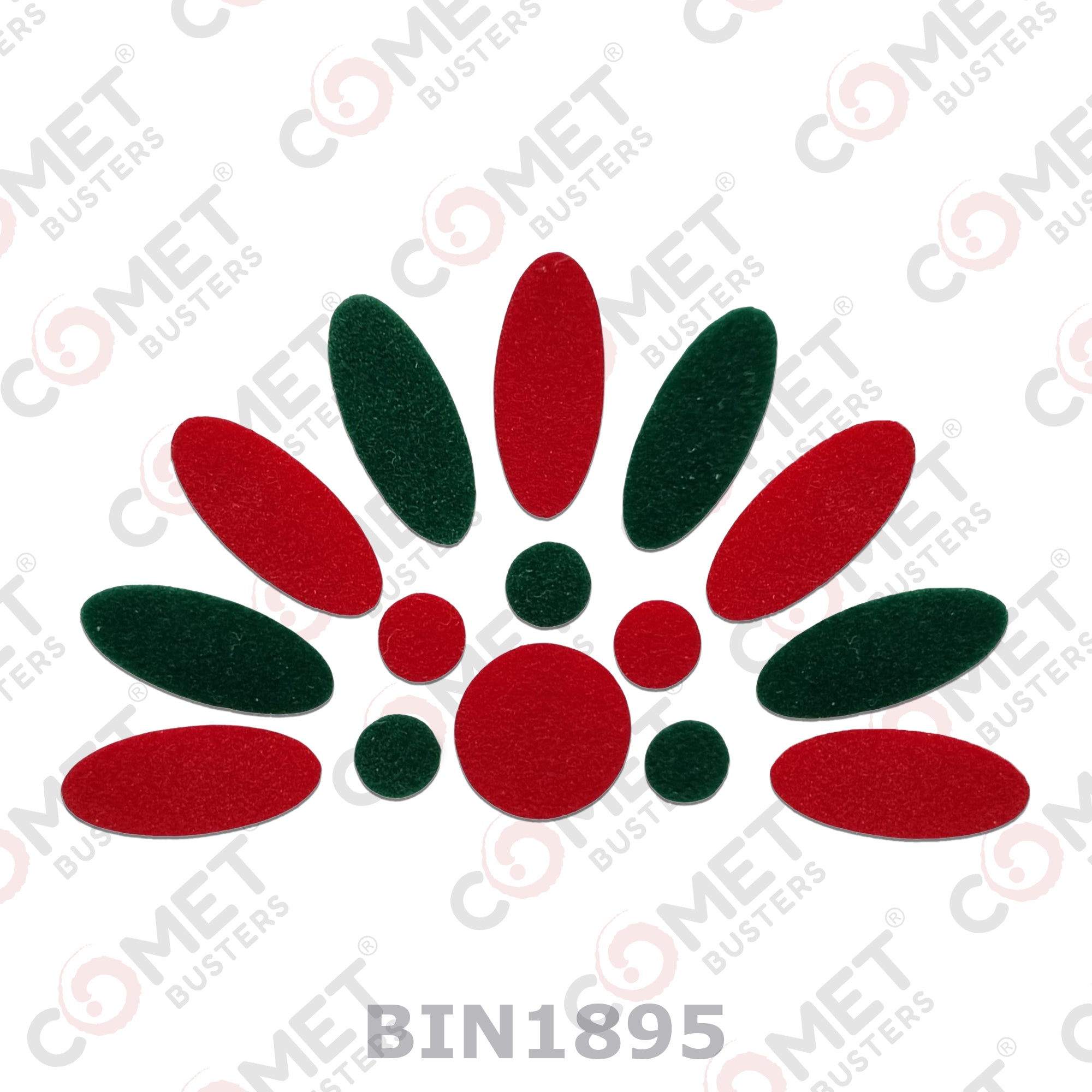 Comet Busters® Red, Green, Multicolor Oval, Round – Velvet – Handcrafted, Reusable & Skin-Friendly Bindis for Casual Wear (15mm) – Forehead Bindi Stickers for Women & Girls – BIN1895