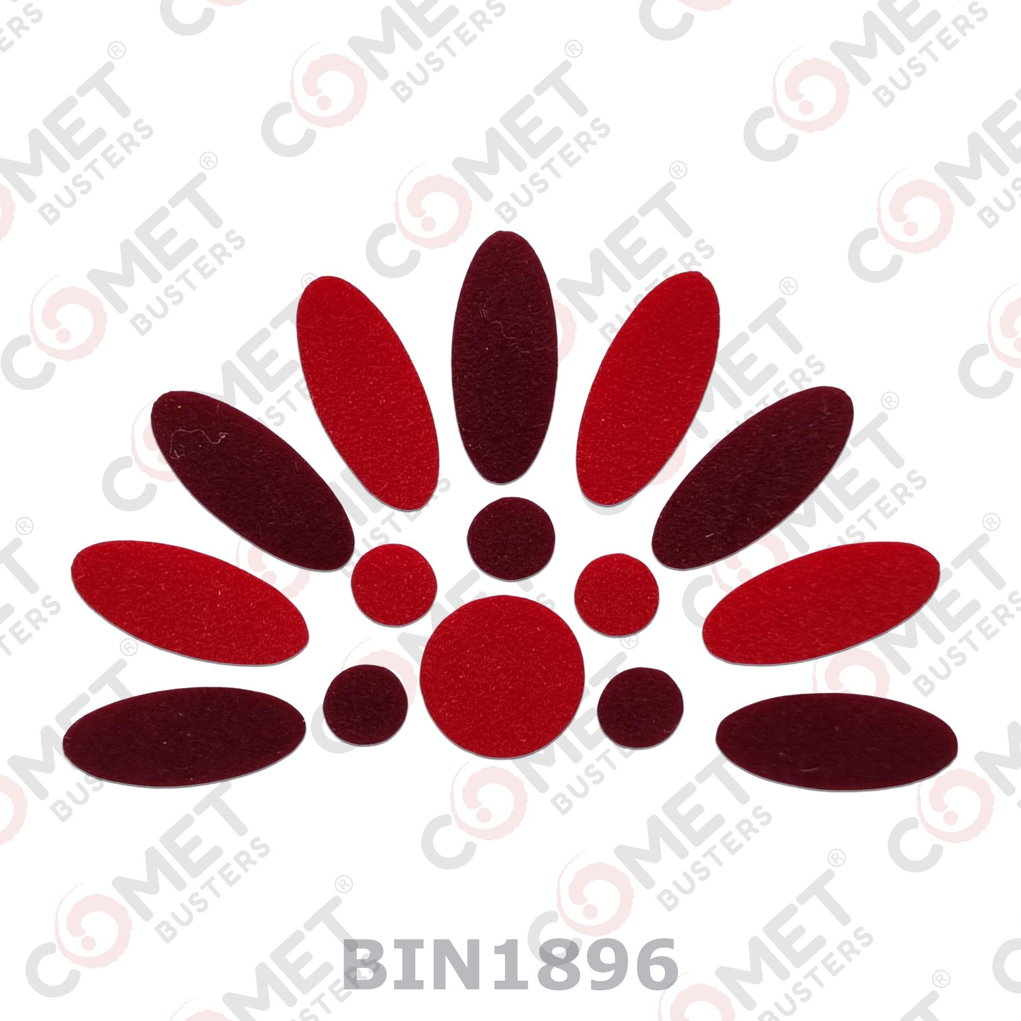 Comet Busters® Red, Maroon, Multicolor Oval, Round – Velvet – Handcrafted, Reusable & Skin-Friendly Bindis for Casual Wear (15mm) – Forehead Bindi Stickers for Women & Girls – BIN1896