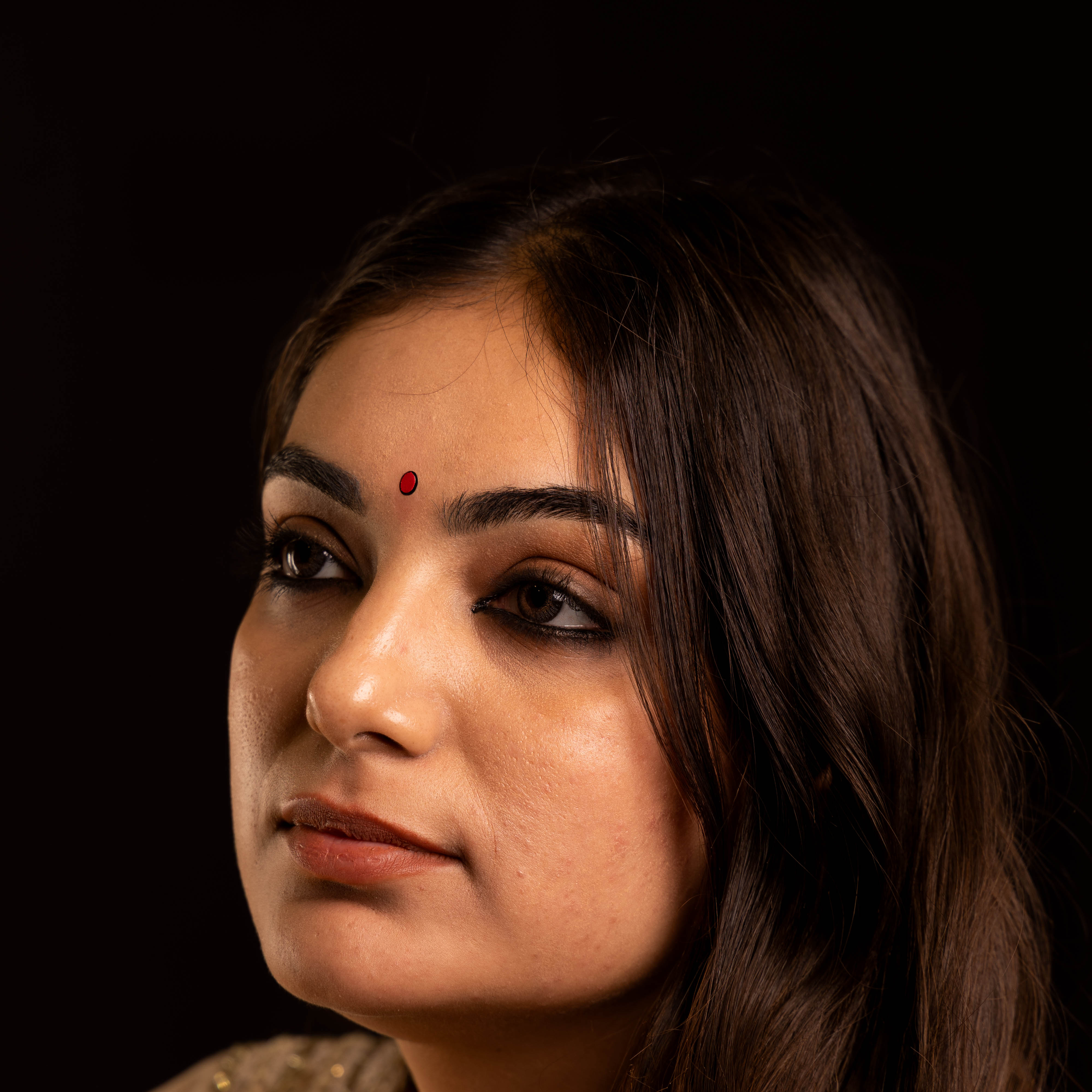 • To apply, gently remove the bindi from its backing and place it between the eyebrows.
