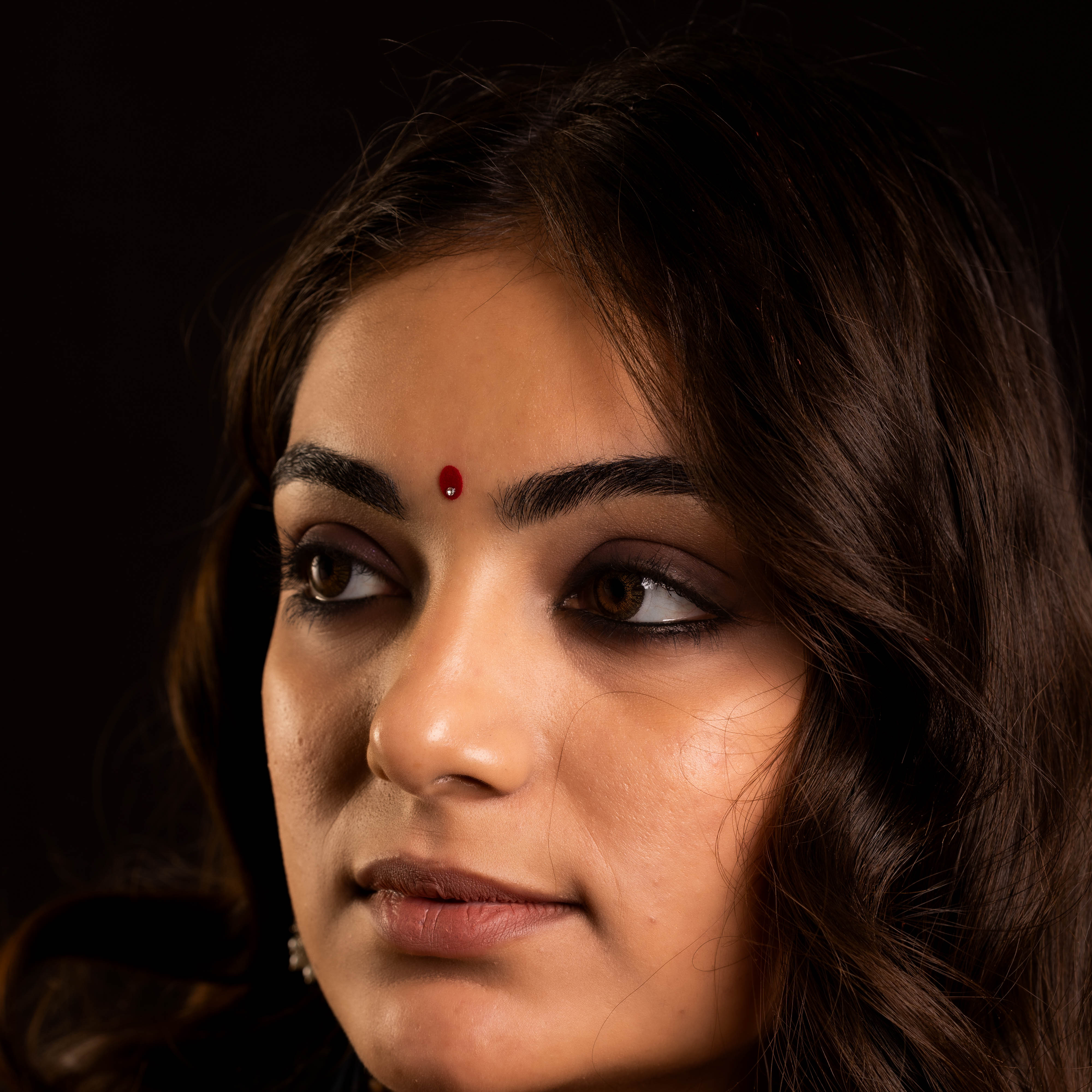 • To apply, gently remove the bindi from its backing and place it between the eyebrows.