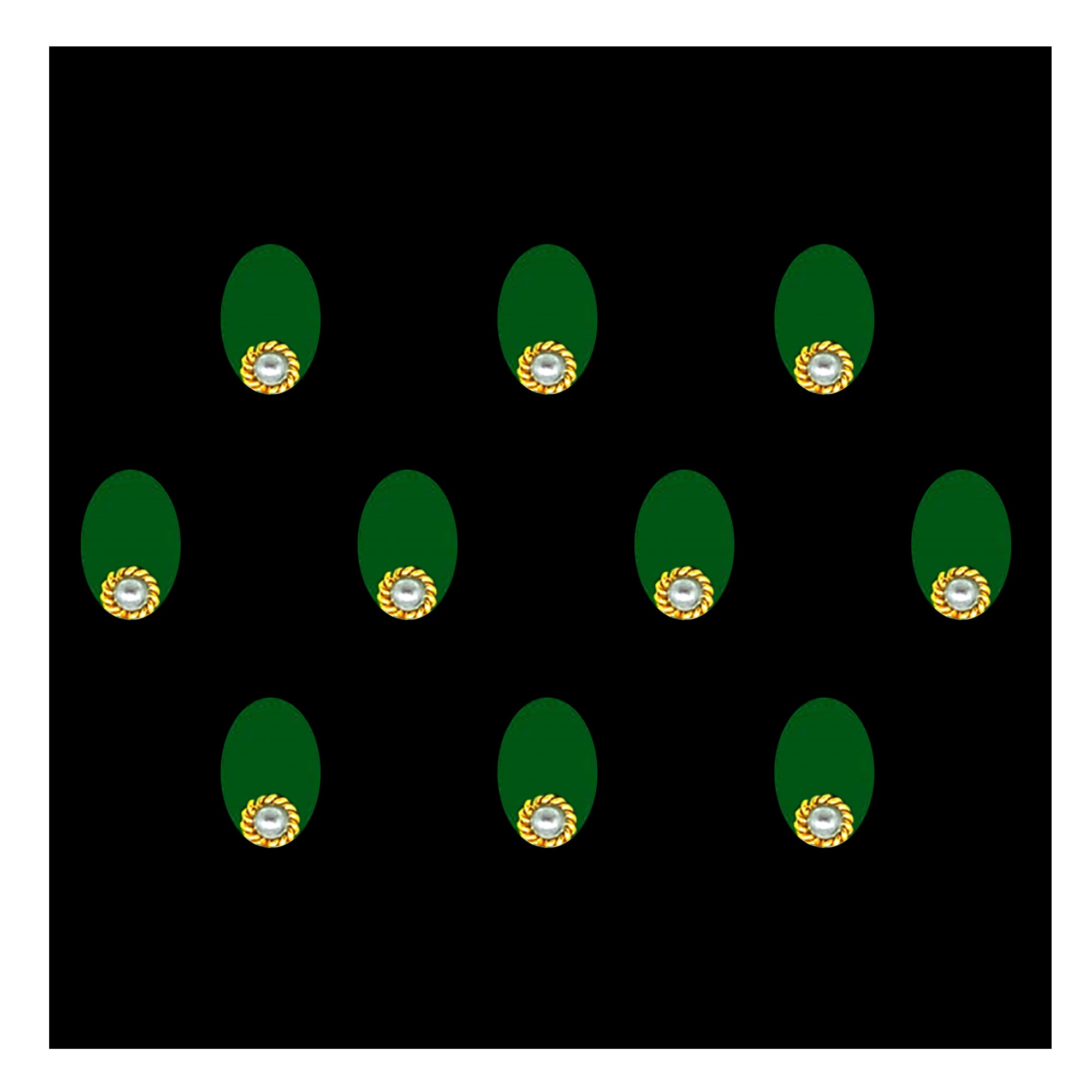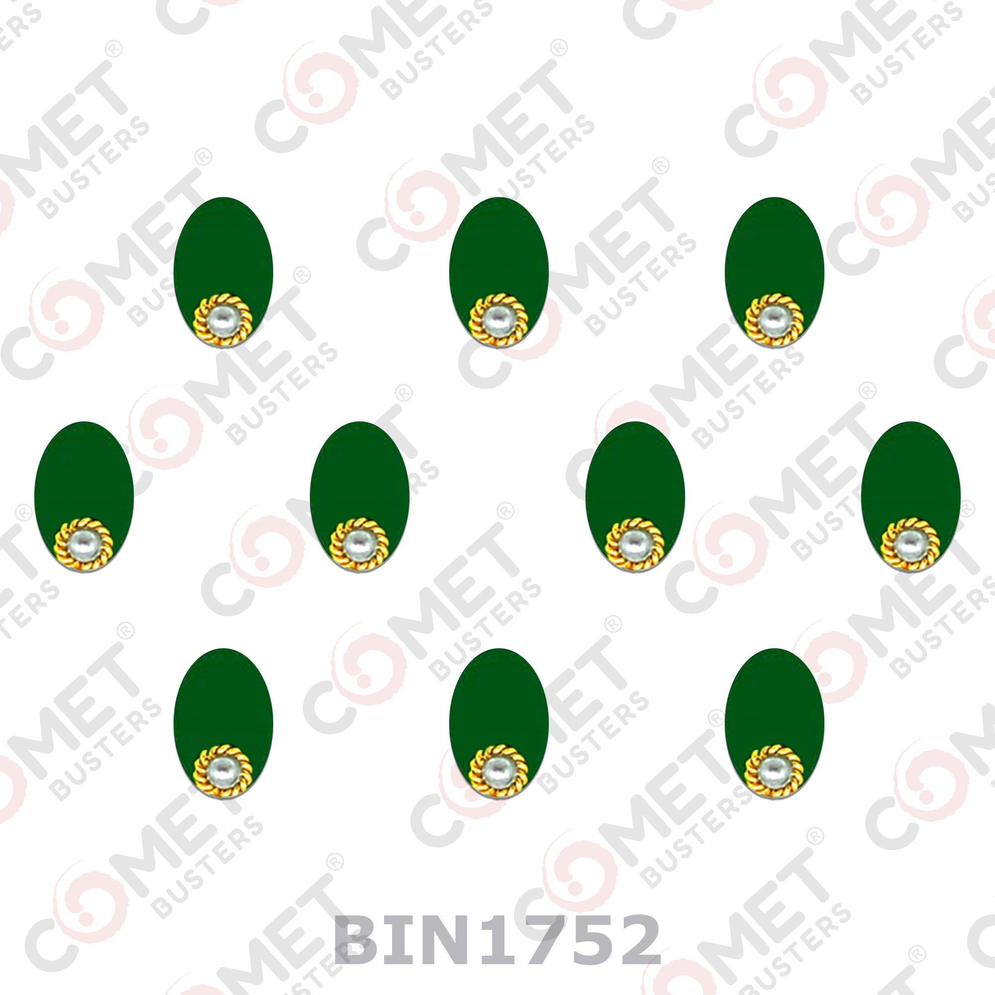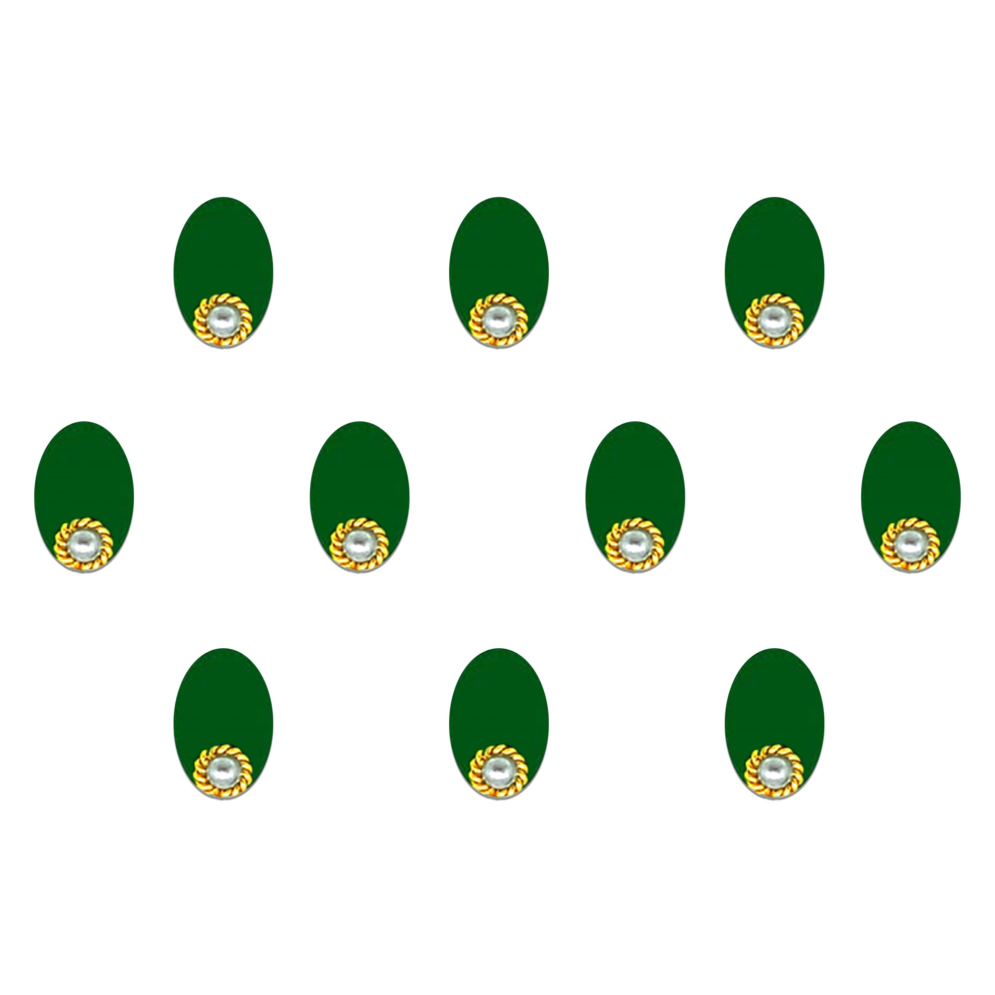 Comet Busters® Green Oval – Velvet, Pearl – Handcrafted, Reusable & Skin-Friendly Bindis for Casual Wear (10mm) – Forehead Bindi Stickers for Women & Girls – BIN1752