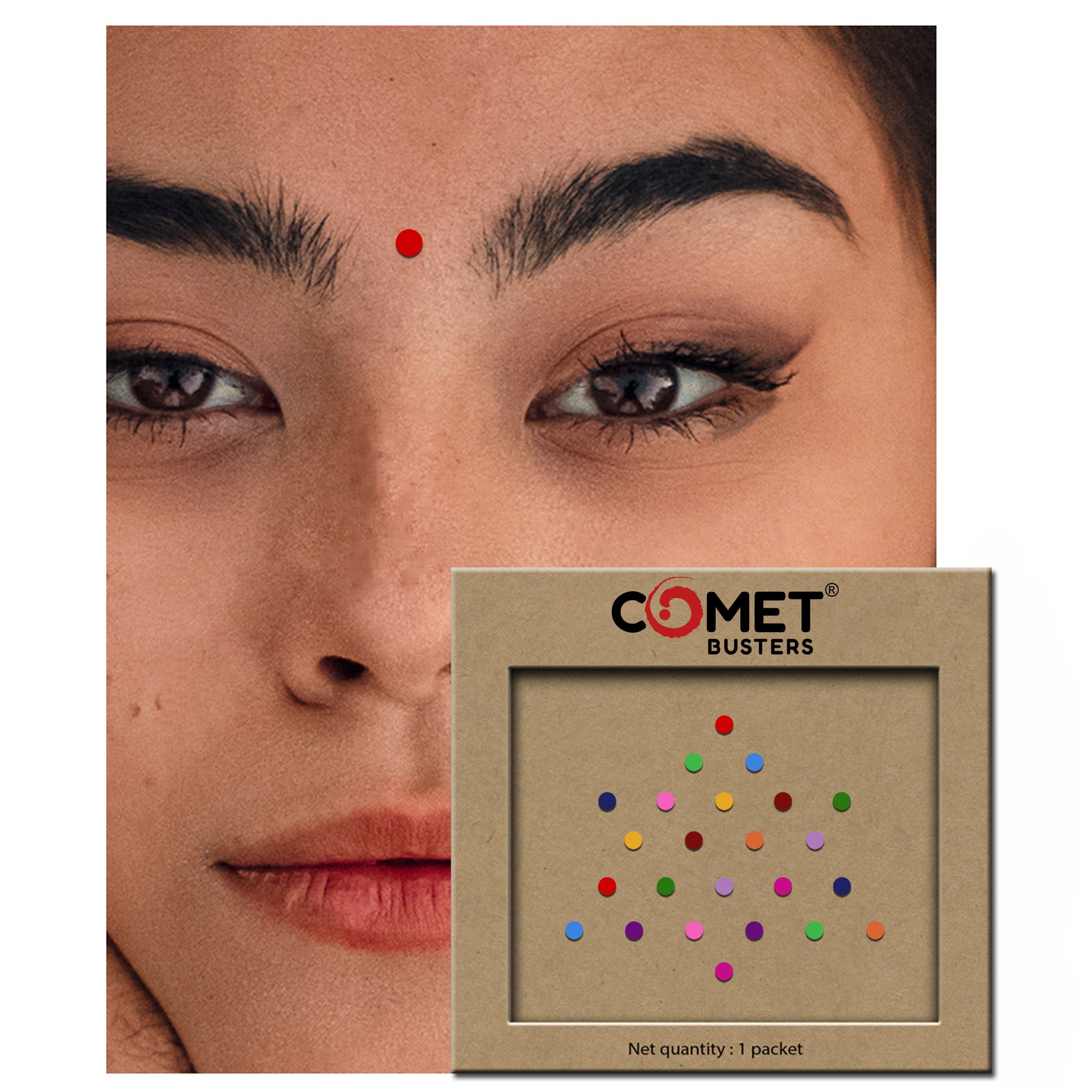Comet Busters® Multicolor Round – Velvet – Handcrafted, Reusable & Skin-Friendly Bindis for Casual Wear (3mm) – Forehead Bindi Stickers for Women & Girls – BIN935