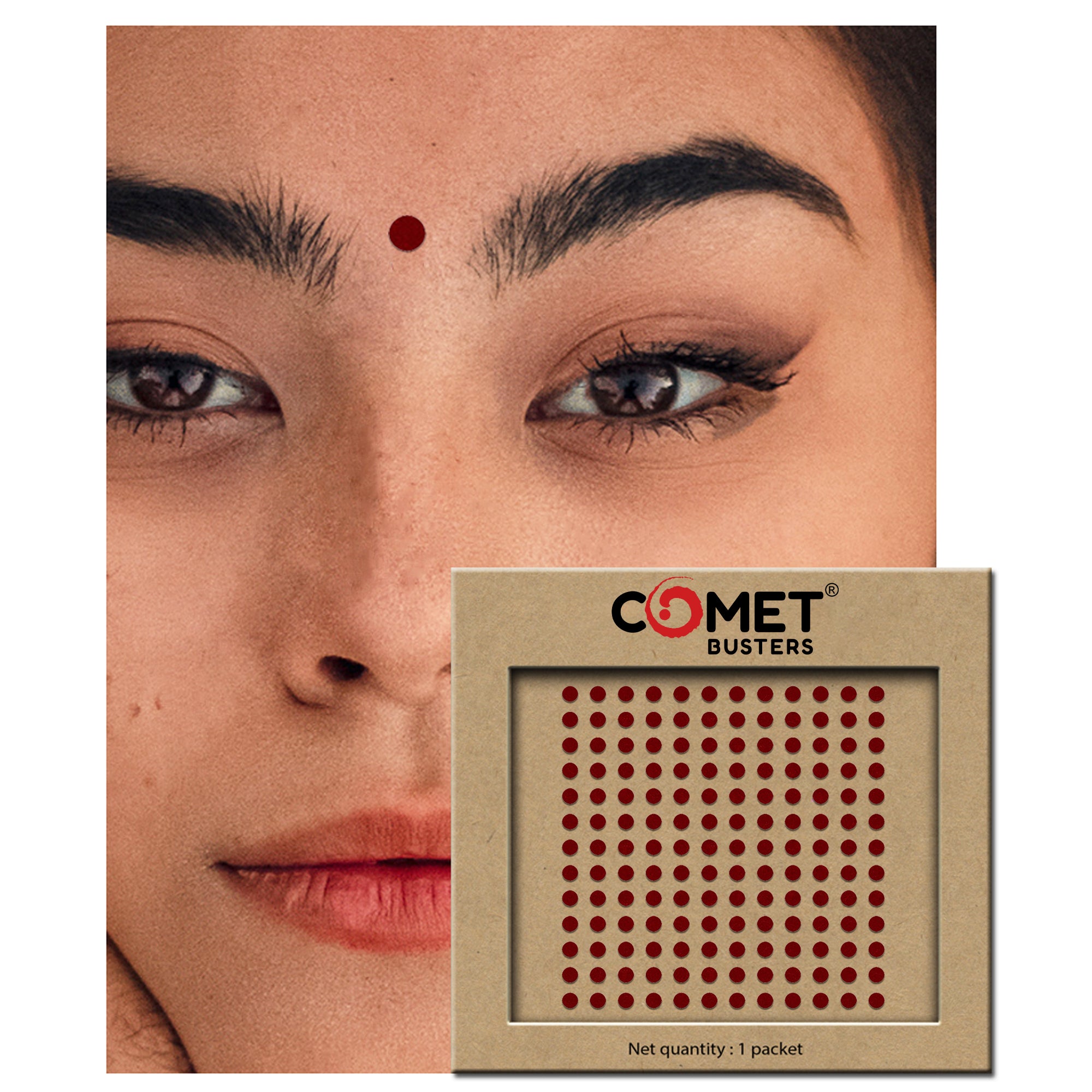 Comet Busters® Maroon Round – Velvet – Handcrafted, Reusable & Skin-Friendly Bindis for Casual Wear (4mm) – Forehead Bindi Stickers for Women & Girls – BIN1720