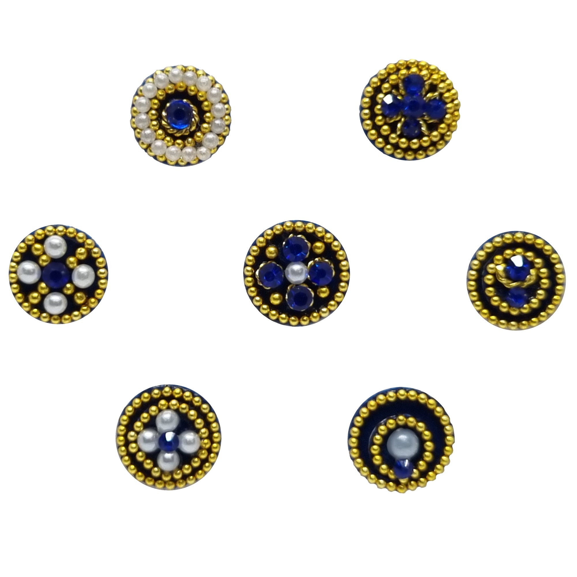 Comet Busters® Blue, Gold, Multicolor Round – Velvet, Diamond, Pearl, Shiny Beads – Handcrafted, Reusable & Skin-Friendly Bindis for Party Wear (8mm) – Forehead Bindi Stickers for Women & Girls – BIN1847