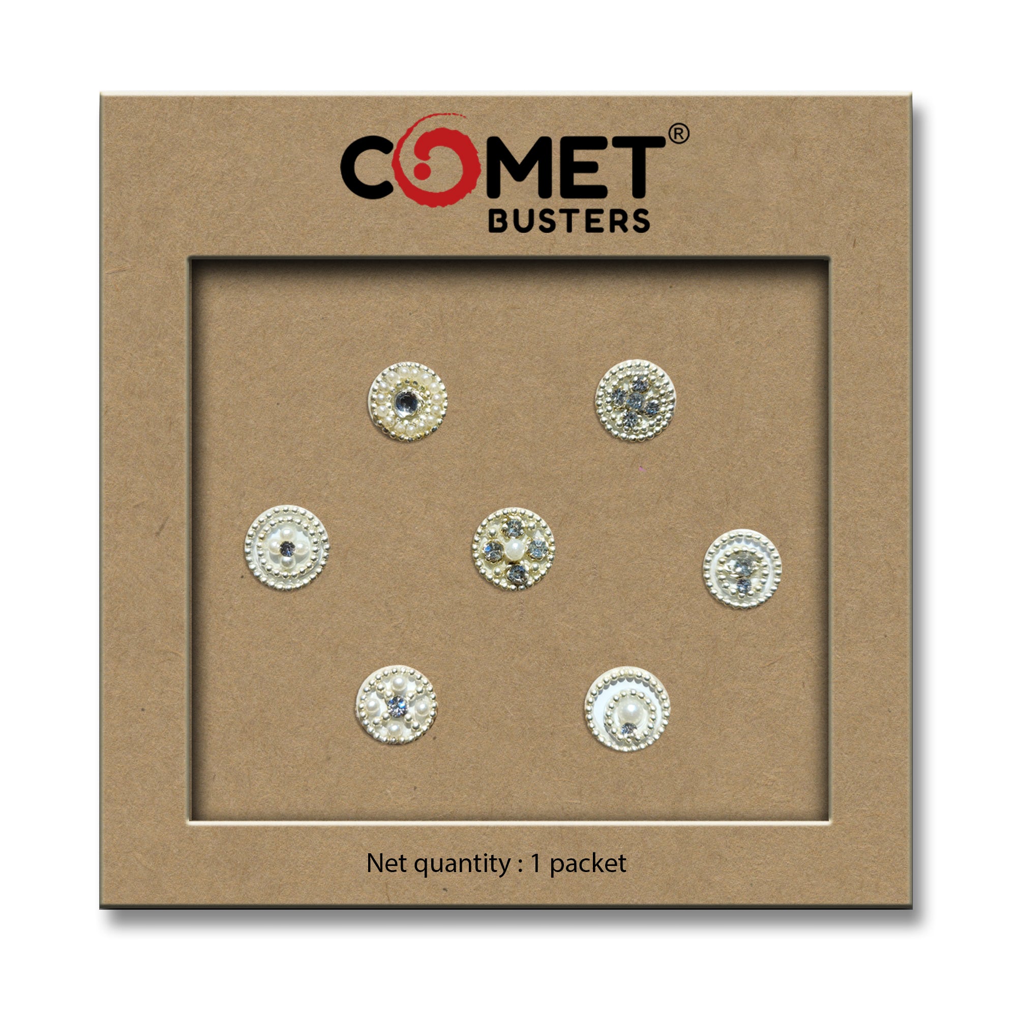 Comet Busters® Silver, White, Multicolor Round – Velvet, Diamond, Pearl, Shiny Beads – Handcrafted, Reusable & Skin-Friendly Bindis for Party Wear (8mm) – Forehead Bindi Stickers for Women & Girls – BIN1846