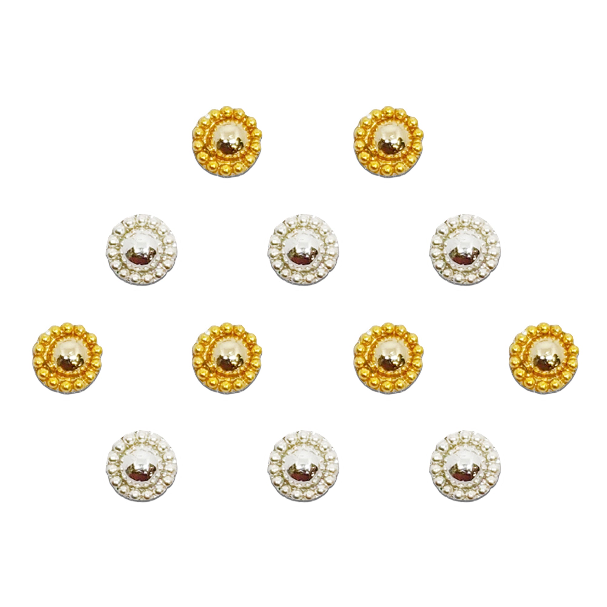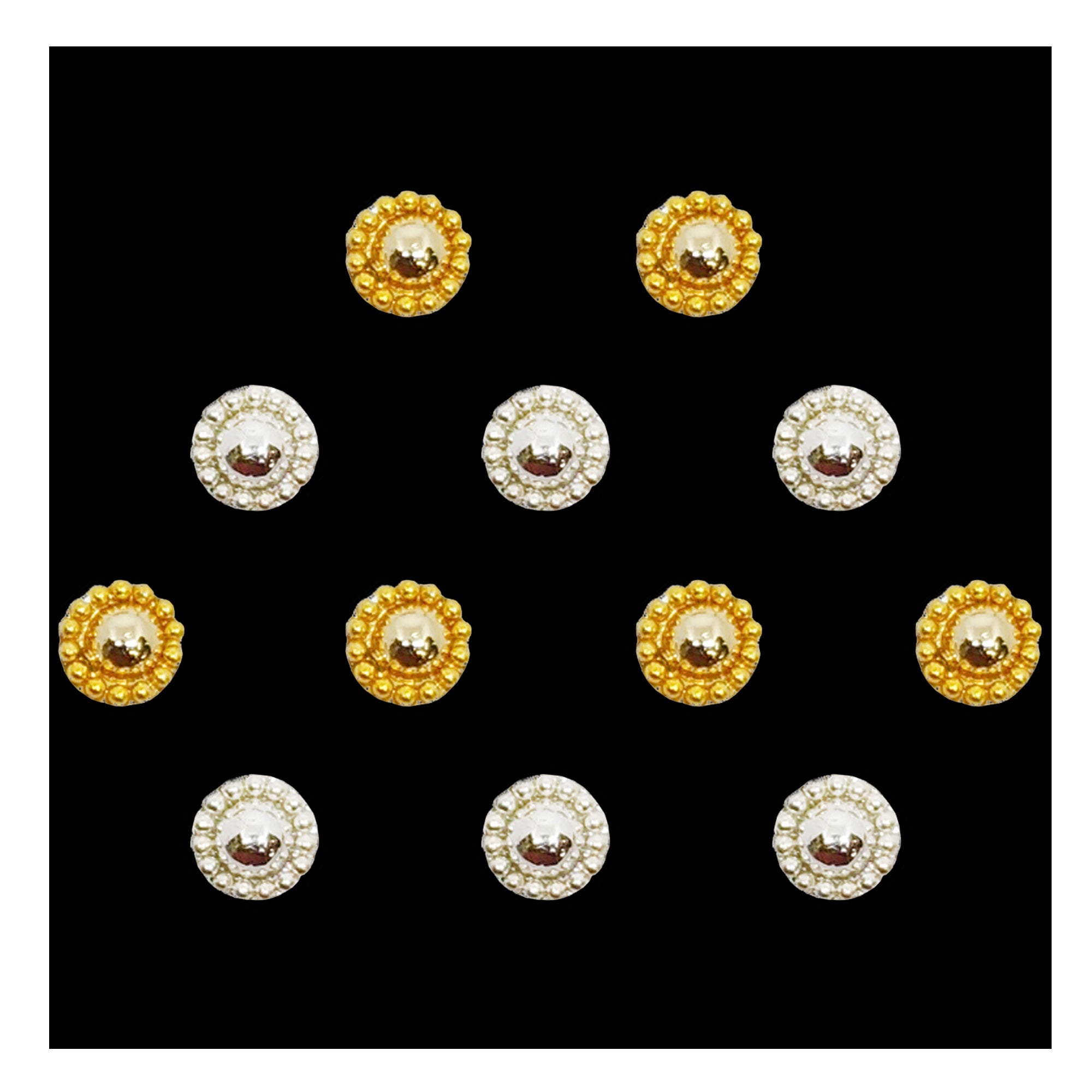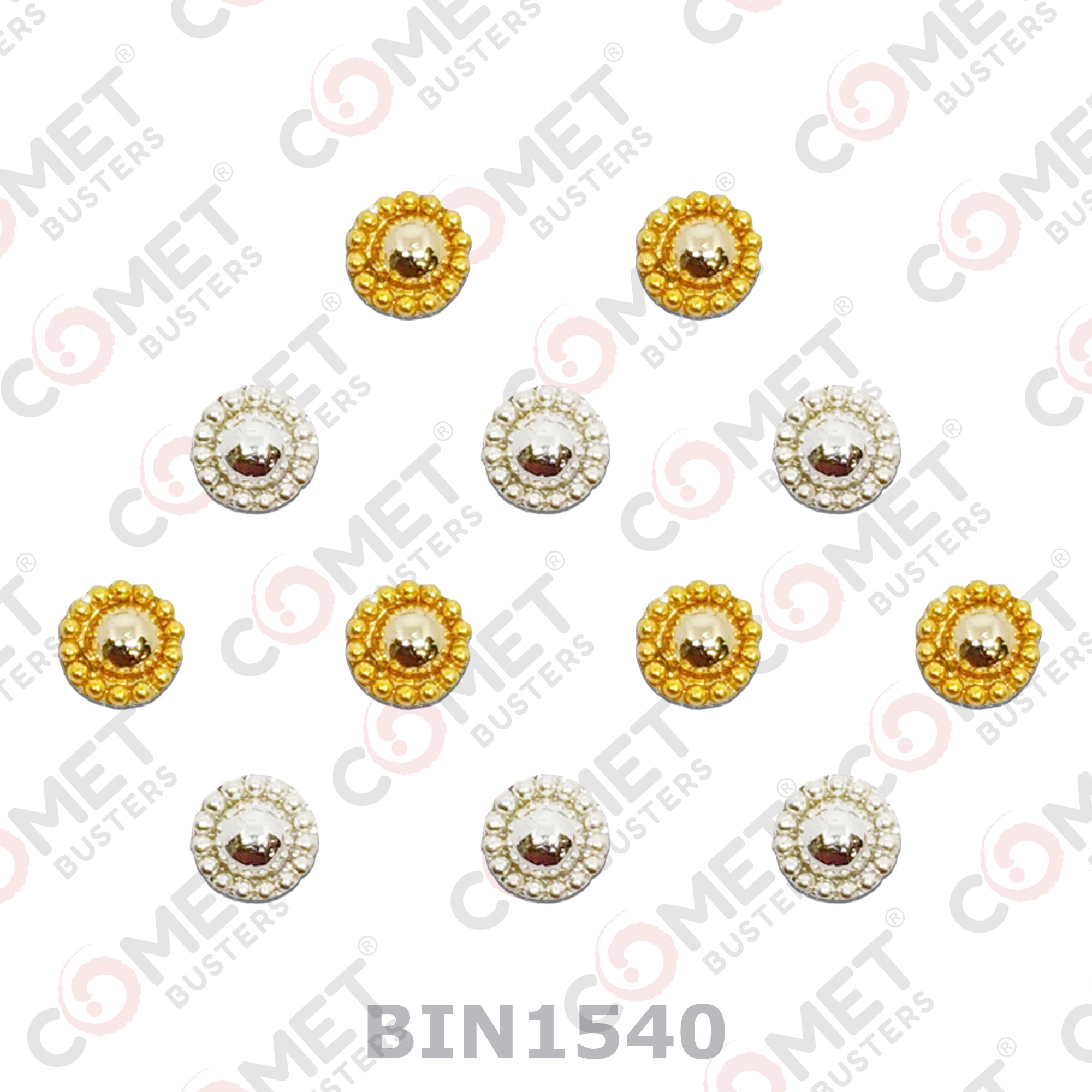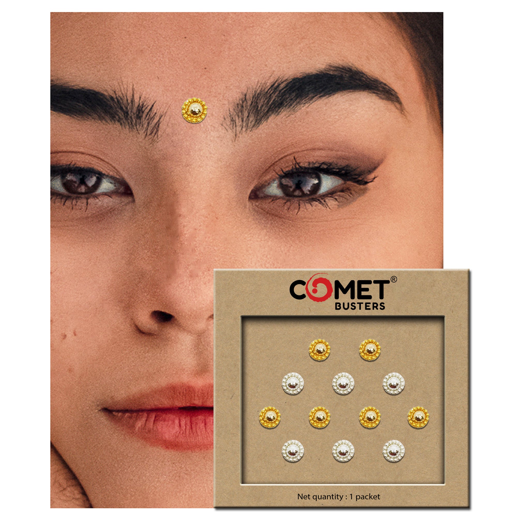 Comet Busters® Silver, Gold, Multicolor Round – Shiny Beads – Handcrafted, Reusable & Skin-Friendly Bindis for Casual Wear (4mm) – Forehead Bindi Stickers for Women & Girls – BIN1540