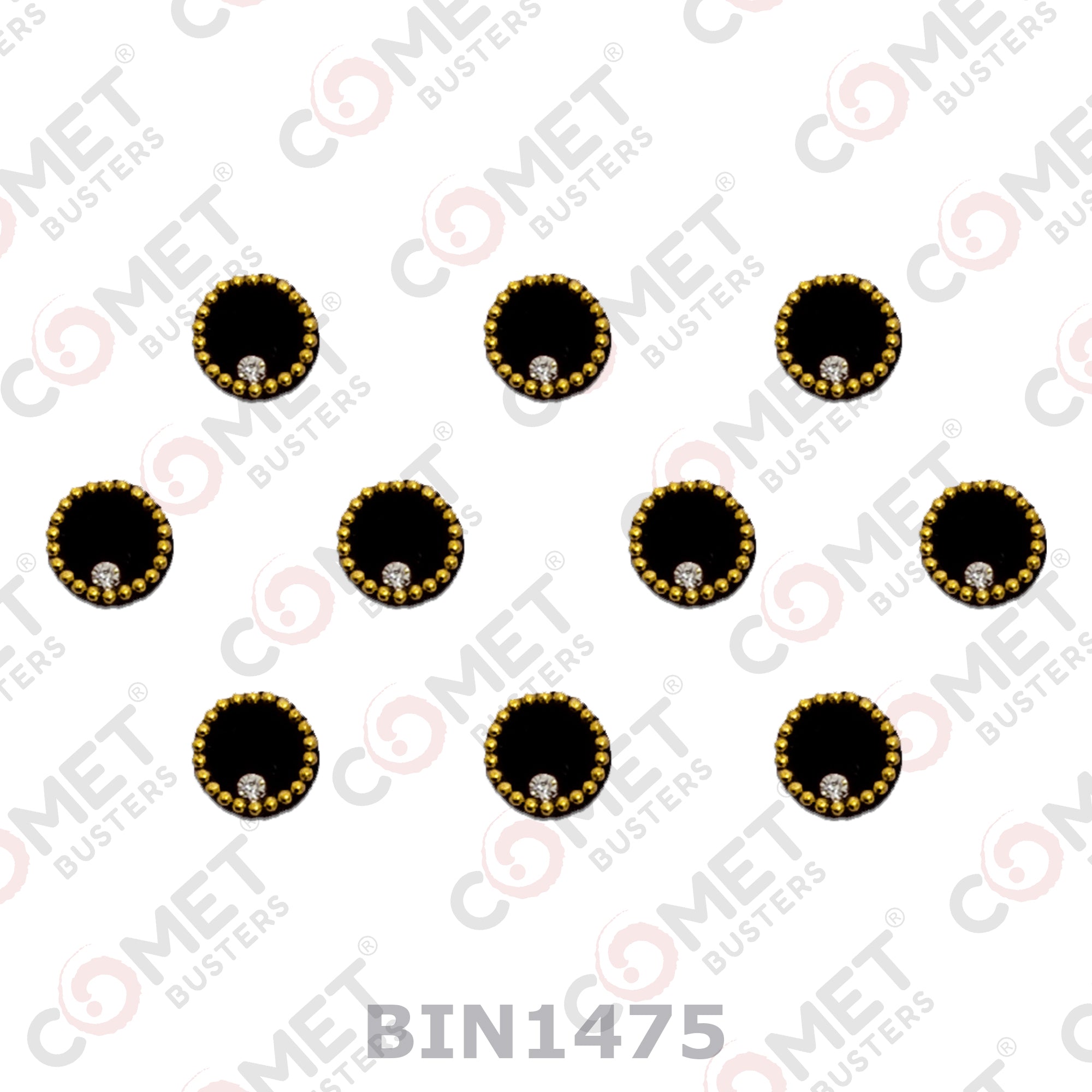 Comet Busters® Black Round – Diamond, Velvet, Shiny Beads – Handcrafted, Reusable & Skin-Friendly Bindis for Party Wear (9mm) – Forehead Bindi Stickers for Women & Girls – BIN1475