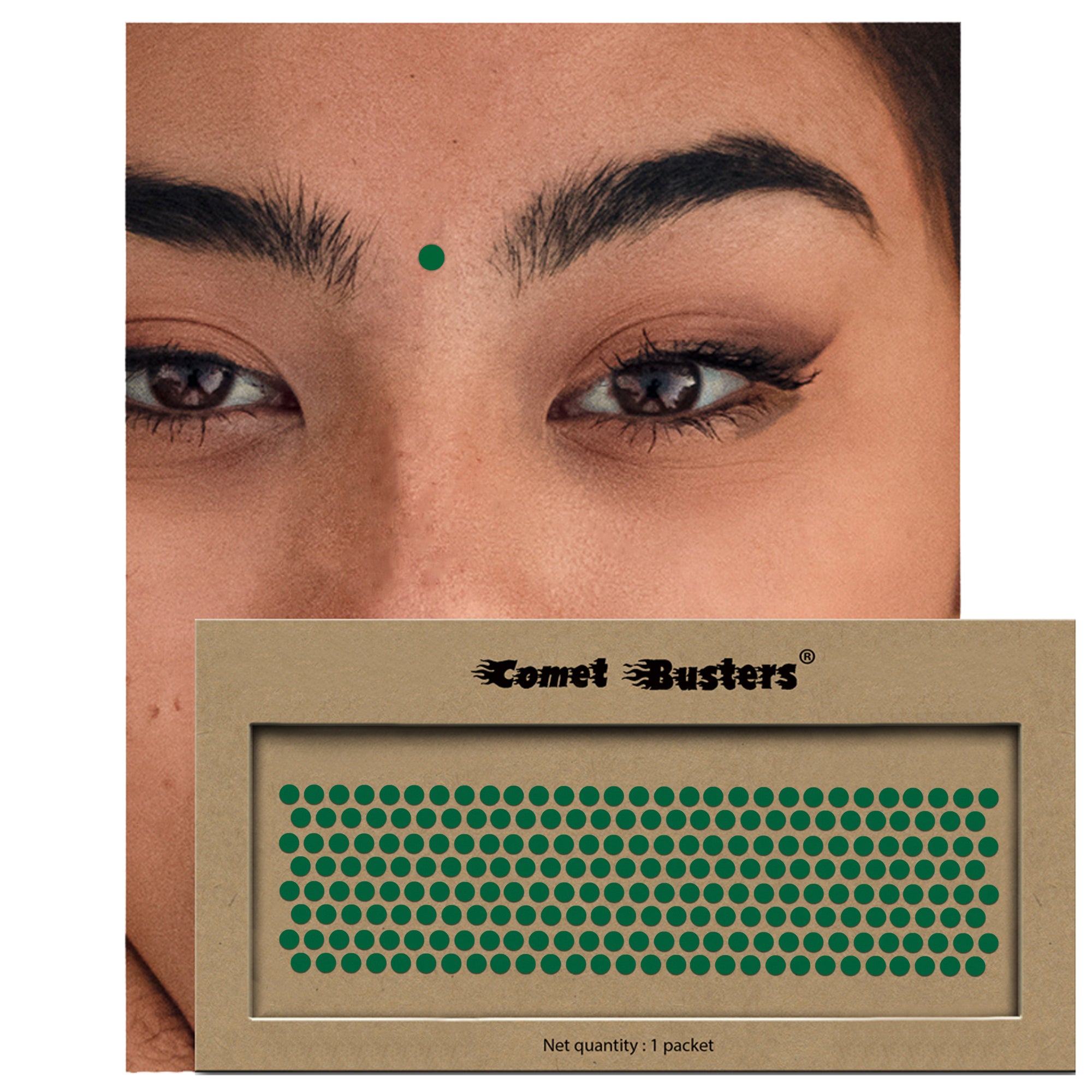 Comet Busters® Green Round – Velvet – Handcrafted, Reusable & Skin-Friendly Bindis for Casual Wear (4mm) – Forehead Bindi Stickers for Women & Girls – BIN2078