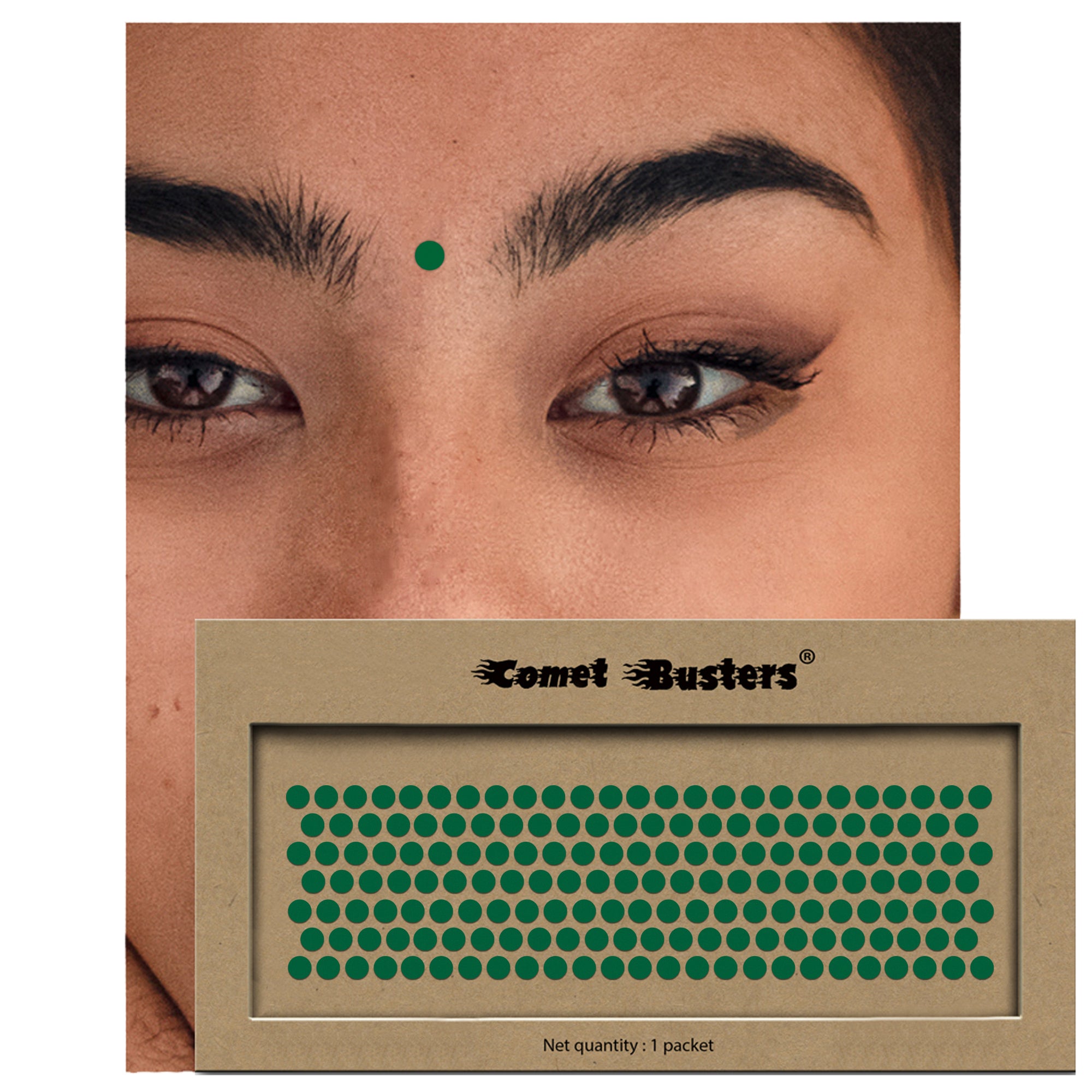Comet Busters® Green Round – Velvet – Handcrafted, Reusable & Skin-Friendly Bindis for Casual Wear (5mm) – Forehead Bindi Stickers for Women & Girls – BIN2090