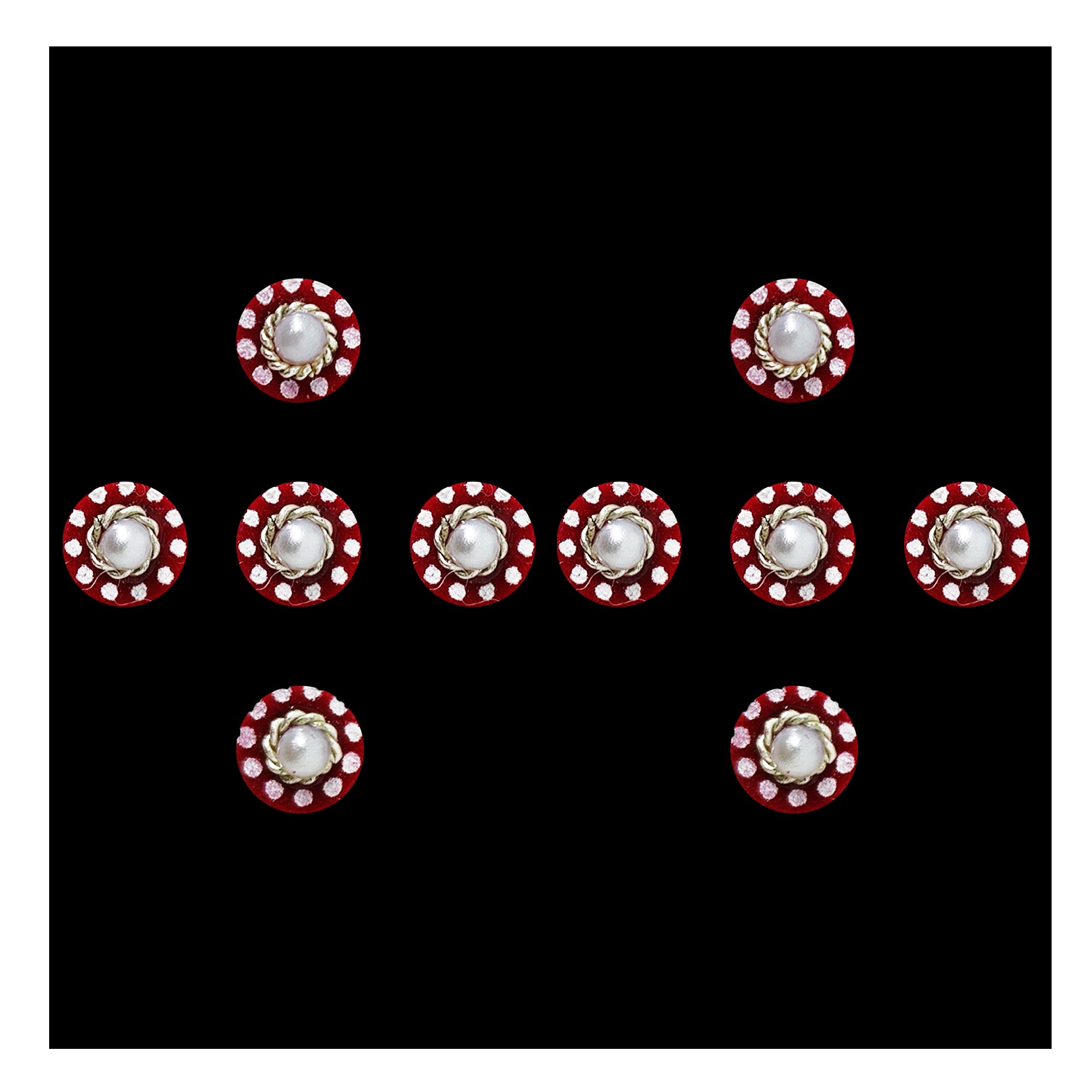 Comet Busters® Maroon Round – Pearl, Velvet – Handcrafted, Reusable & Skin-Friendly Bindis for Partywear Wear (8mm) – Forehead Bindi Stickers for Women & Girls – BIN525