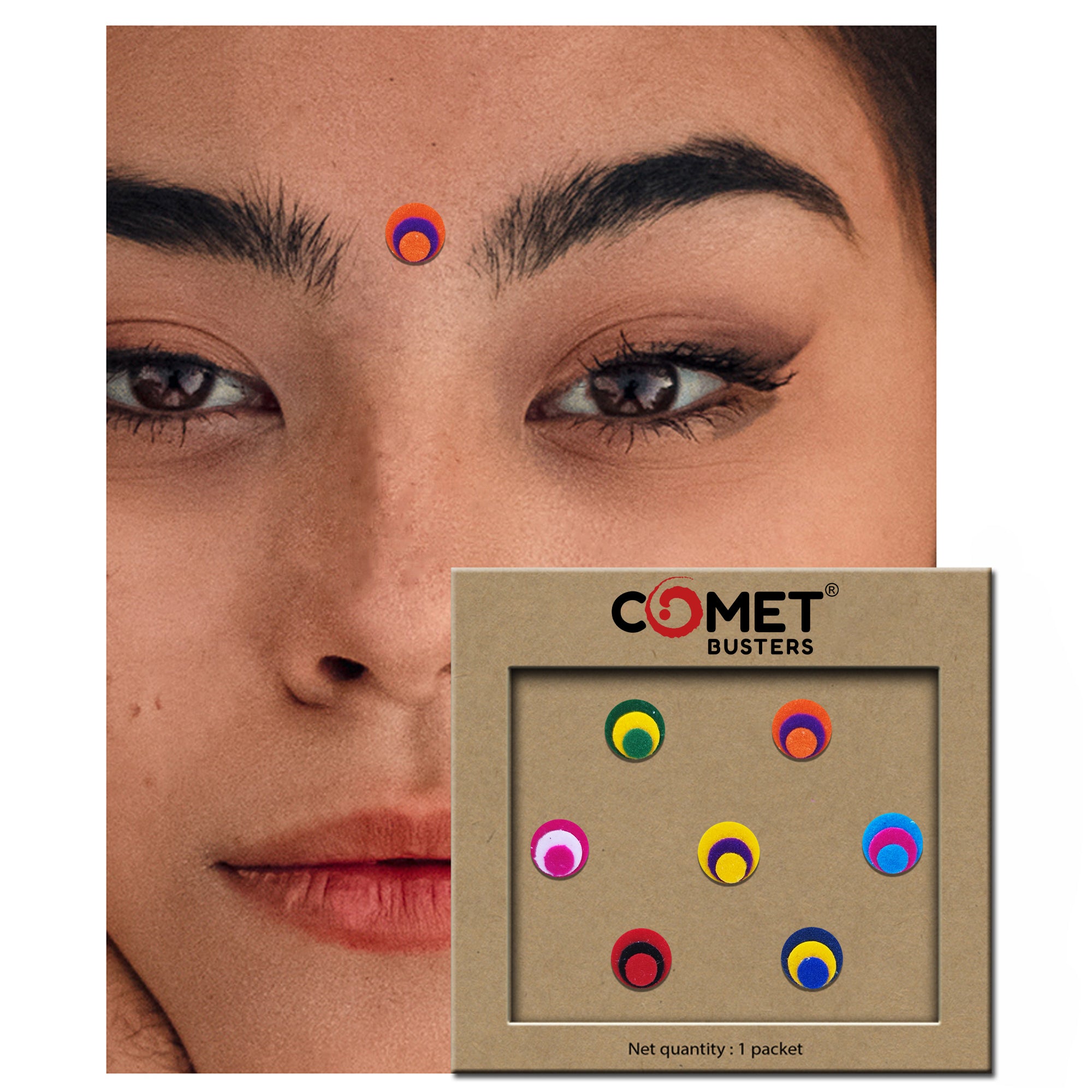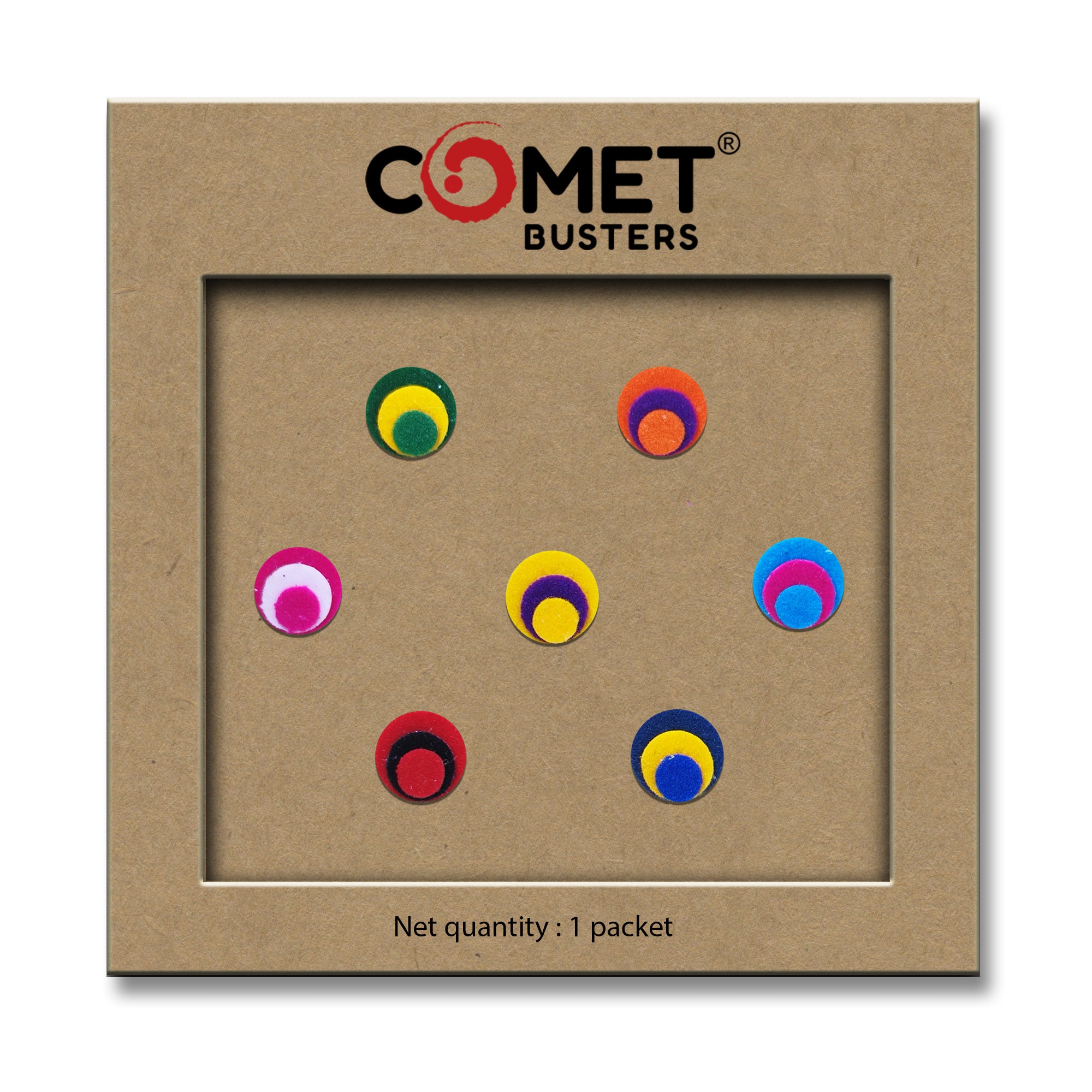 Comet Busters® Multicolor Round Classic Bindis – Handcrafted, Reusable, Skin-Safe Indian Forehead Stickers for Women