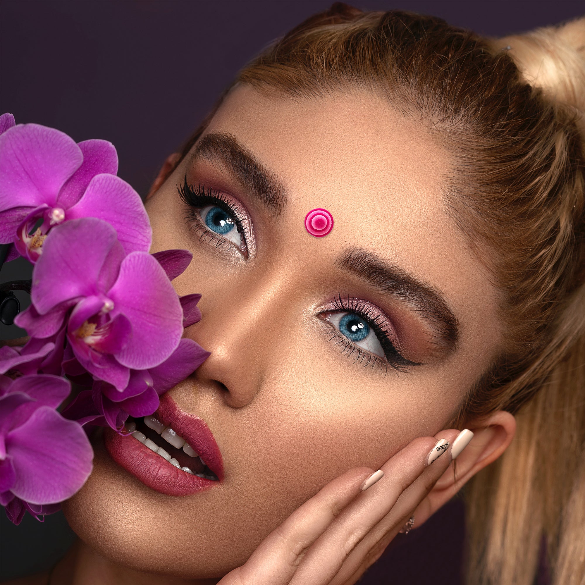 • To apply, gently remove the bindi from its backing and place it between the eyebrows.