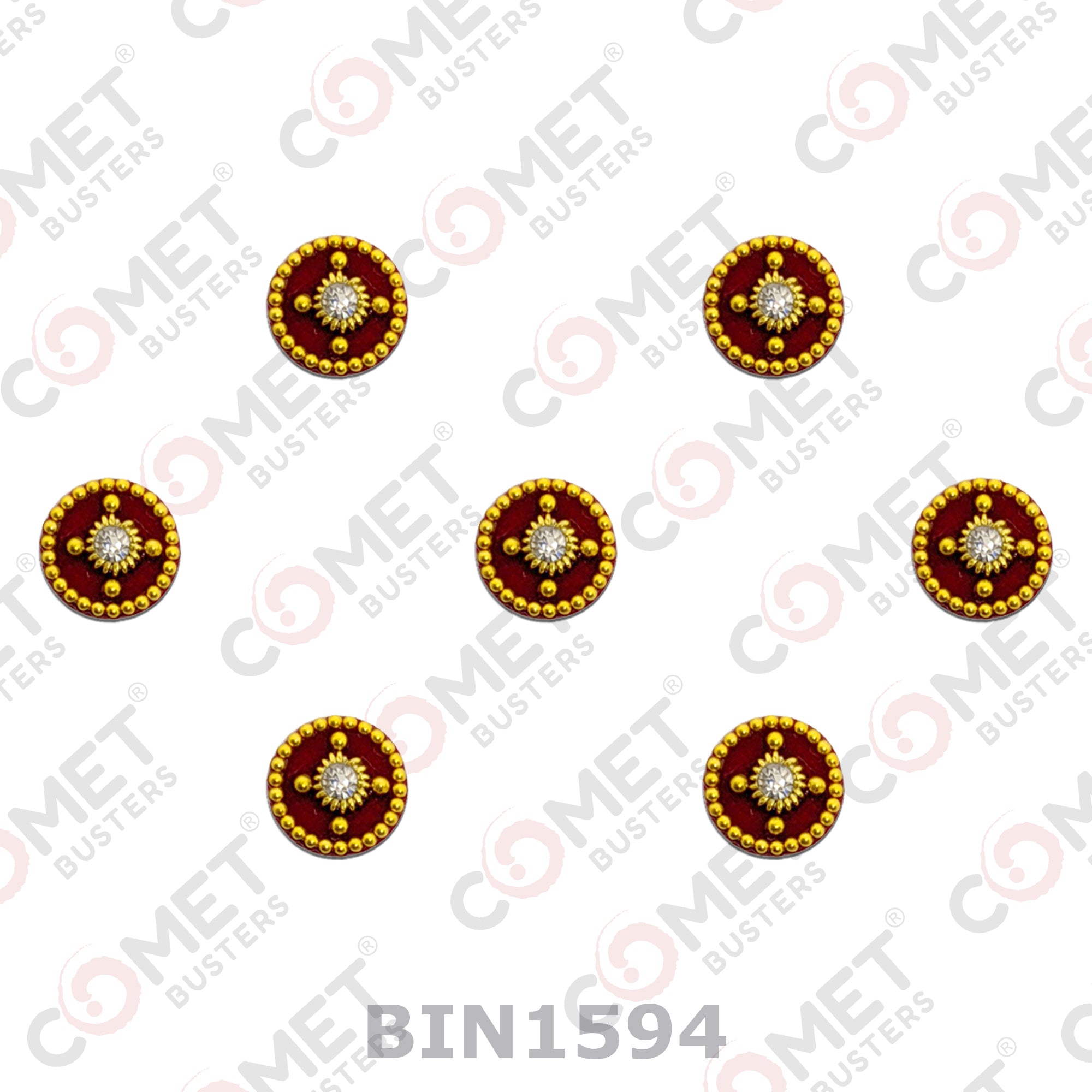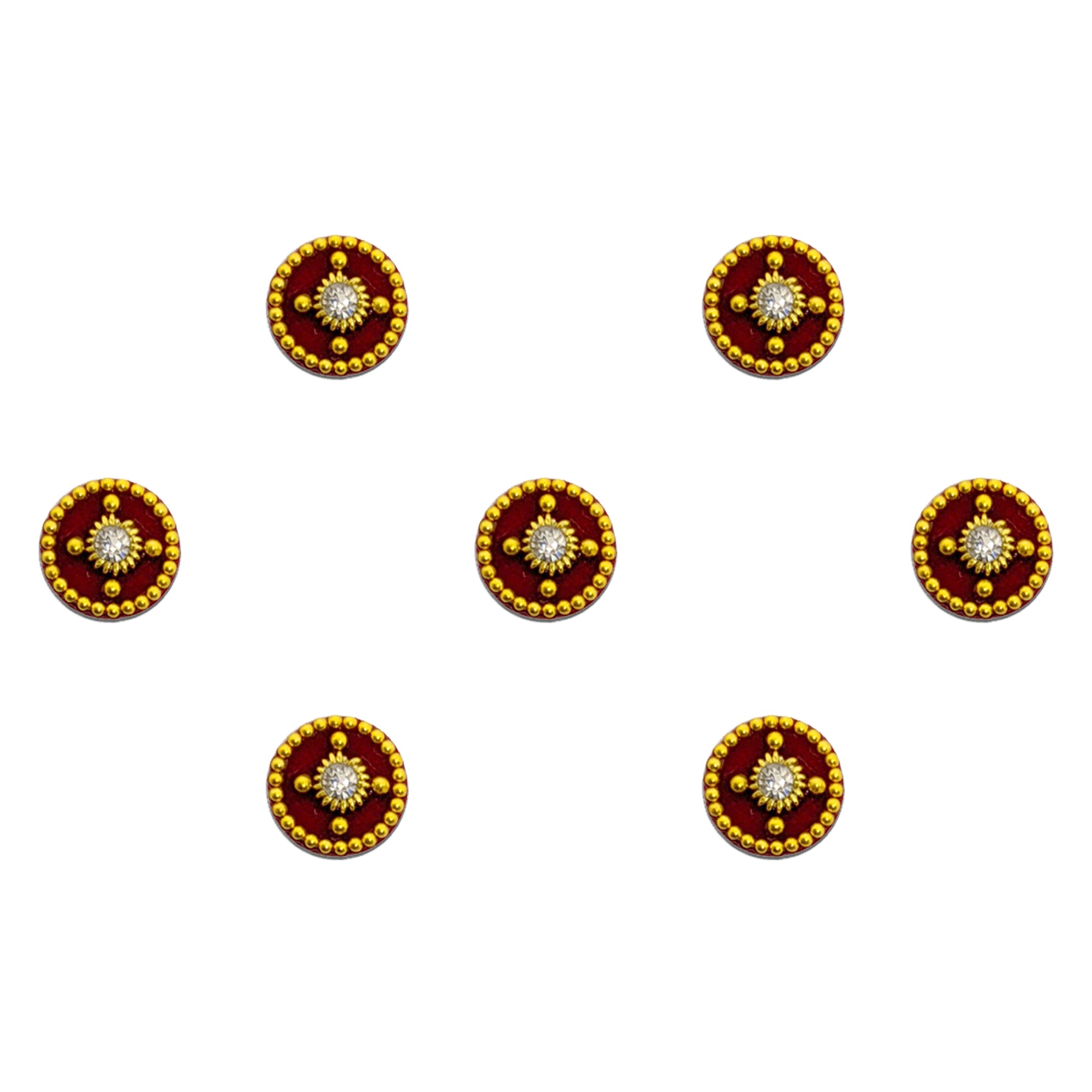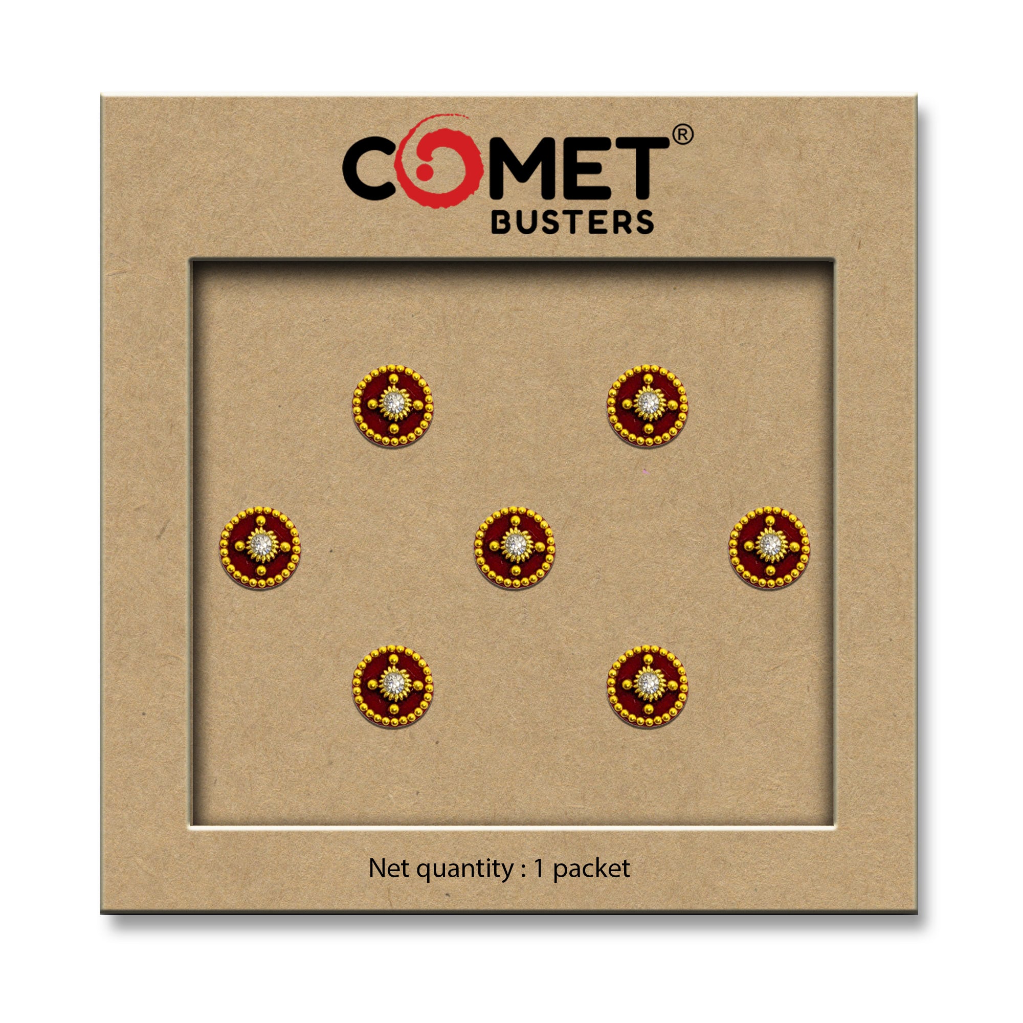 Comet Busters® Maroon, Gold, Multicolor Round – Velvet, Shiny Beads, Diamond – Handcrafted, Reusable & Skin-Friendly Bindis for Party Wear (7mm) – Forehead Bindi Stickers for Women & Girls – BIN1594