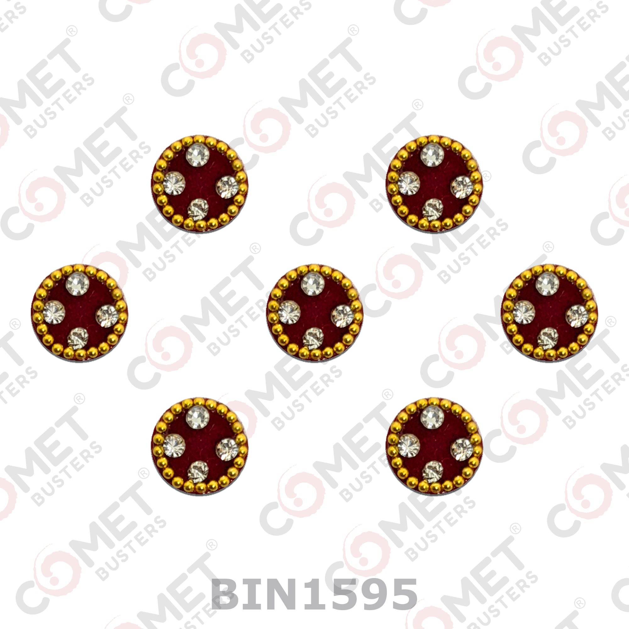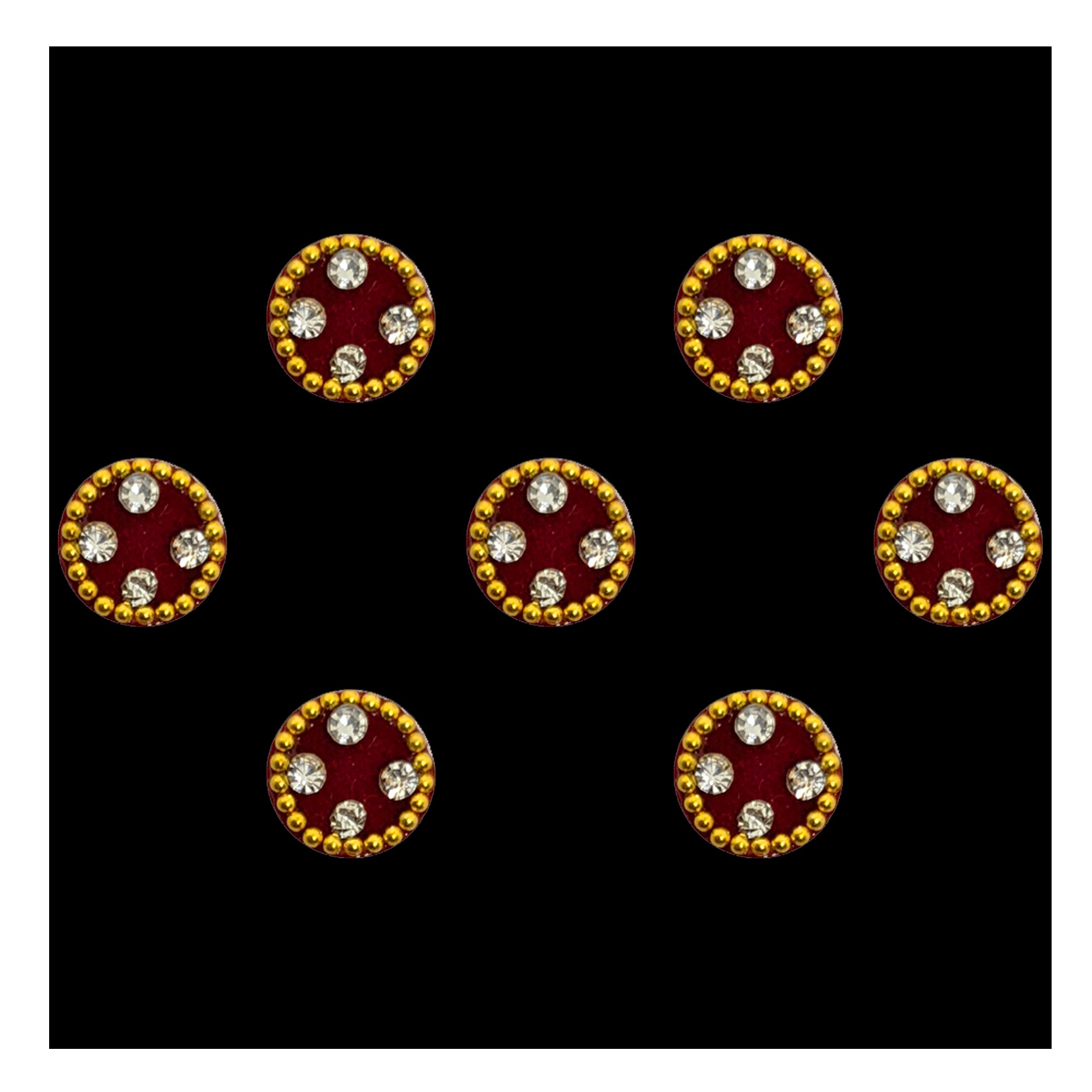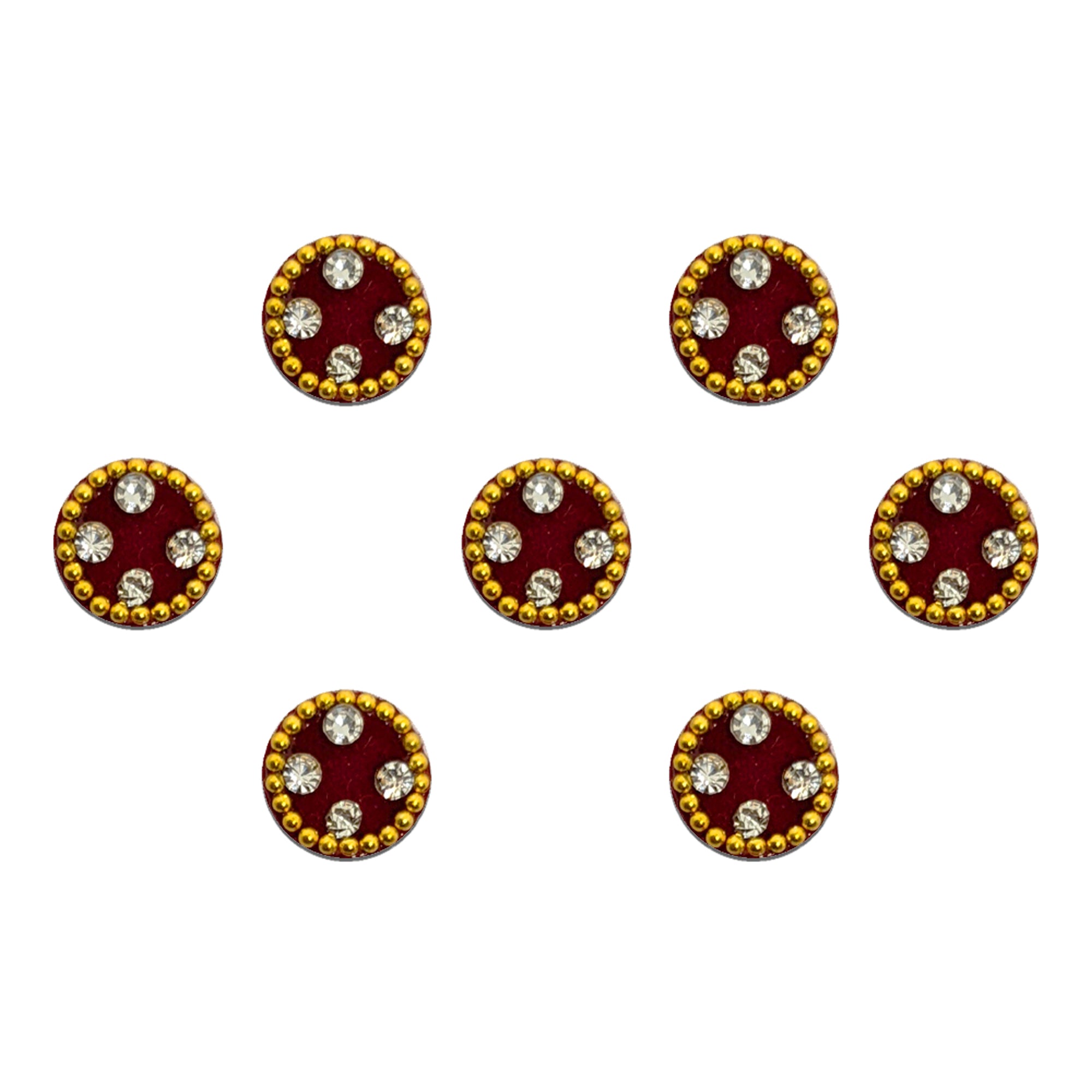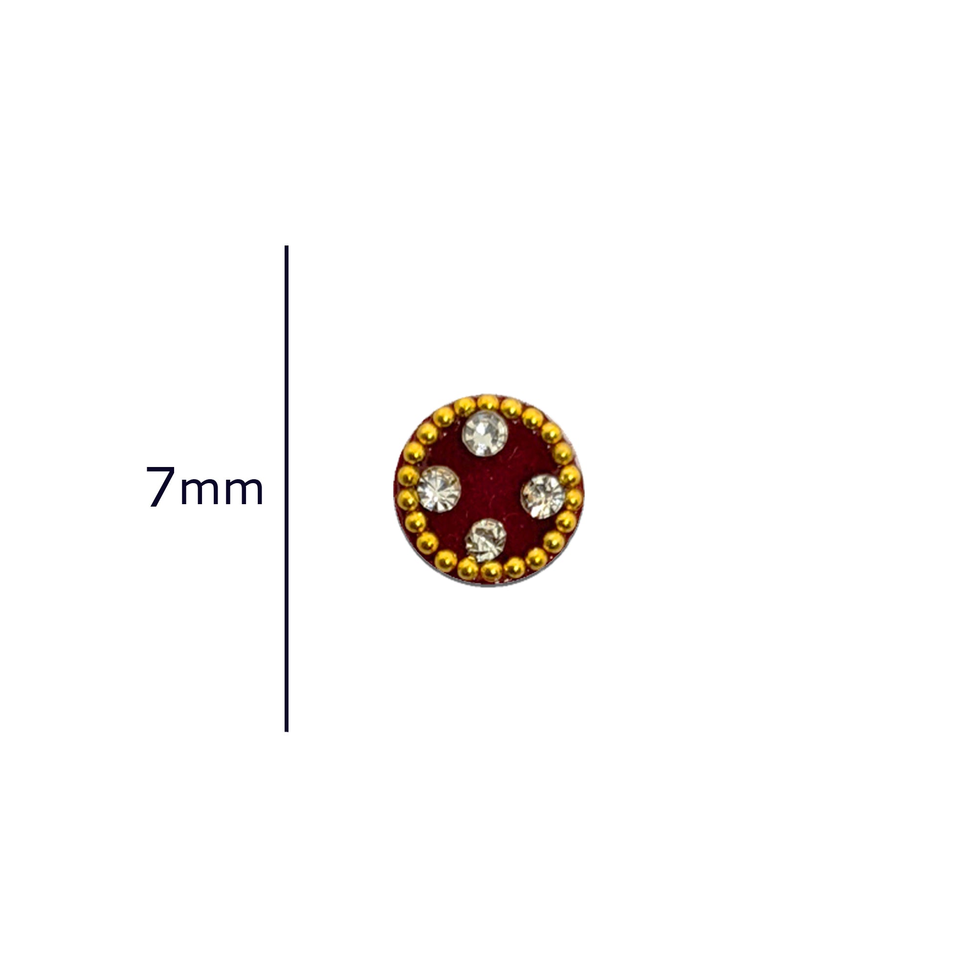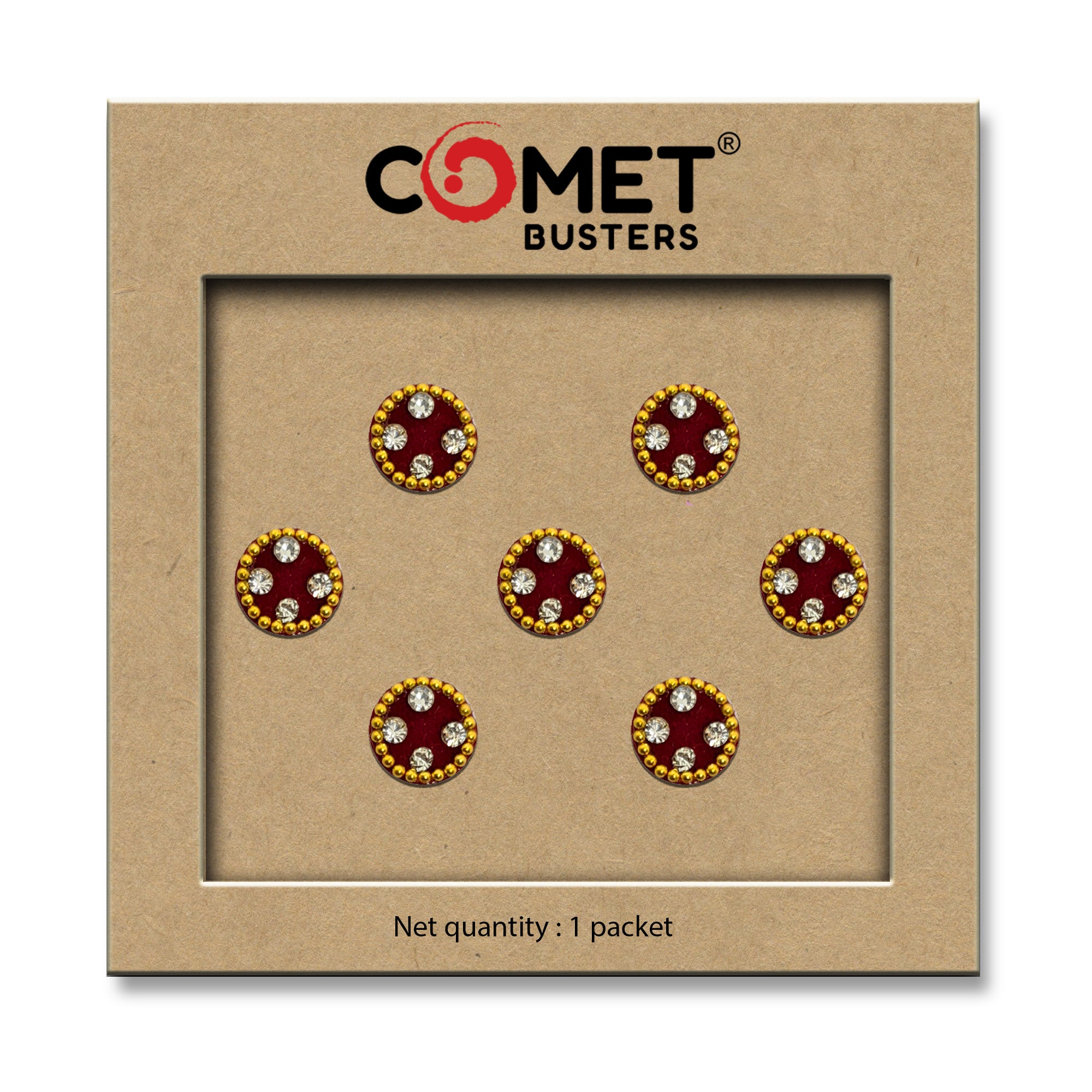 Comet Busters® Maroon Round – Velvet, Shiny Beads, Diamond – Handcrafted, Reusable & Skin-Friendly Bindis for Party Wear (7mm) – Forehead Bindi Stickers for Women & Girls – BIN1595