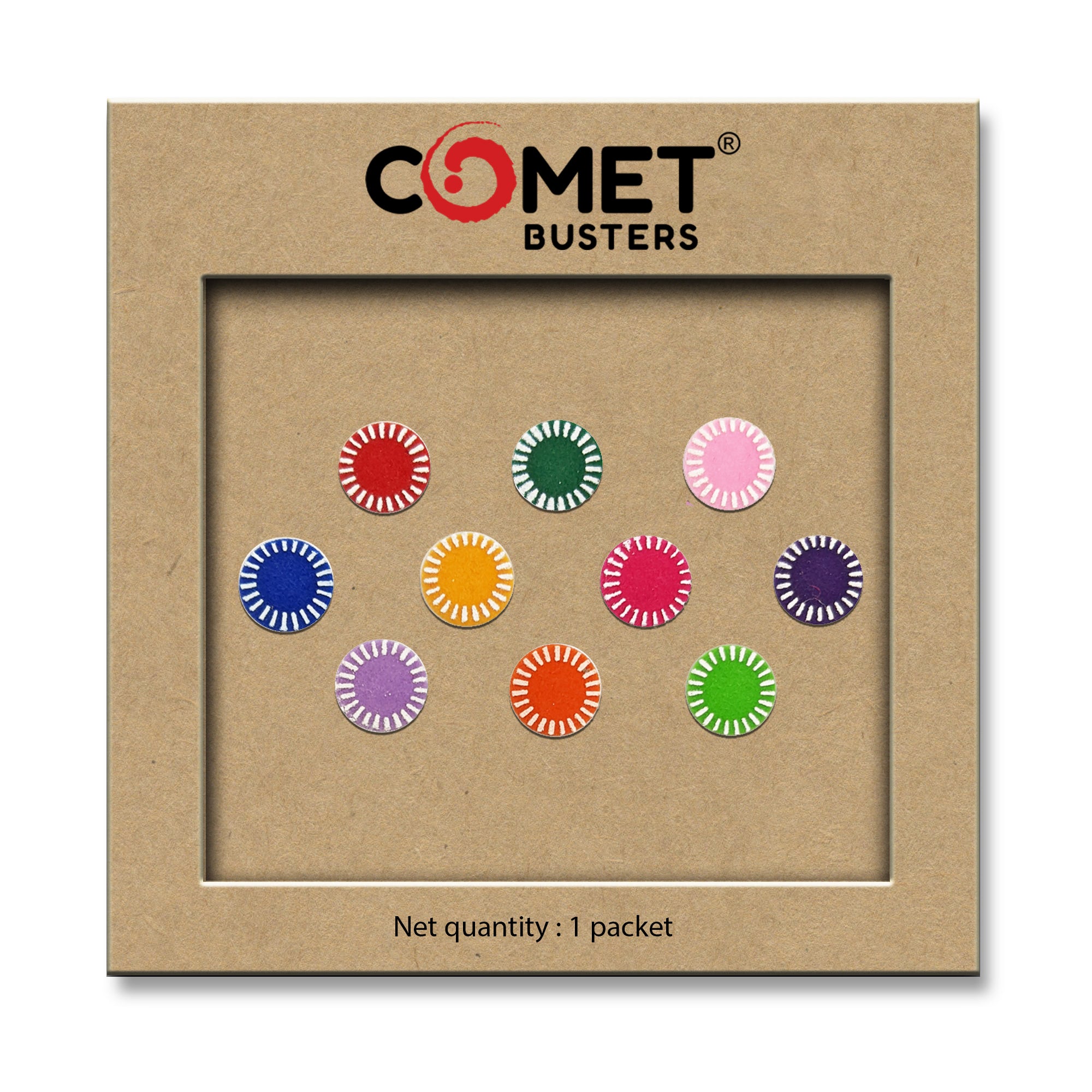Comet Busters® Multicolor Round – Velvet – Handcrafted, Reusable & Skin-Friendly Bindis for Casual Wear (7mm) – Forehead Bindi Stickers for Women & Girls – BIN1581