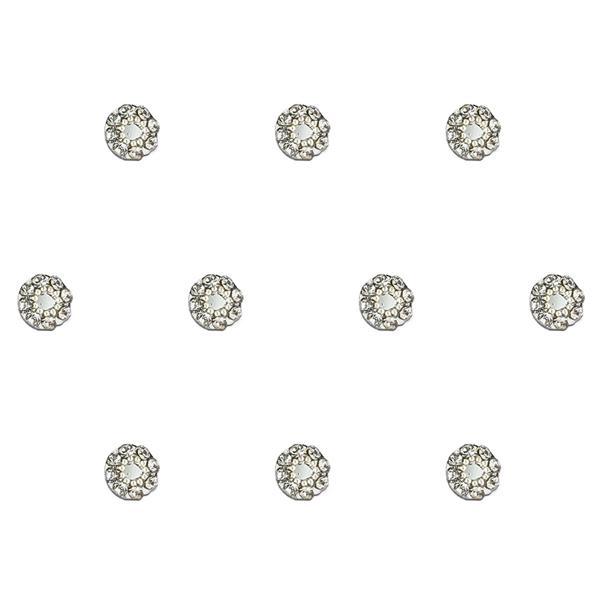 Comet Busters® Silver Round – Diamond, Shiny Beads – Handcrafted, Reusable & Skin-Friendly Bindis for Party Wear (5mm) – Forehead Bindi Stickers for Women & Girls – BIN1676