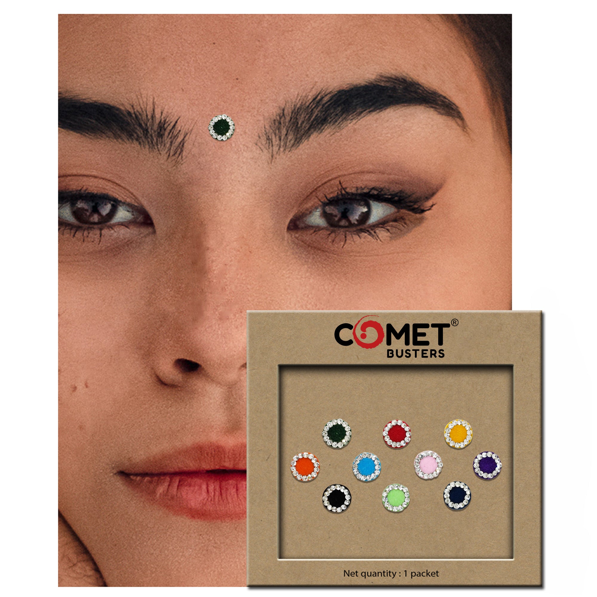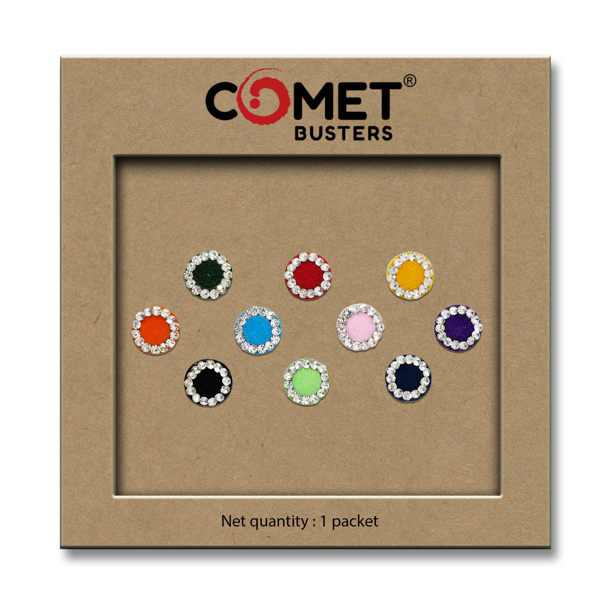 Comet Busters® Multicolor Round – Diamond, Velvet – Handcrafted, Reusable & Skin-Friendly Bindis for Bridal Wear (8mm) – Forehead Bindi Stickers for Women & Girls – BIN221