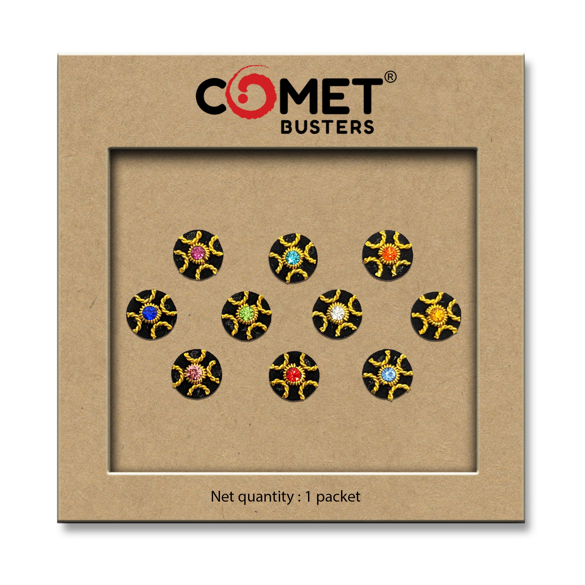 Comet Busters® Multicolor Round – Velvet, Diamond, Shiny Beads – Handcrafted, Reusable & Skin-Friendly Bindis for Casual Wear (8mm) – Forehead Bindi Stickers for Women & Girls – BIN1530