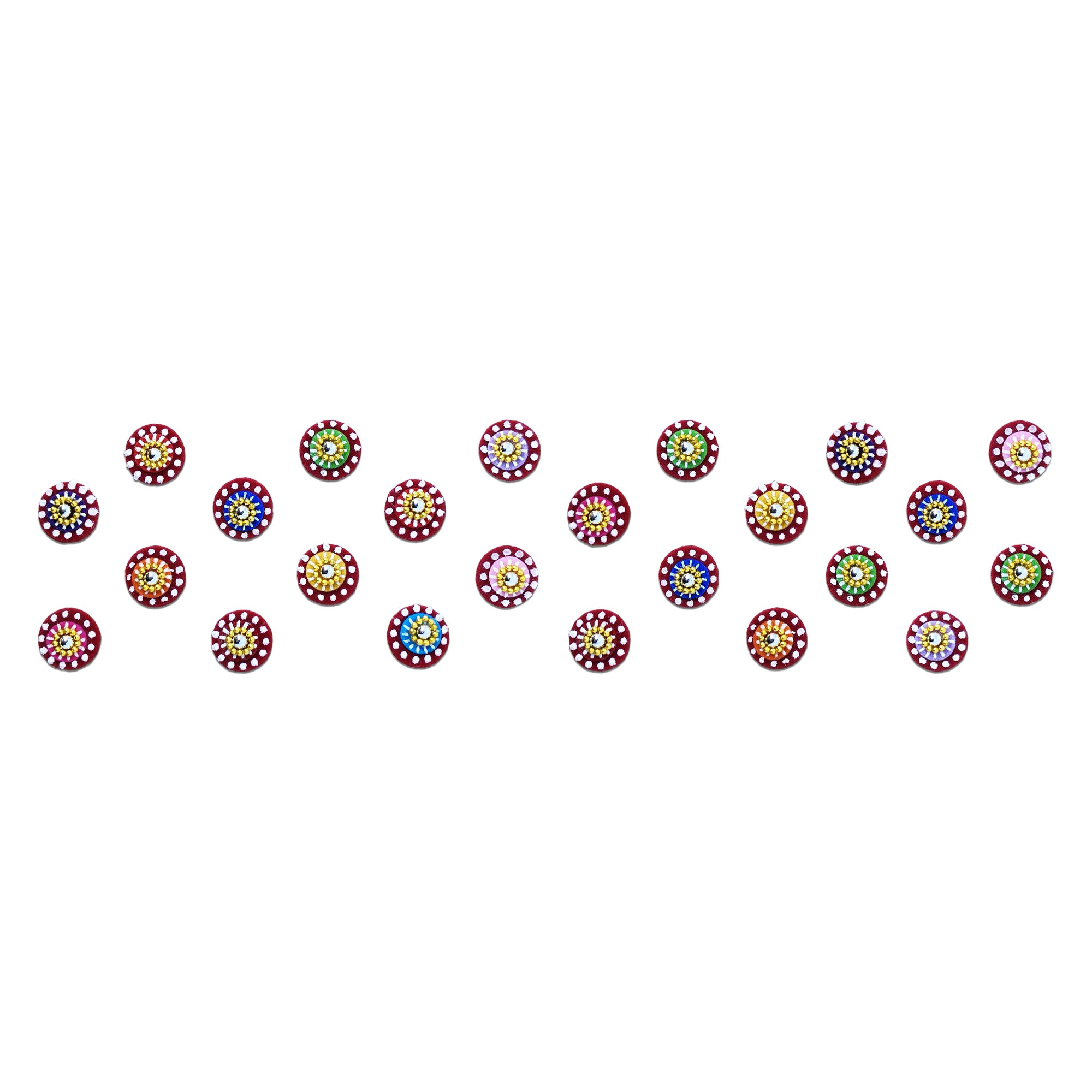 Comet Busters® Multicolor Round – Velvet, Shiny Beads – Handcrafted, Reusable & Skin-Friendly Bindis for Partywear Wear (8mm) – Forehead Bindi Stickers for Women & Girls – BIN557
