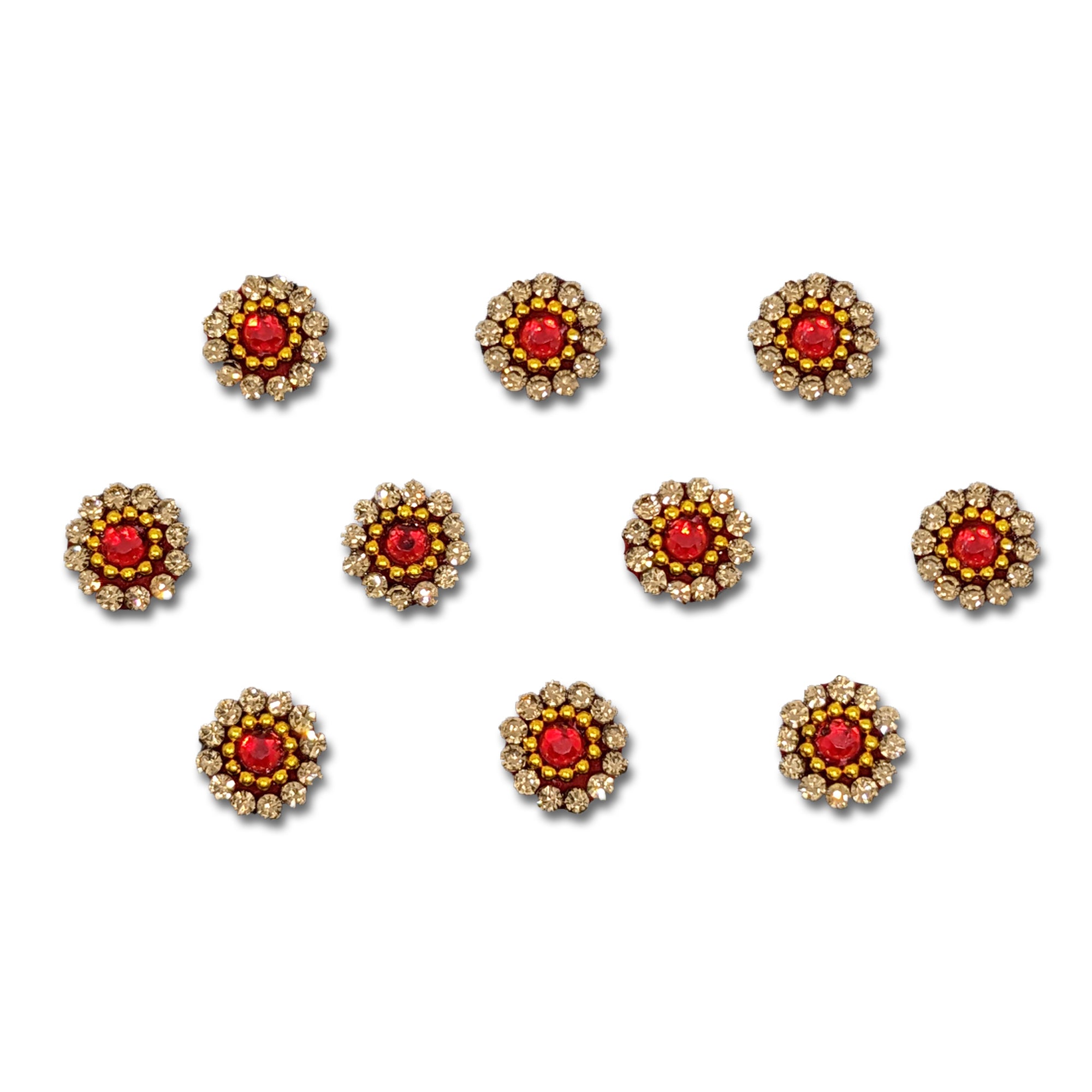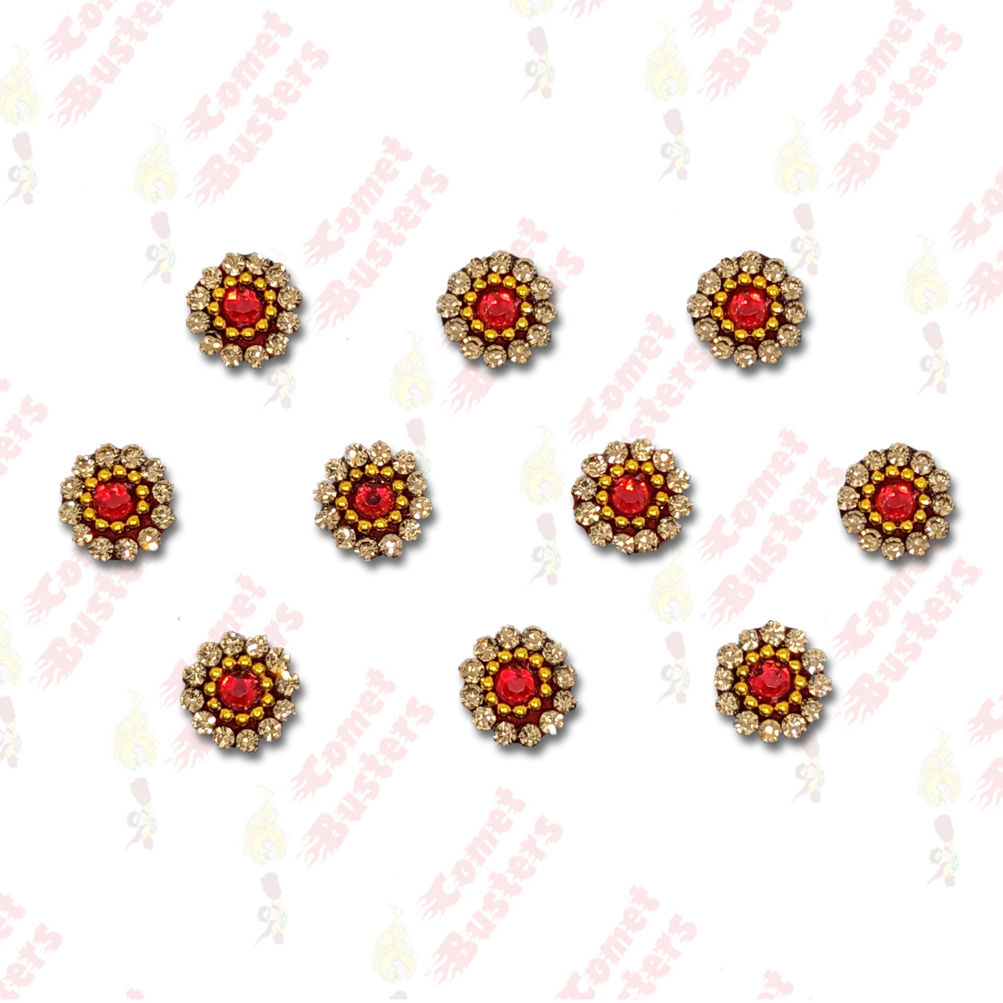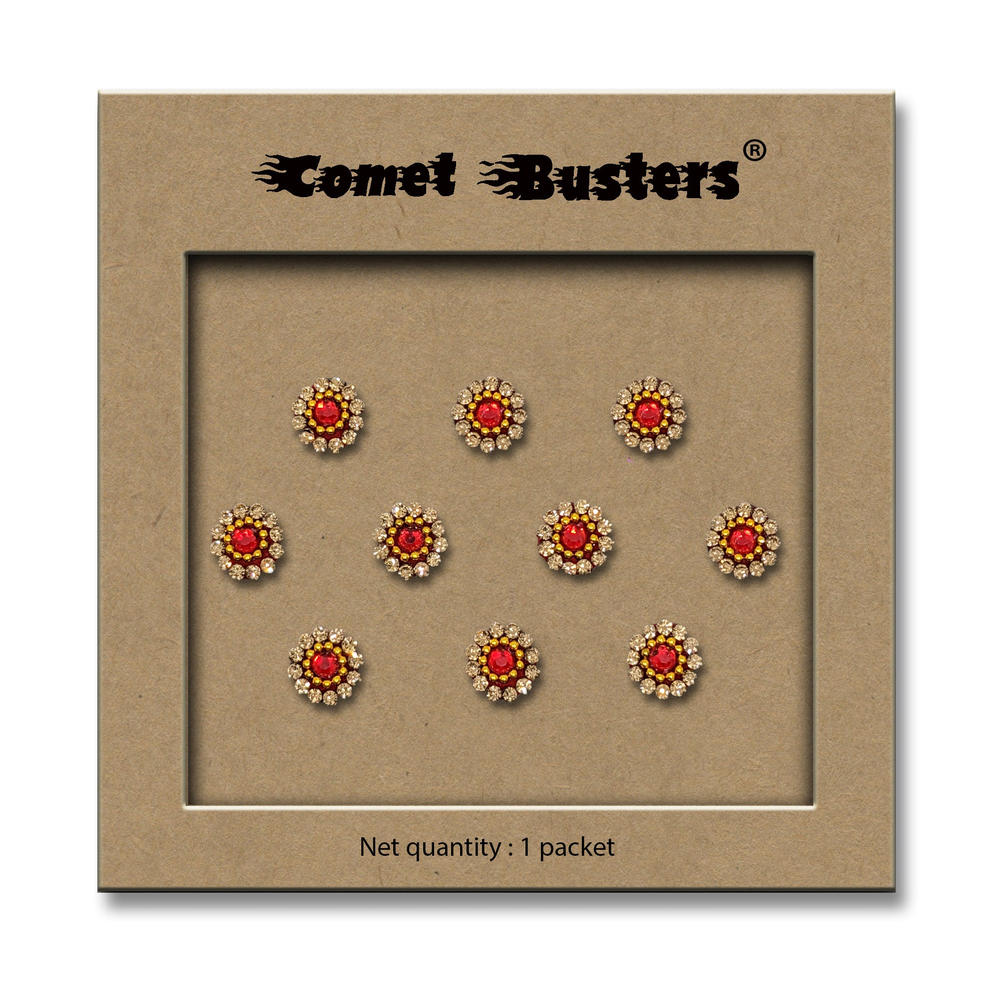 Comet Busters® Red, Gold, Multicolor Round – Diamond – Handcrafted, Reusable & Skin-Friendly Bindis for Party Wear (8mm) – Forehead Bindi Stickers for Women & Girls – BIN2018