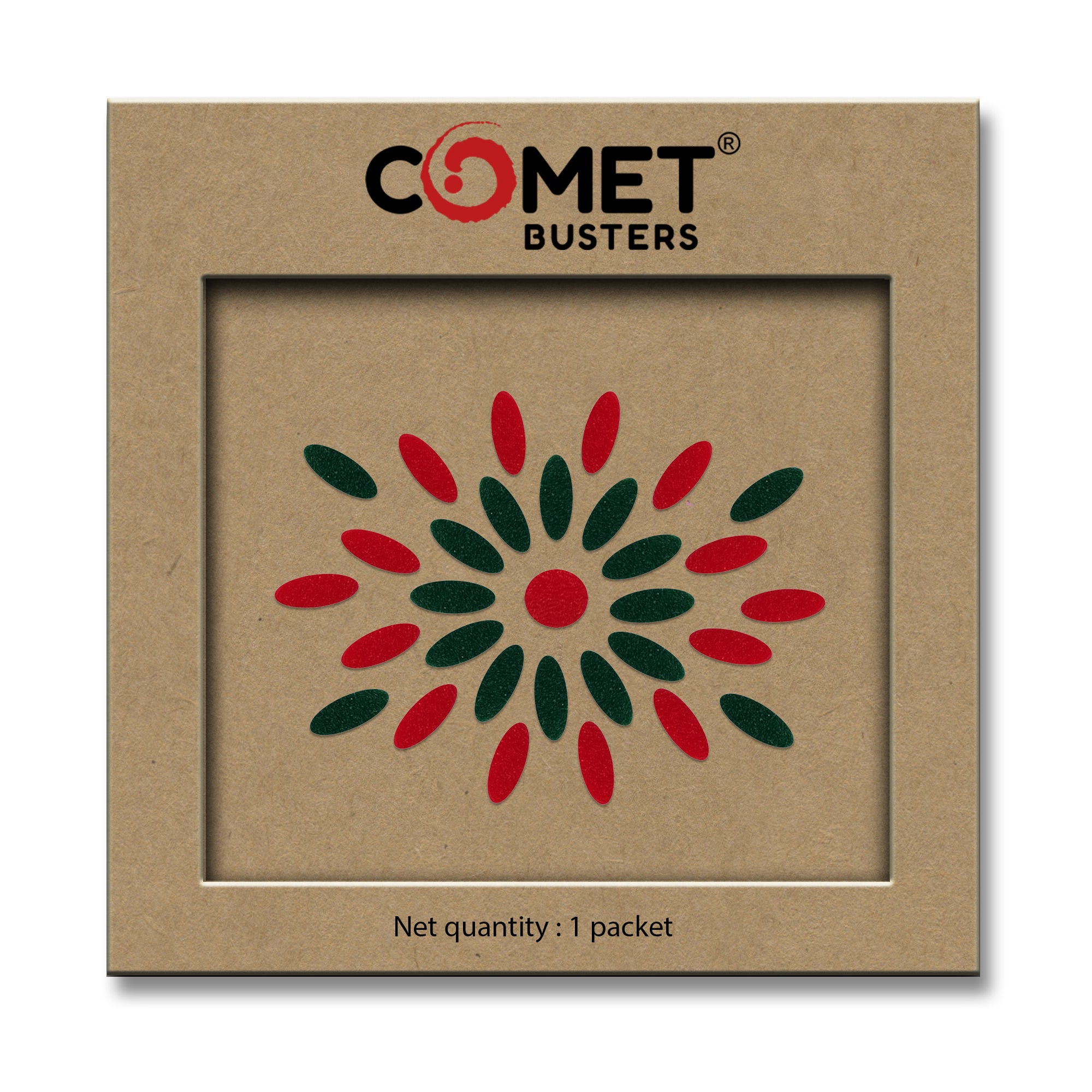 Comet Busters® Red, Green, Multicolor Oval, Round – Velvet – Handcrafted, Reusable & Skin-Friendly Bindis for Casual Wear (7mm) – Forehead Bindi Stickers for Women & Girls – BIN1859